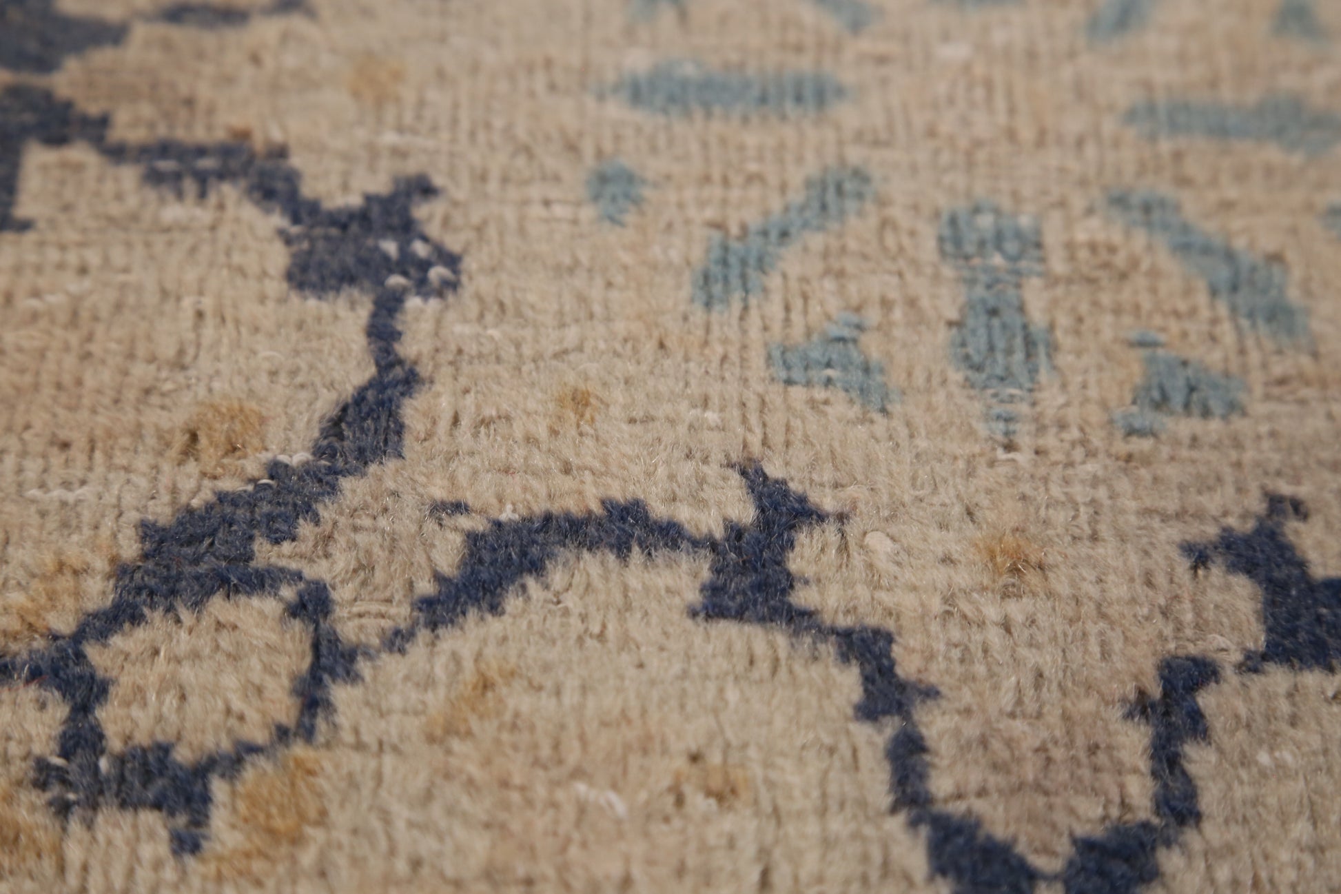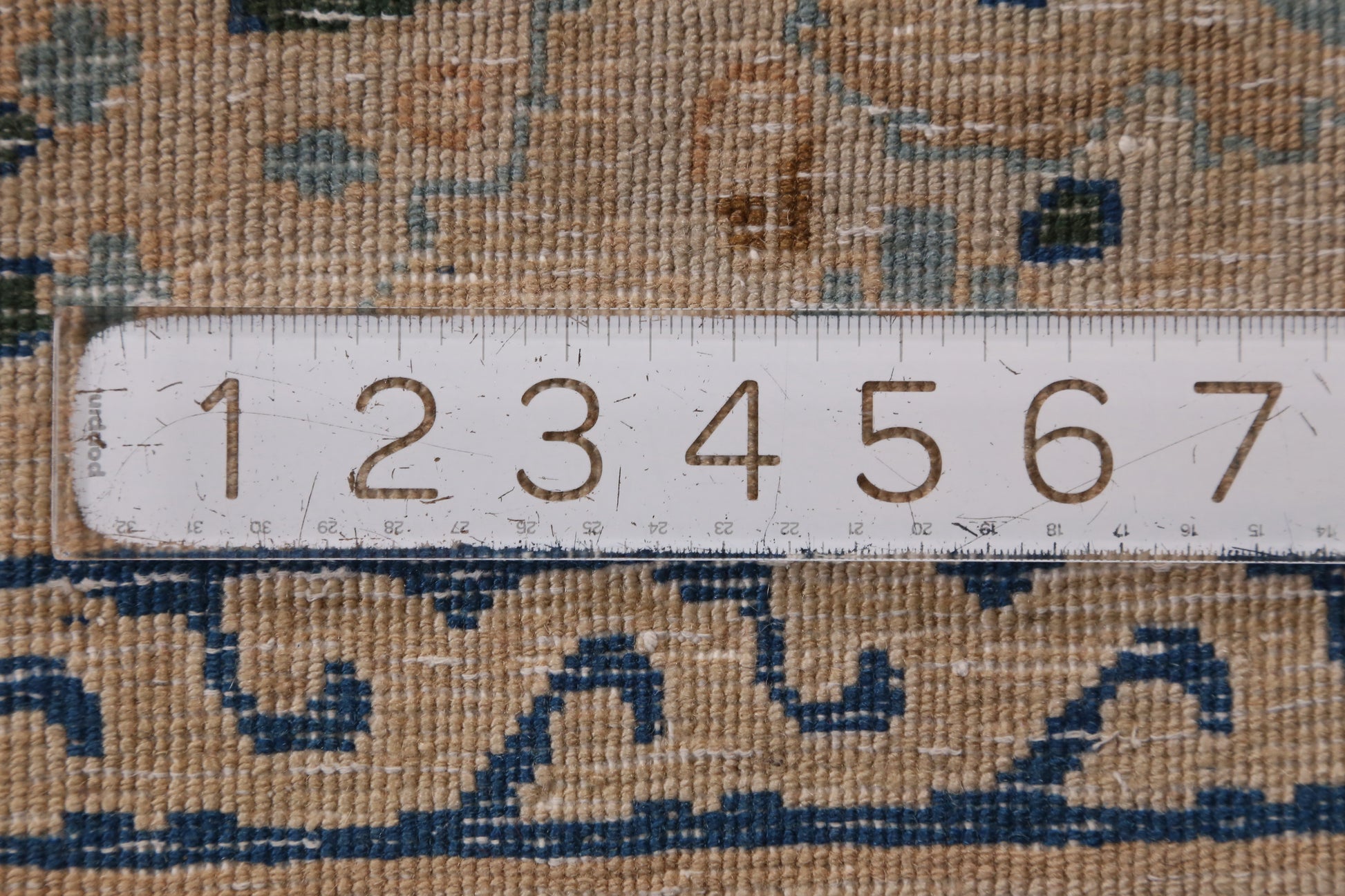 A Beautiful Genuine Persia ( Persia ) Kerman rug is Hand Knotted by skillful weavers in Persia ( Persia ) with 100% Wool Material. This rug is in Very Good (Evenly Low Pile) condition. dimensions are 12' 1'' X 3' 6'' in foot and 368 X 107 in centimeter. the primary color is Beige & Ivories.