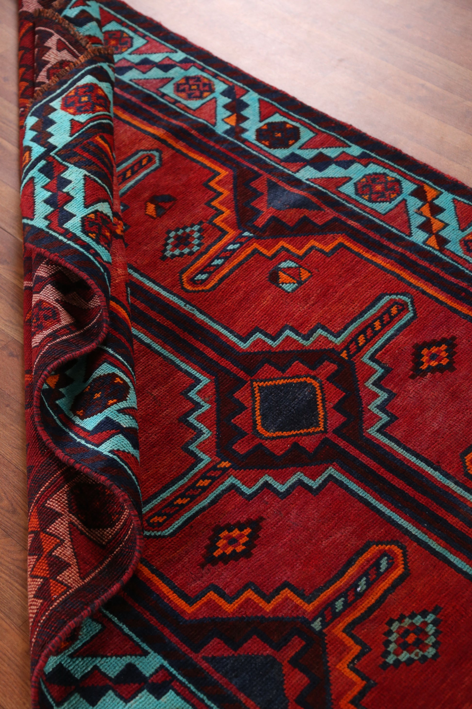 A Beautiful Genuine Persia ( Persia ) Lori rug is Hand Knotted by skillful weavers in Persia ( Persia ) with 100% Wool Material. This rug is in Very Good (Abrash) condition. dimensions are 8' 3'' X 3' 11'' in foot and 251 X 119 in centimeter. the primary color is Red.