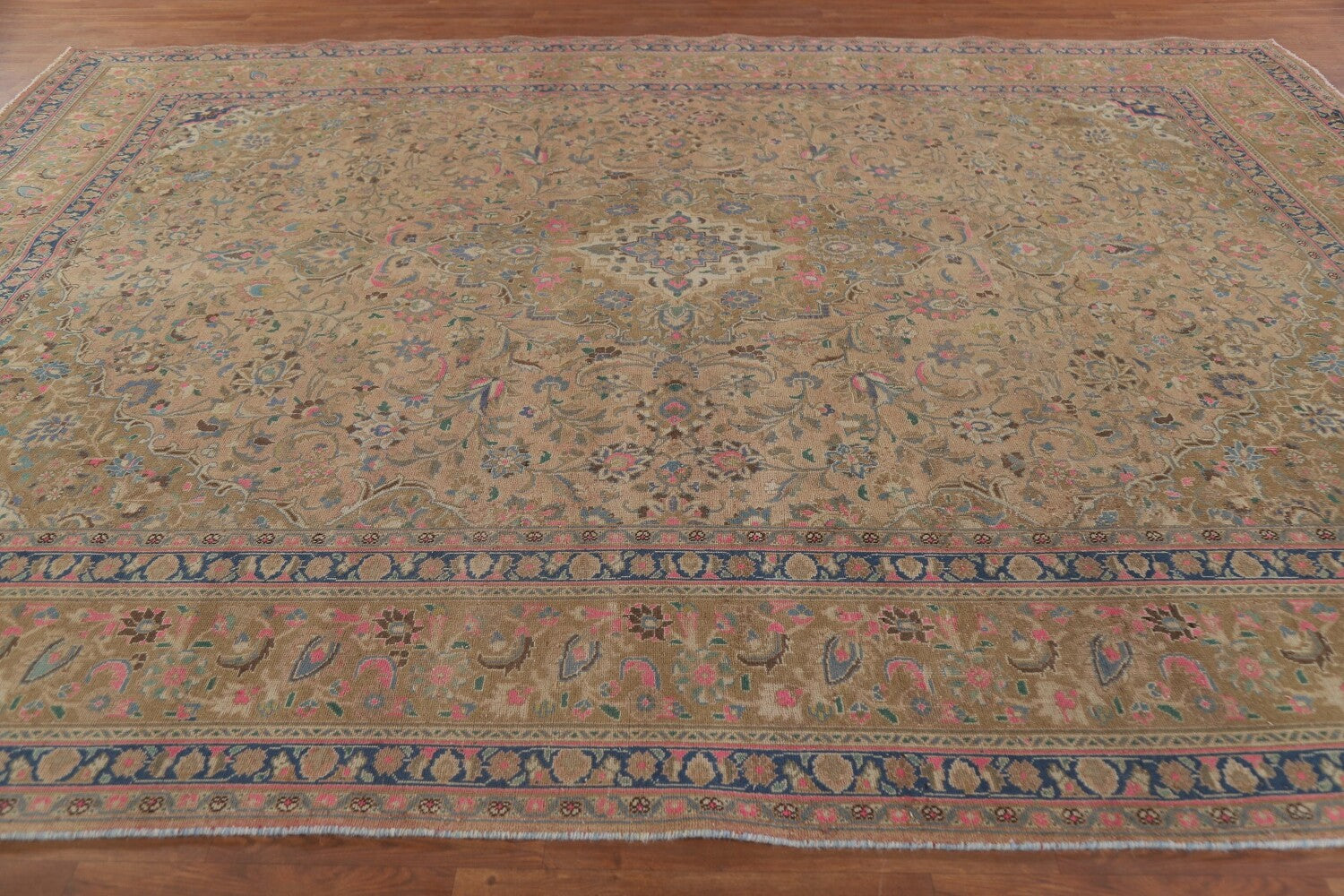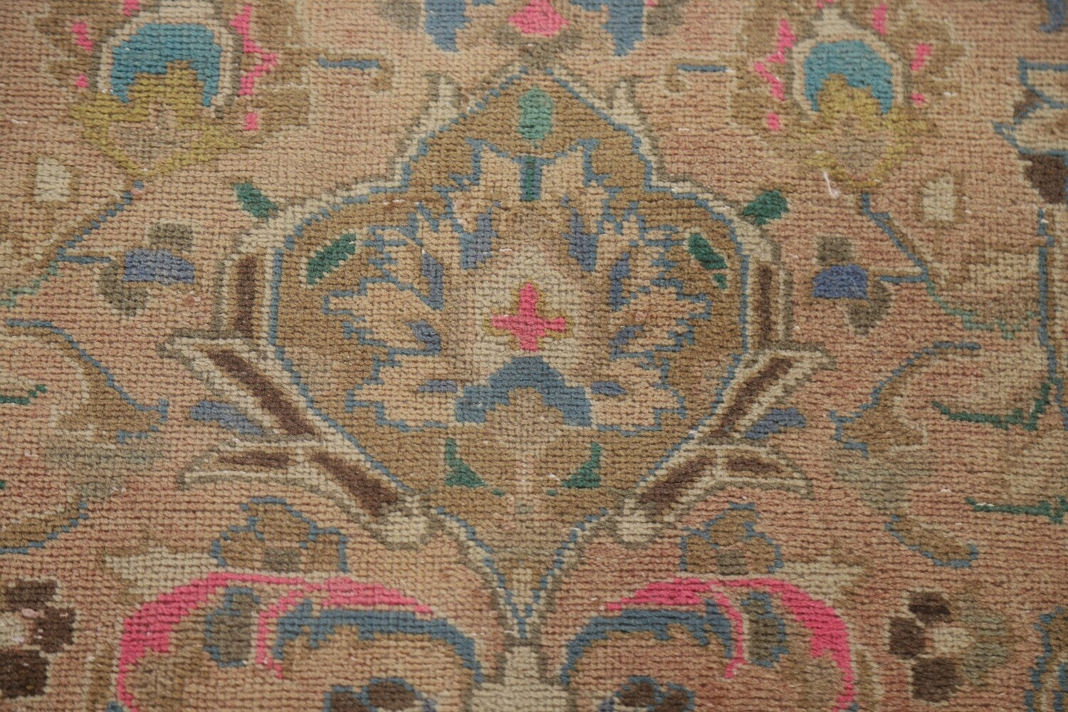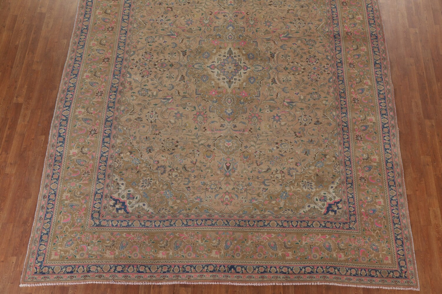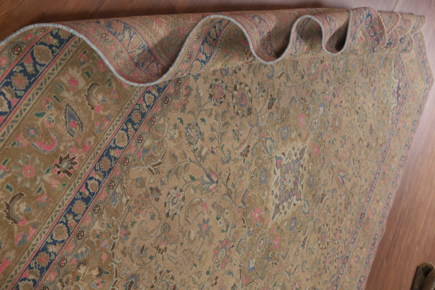 A Beautiful Genuine Persia ( Persia ) Mashad rug is Hand Knotted by skillful weavers in Persia ( Persia ) with 100% Wool Material. This rug is in Very Good (Low Pile) condition. dimensions are 12' 6'' X 9' 8'' in foot and 381 X 295 in centimeter. the primary color is Beige & Ivories.