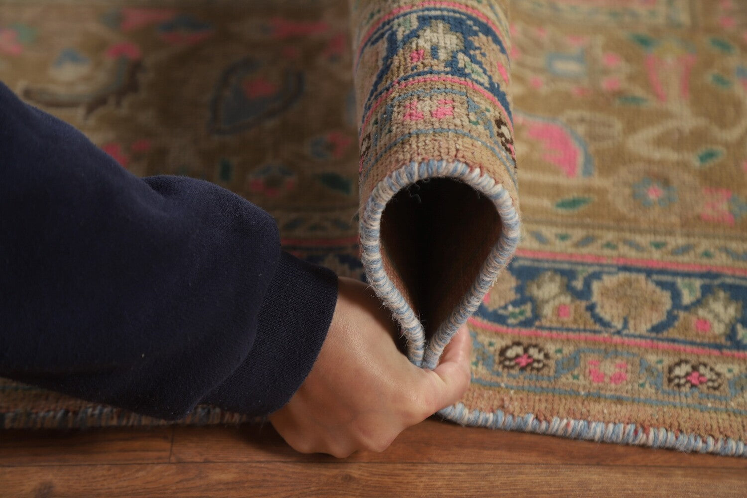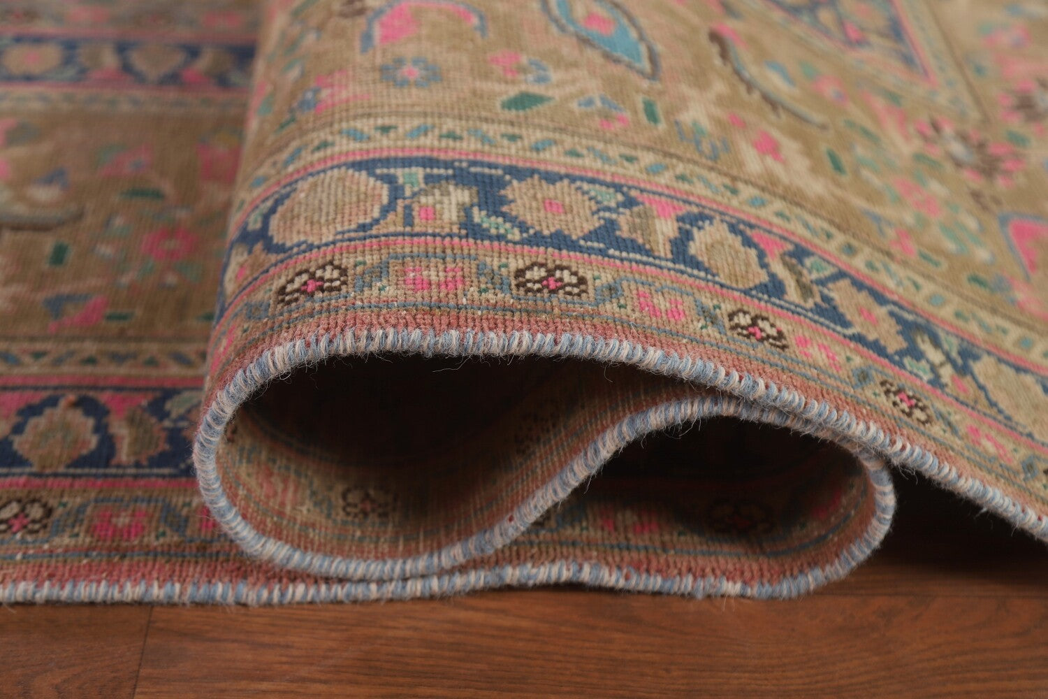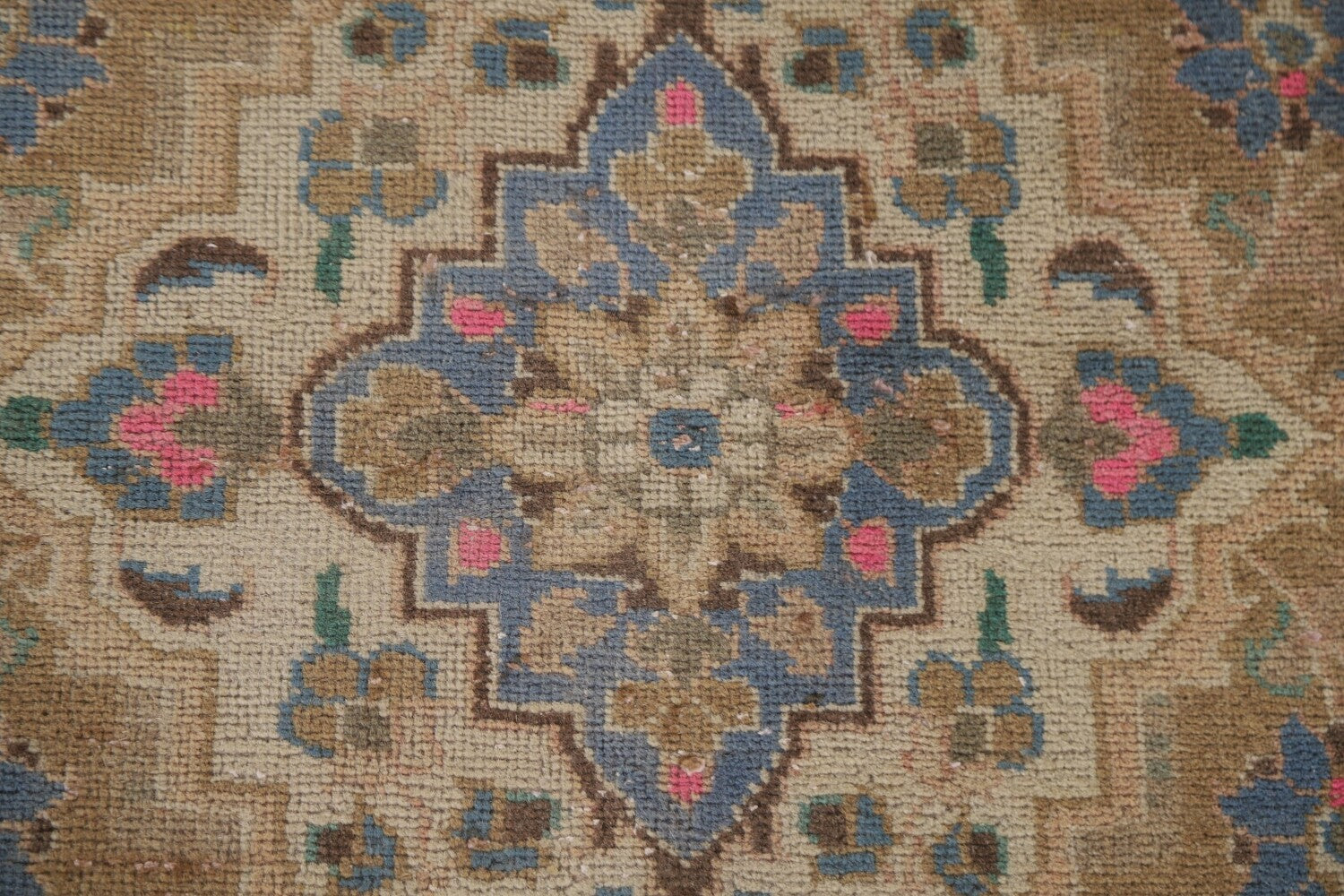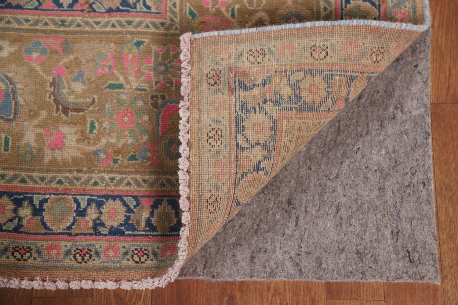 A Beautiful Genuine Persia ( Persia ) Mashad rug is Hand Knotted by skillful weavers in Persia ( Persia ) with 100% Wool Material. This rug is in Very Good (Low Pile) condition. dimensions are 12' 6'' X 9' 8'' in foot and 381 X 295 in centimeter. the primary color is Beige & Ivories.
