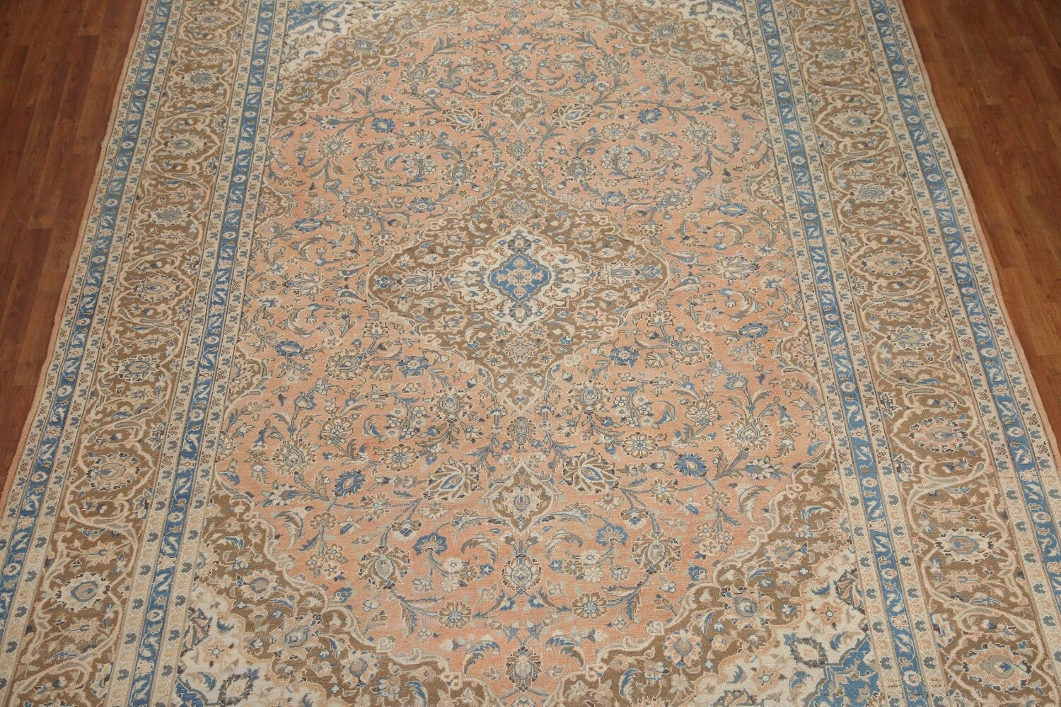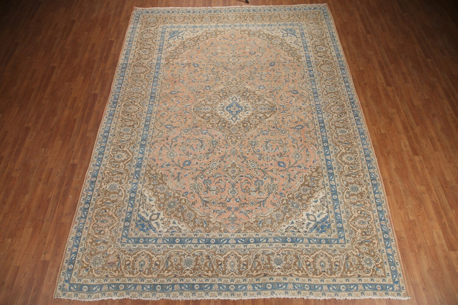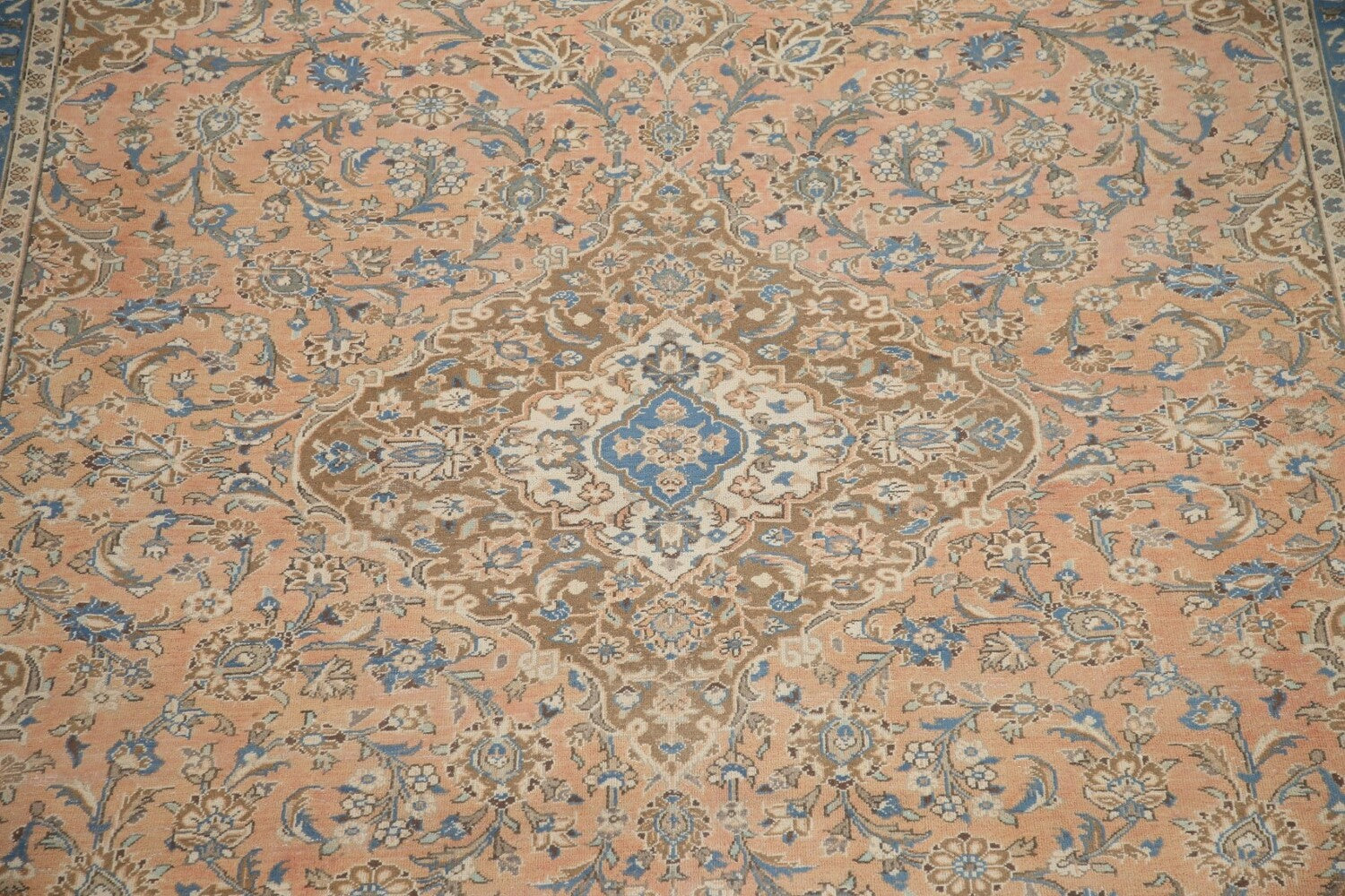 A Beautiful Genuine Persia ( Persia ) Mashad rug is Hand Knotted by skillful weavers in Persia ( Persia ) with 100% Wool Material. This rug is in Very Good (Evenly Low Pile-small Repair) condition. dimensions are 13' 2'' X 9' 9'' in foot and 401 X 297 in centimeter. the primary color is Pink.