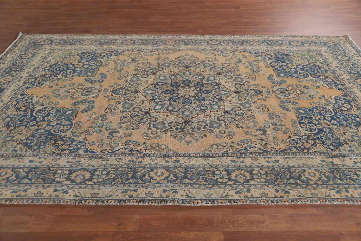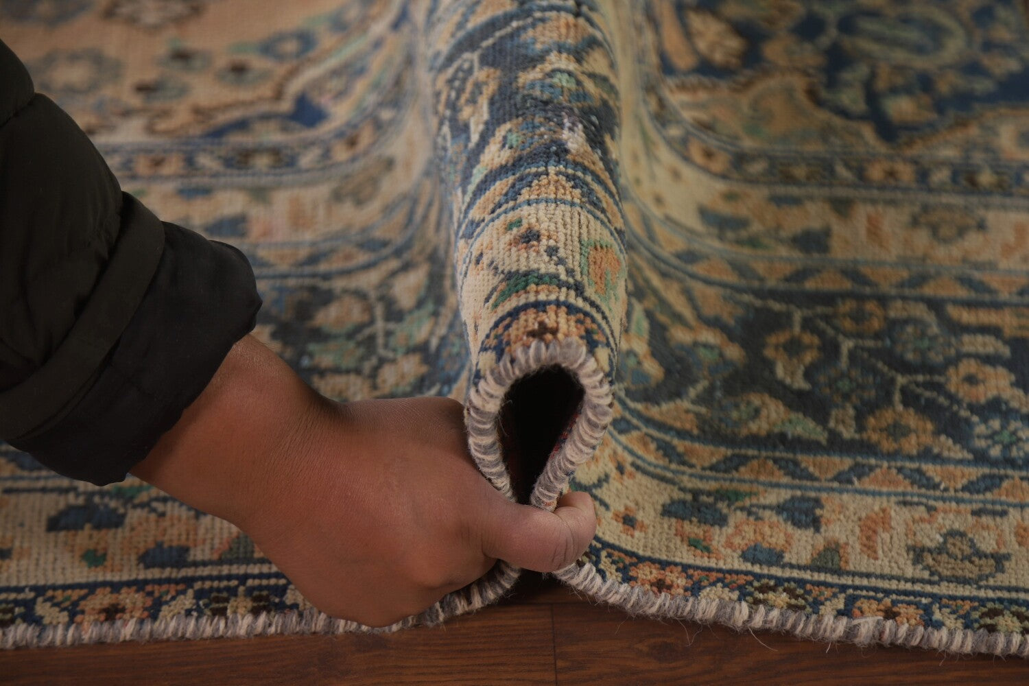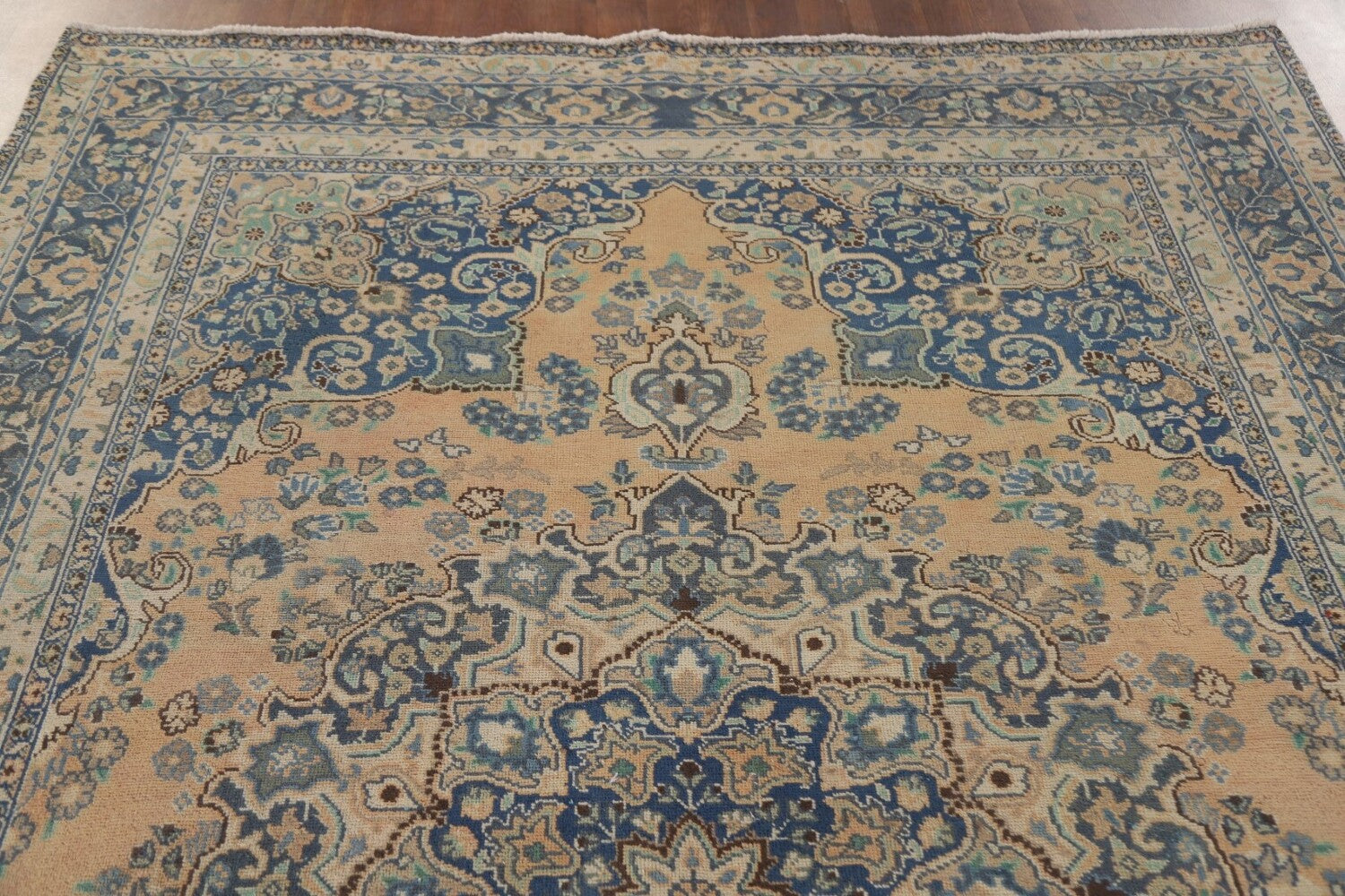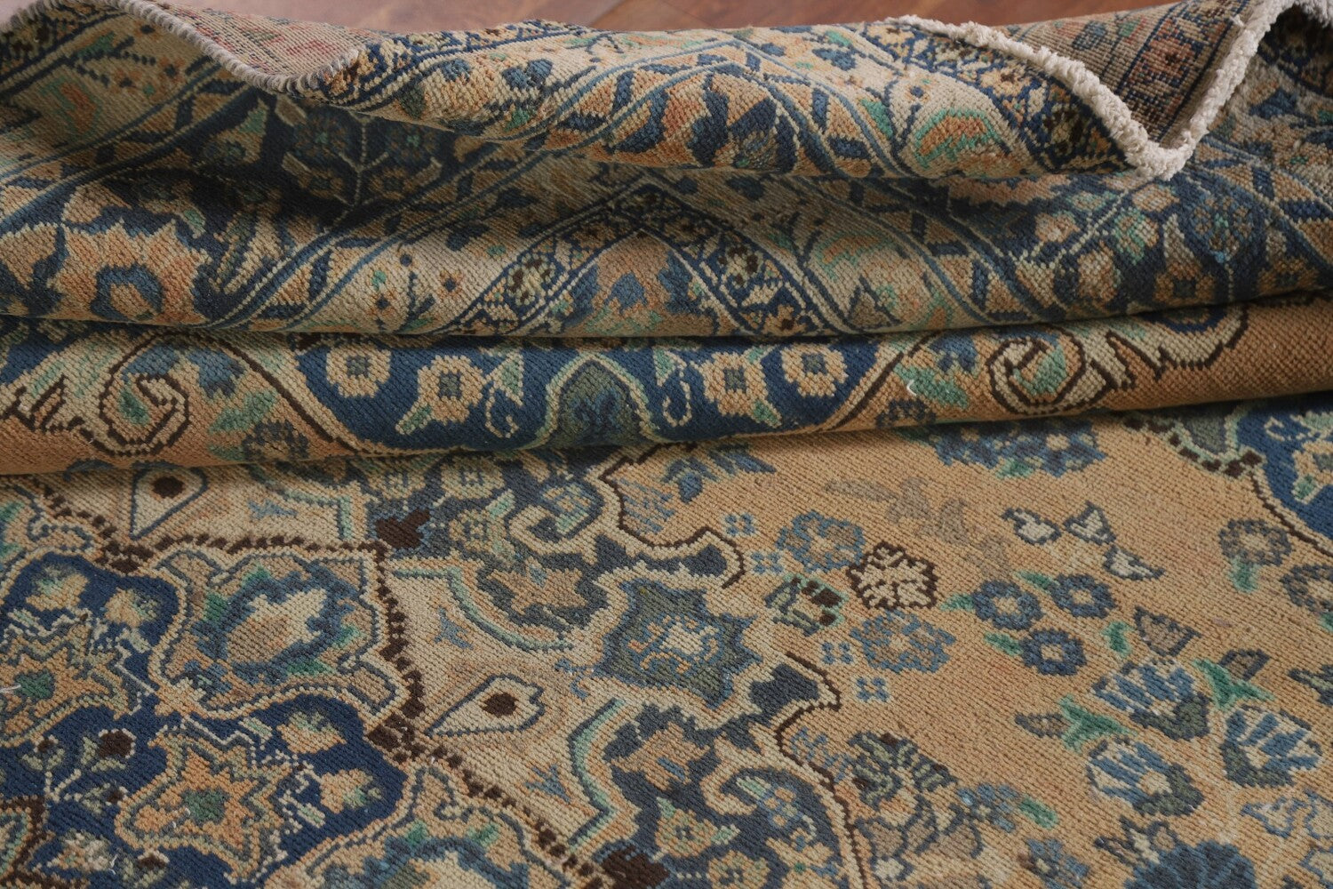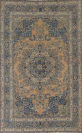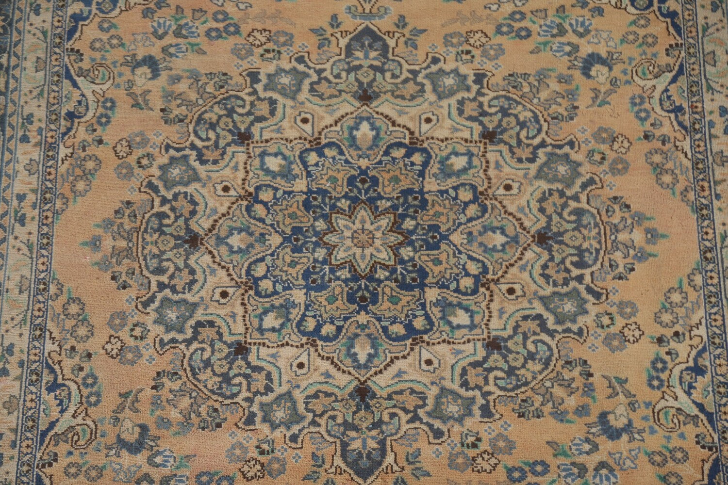 A Beautiful Genuine Persia ( Persia ) Mashad rug is Hand Knotted by skillful weavers in Persia ( Persia ) with 100% Wool Material. This rug is in Very Good (Evenly Low Pile) condition. dimensions are 9' 7'' X 6' 4'' in foot and 292 X 193 in centimeter. the primary color is Peach.