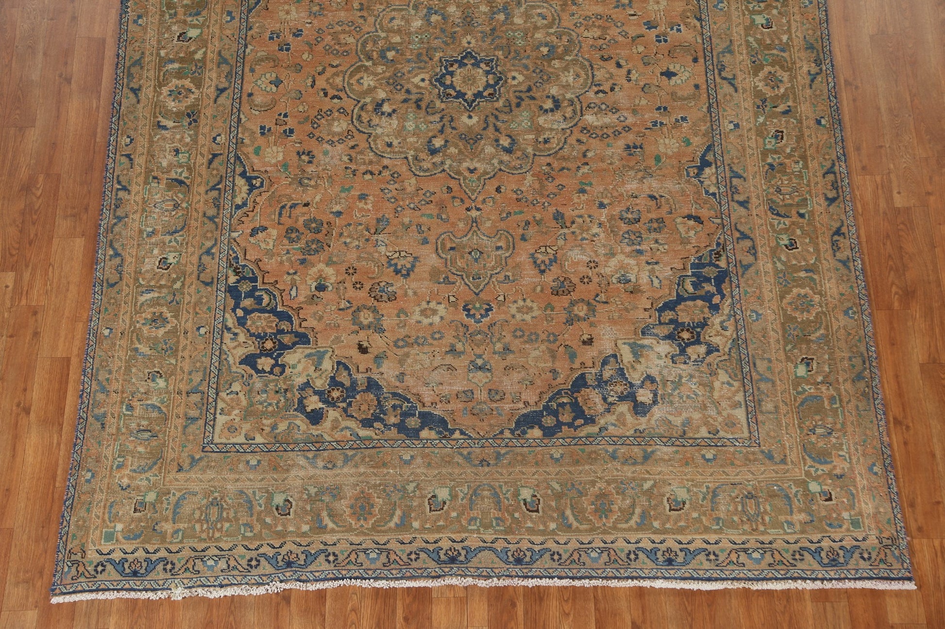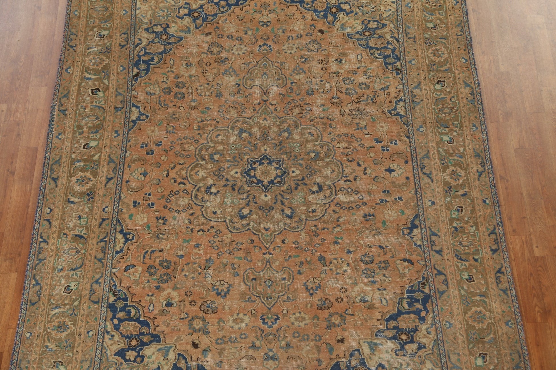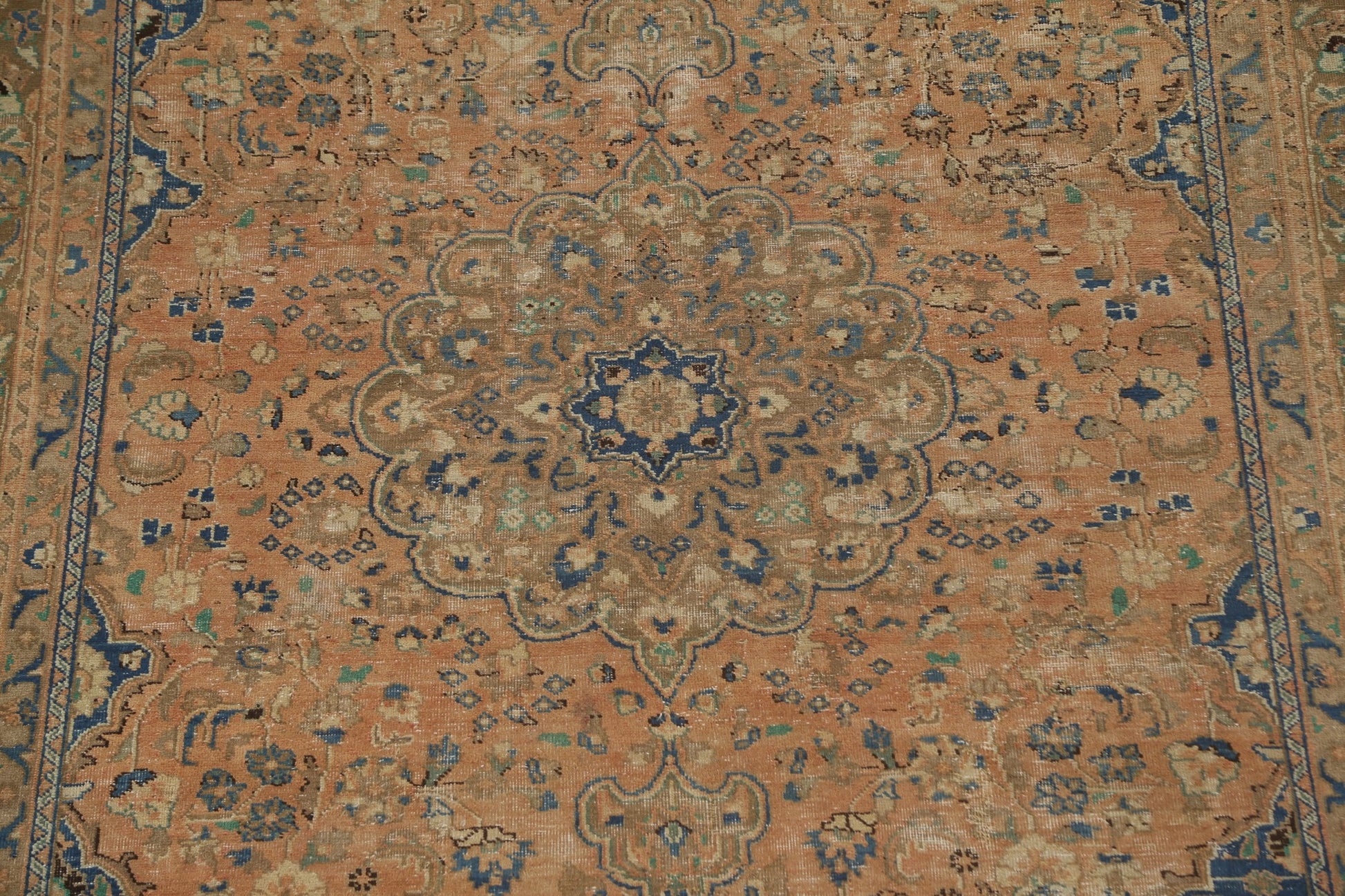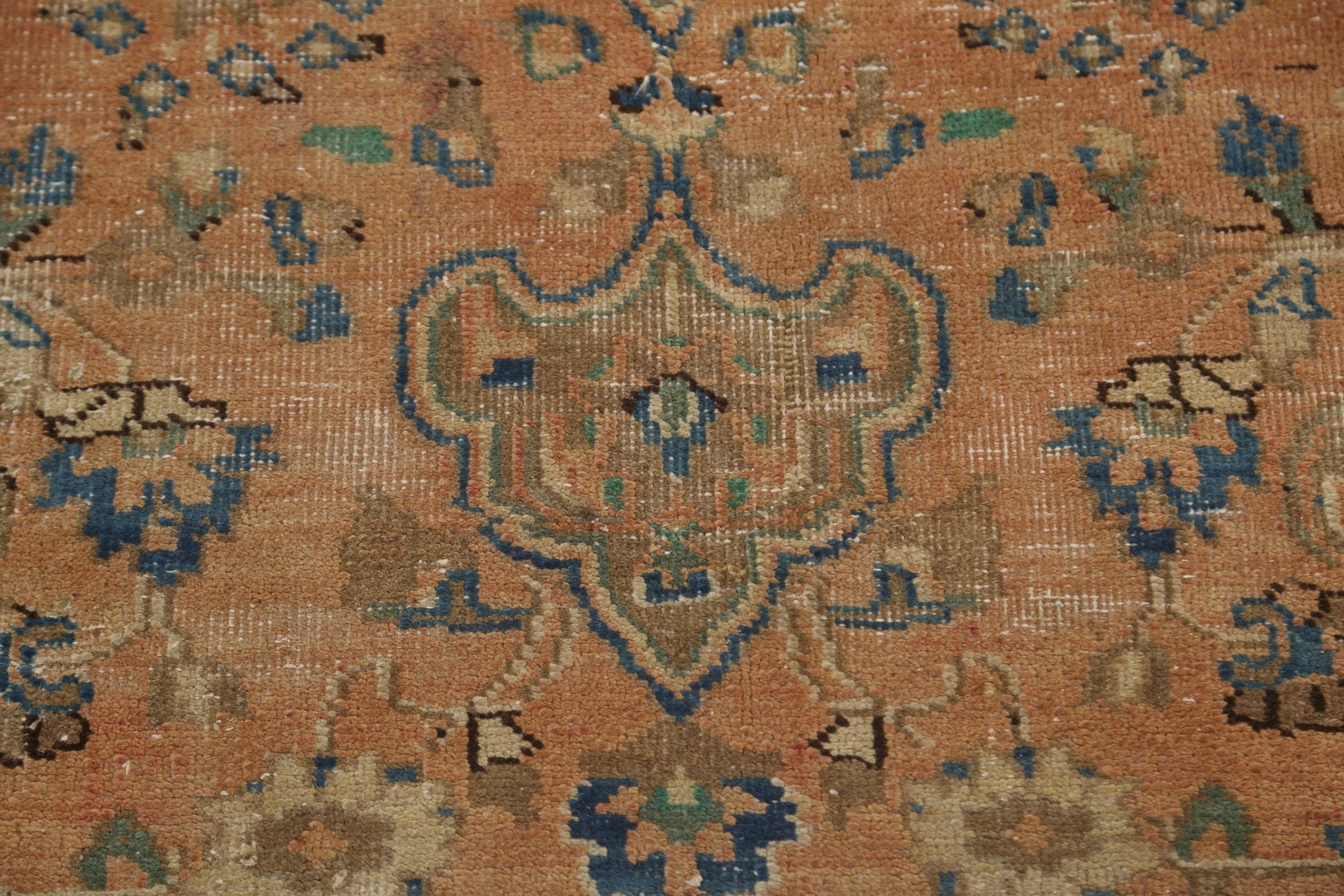 A Beautiful Genuine Persia ( Persia ) Mashad rug is Hand Knotted by skillful weavers in Persia ( Persia ) with 100% Wool Material. This rug is in Very Good (Evenly Low Pile) condition. dimensions are 9' 6'' X 6' 7'' in foot and 290 X 201 in centimeter. the primary color is Oranges & Rust.