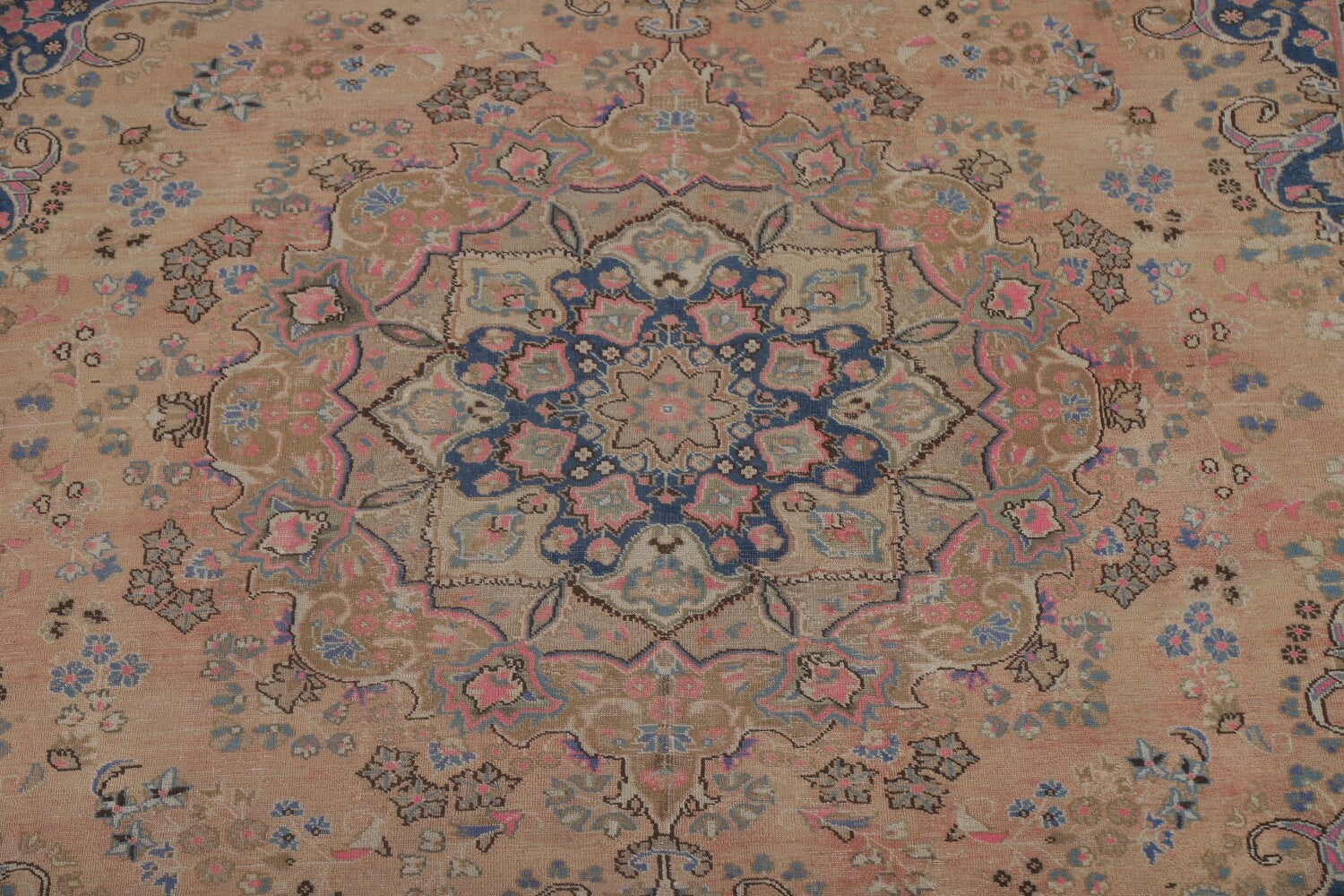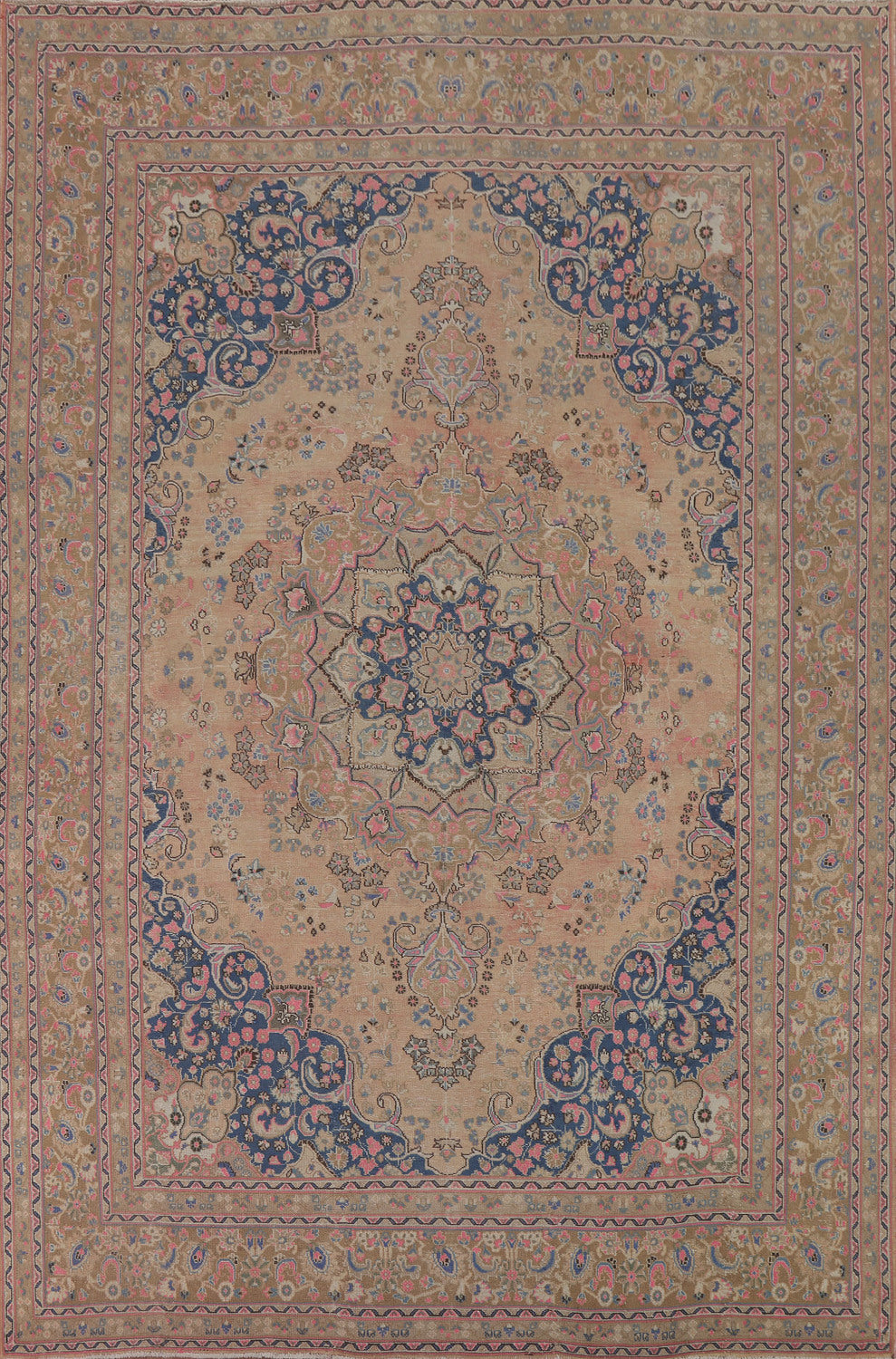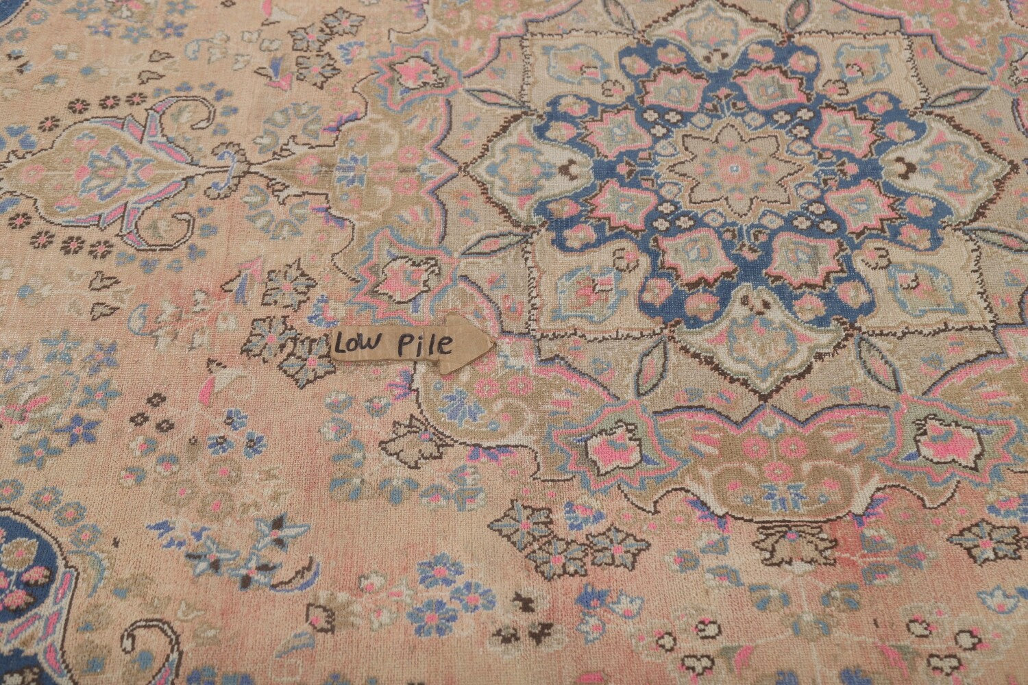 A Beautiful Genuine Persia ( Persia ) Mashad rug is Hand Knotted by skillful weavers in Persia ( Persia ) with 100% Wool Material. This rug is in Very Good (Low Pile) condition. dimensions are 12' 4'' X 9' 5'' in foot and 376 X 287 in centimeter. the primary color is Peach.