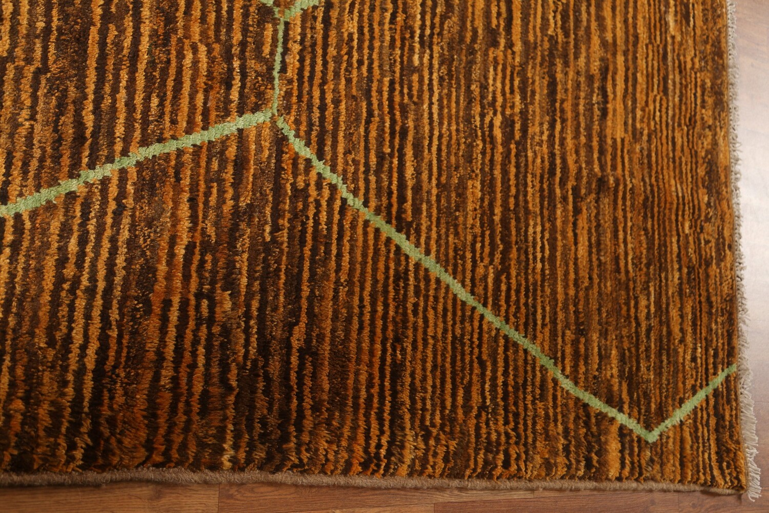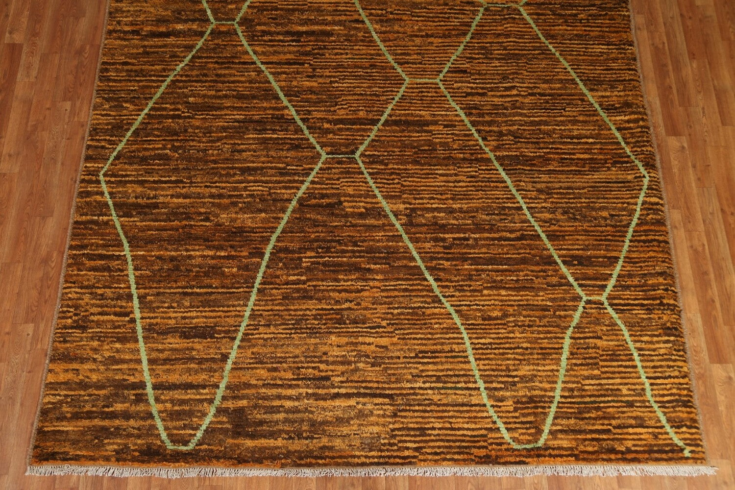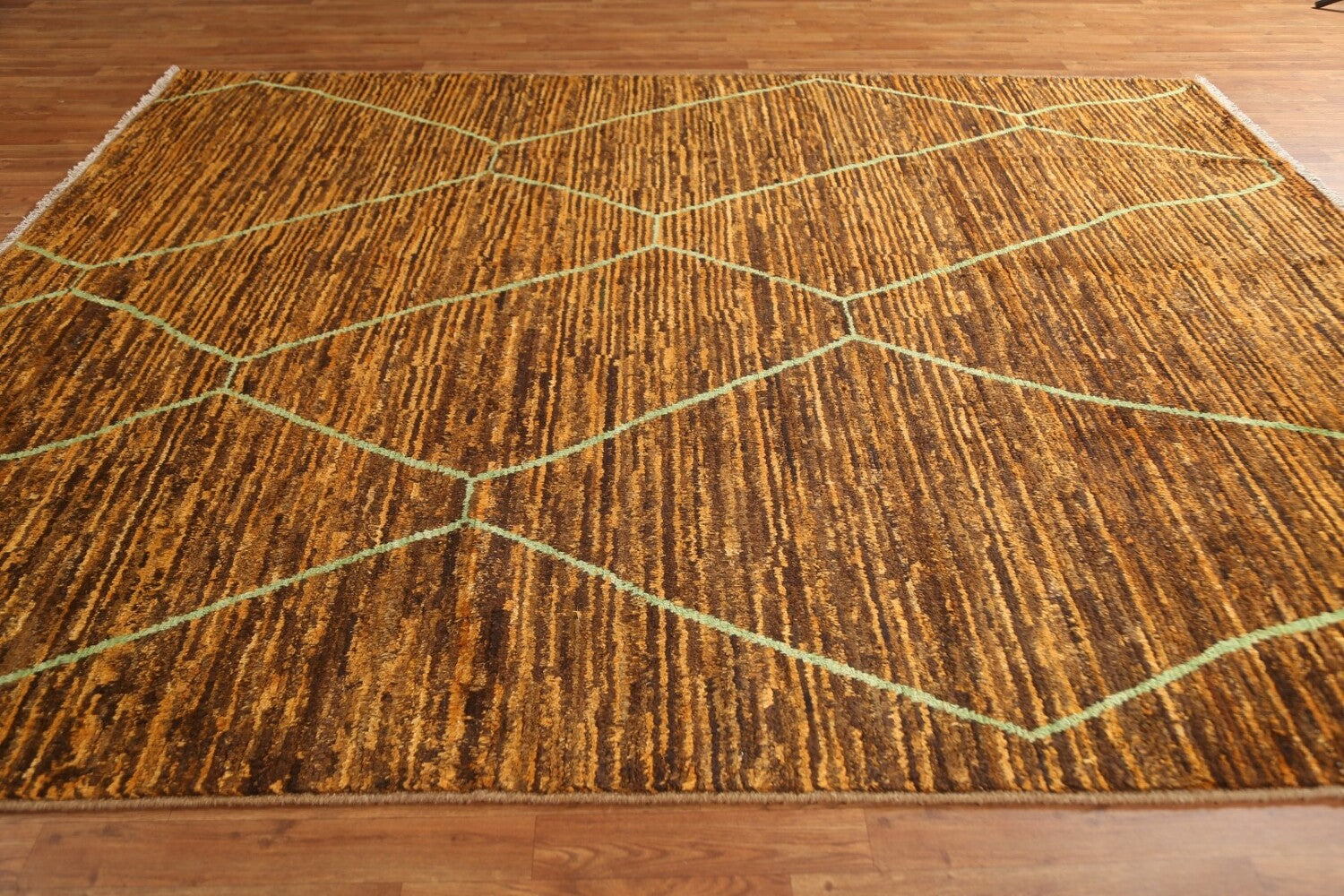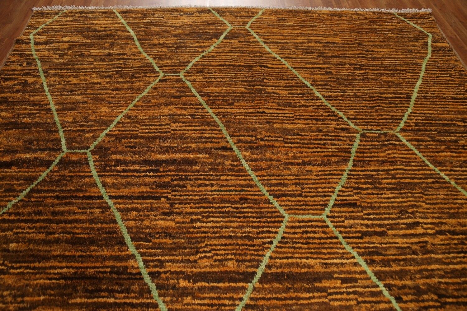 A Beautiful Genuine Pakistan Moroccan rug is Hand Knotted by skillful weavers in Pakistan with 100% Wool Material. This rug is in condition. dimensions are 10' 3'' X 8' 1'' in foot and 312 X 246 in centimeter. the primary color is Yellow & Gold.