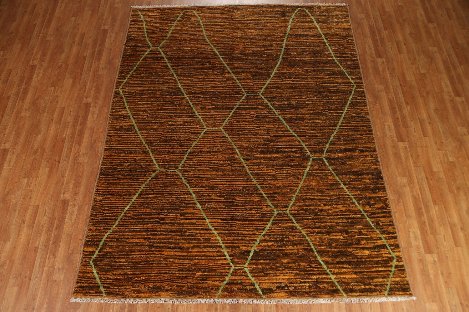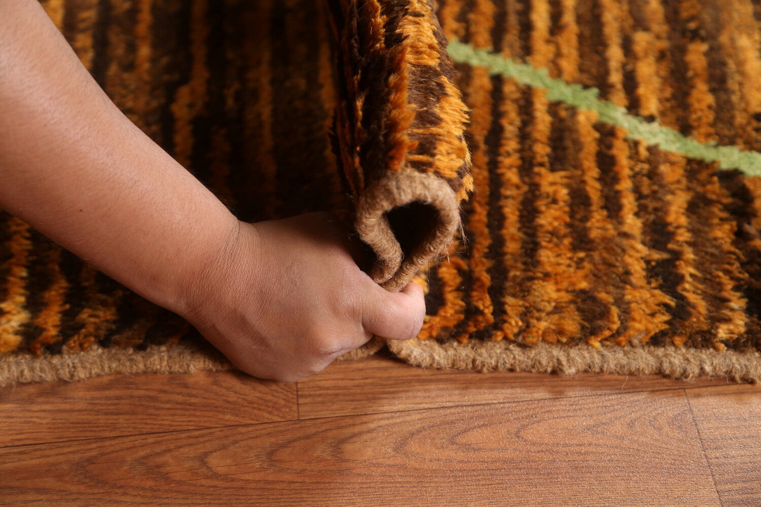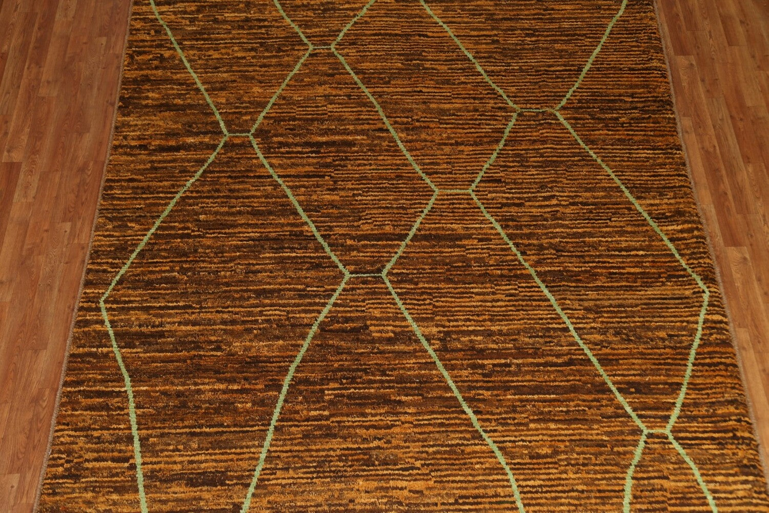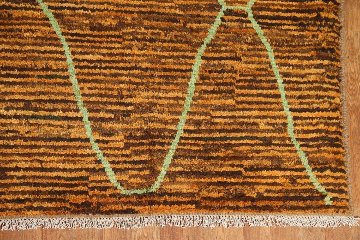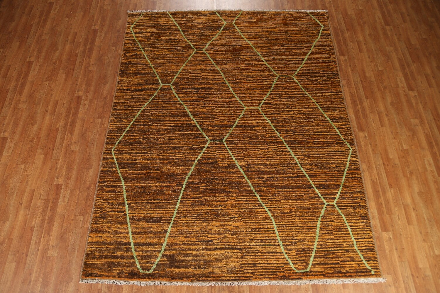 A Beautiful Genuine Pakistan Moroccan rug is Hand Knotted by skillful weavers in Pakistan with 100% Wool Material. This rug is in condition. dimensions are 10' 3'' X 8' 1'' in foot and 312 X 246 in centimeter. the primary color is Yellow & Gold.