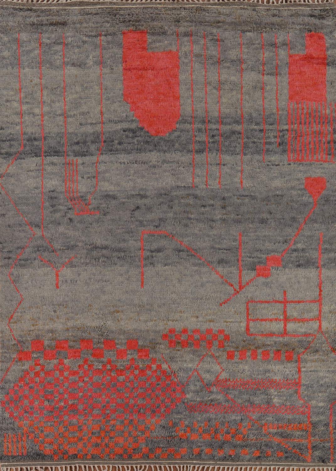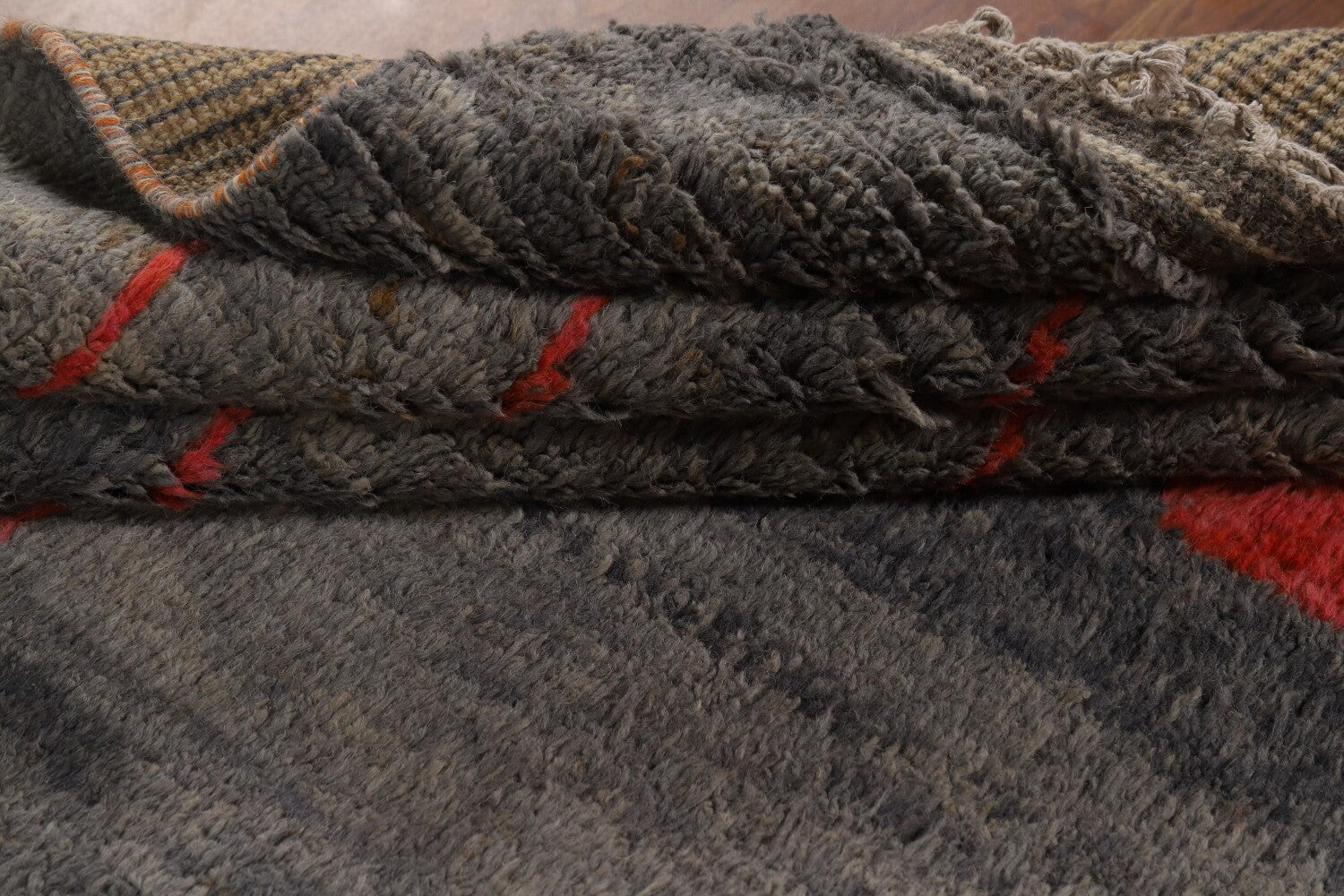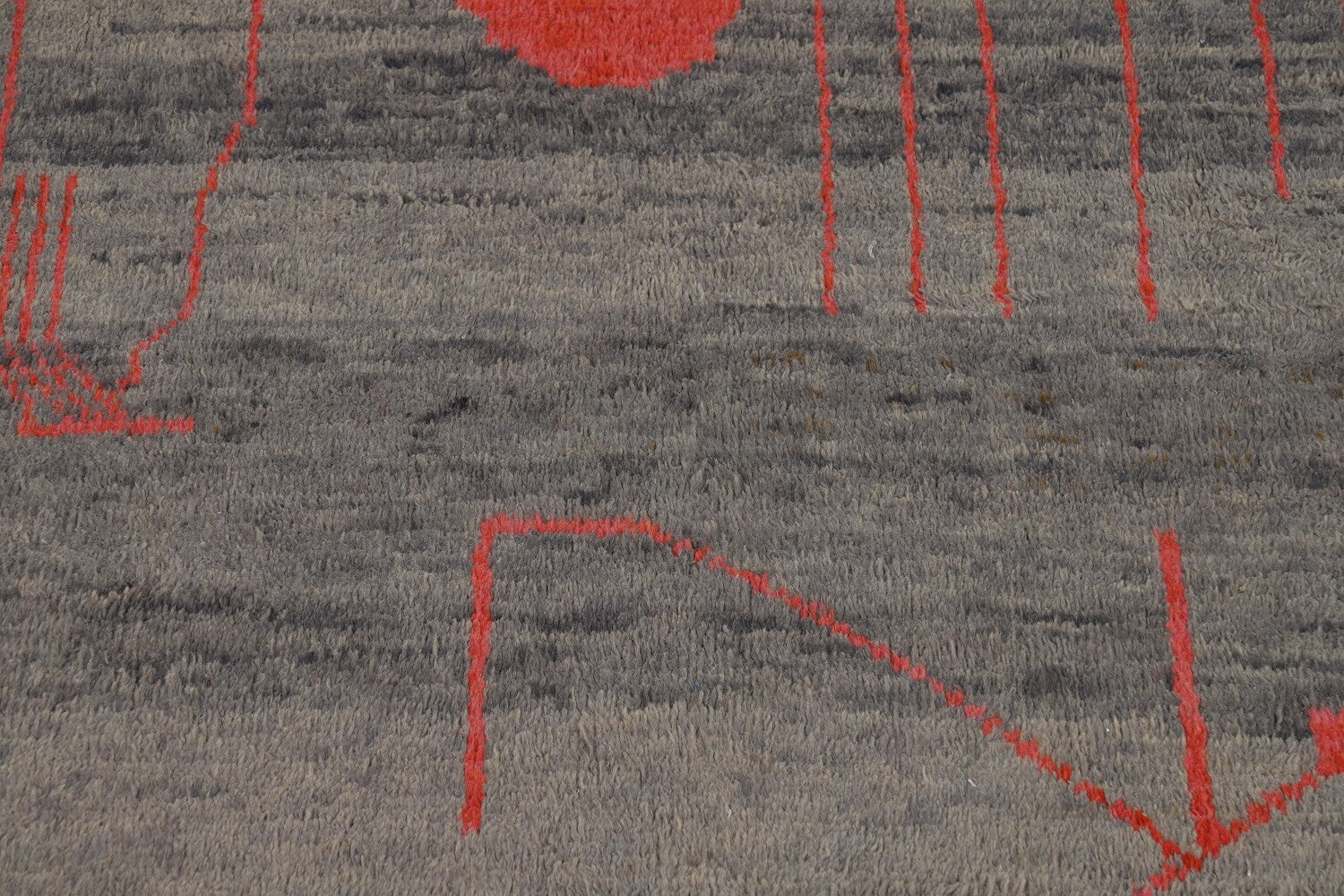A Beautiful Genuine Pakistan Moroccan rug is Hand Knotted by skillful weavers in Pakistan with 100% Wool Material. This rug is in condition. dimensions are 10' 7'' X 8' 0'' in foot and 323 X 244 in centimeter. the primary color is Greys & Charcoal.