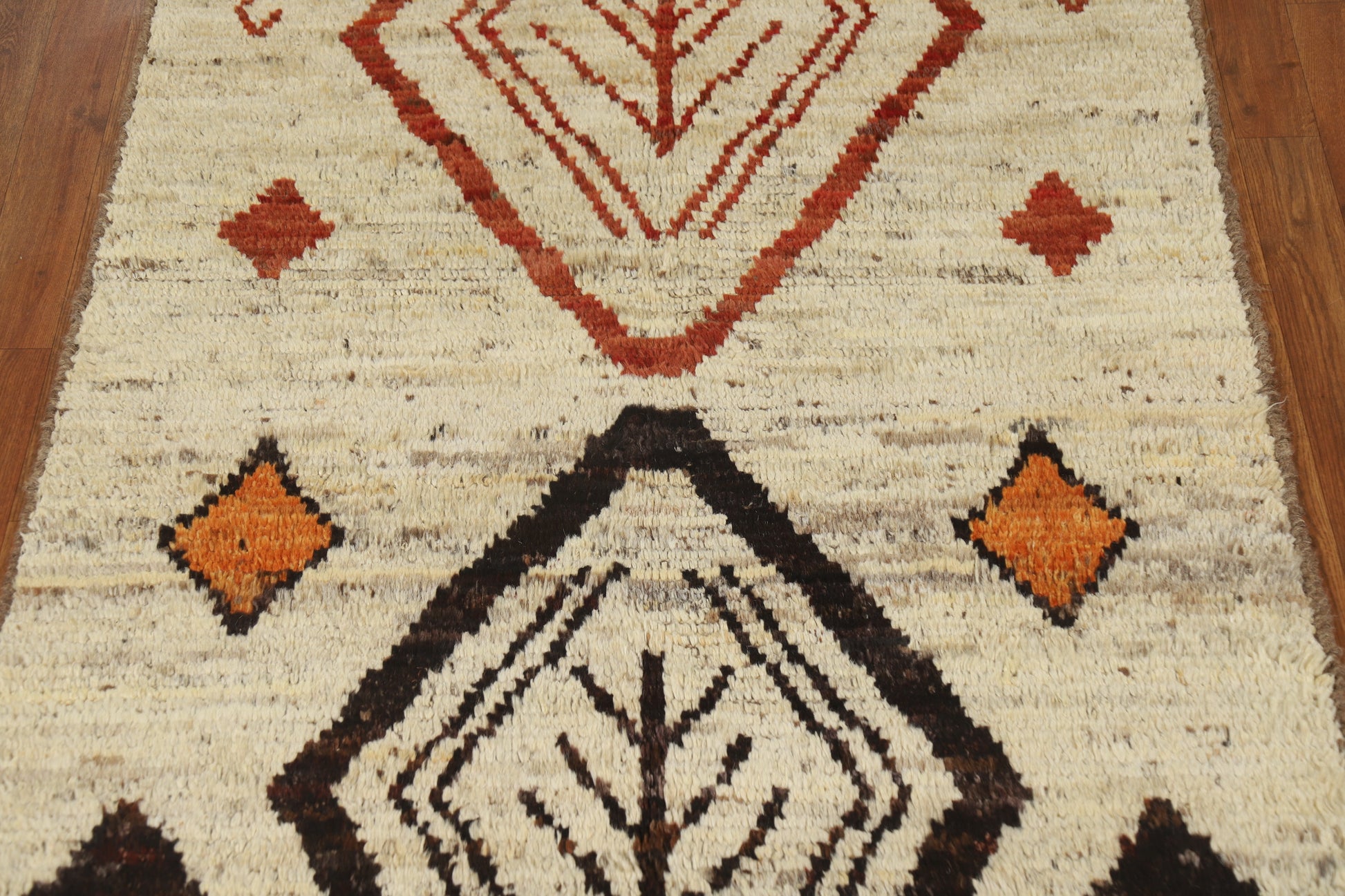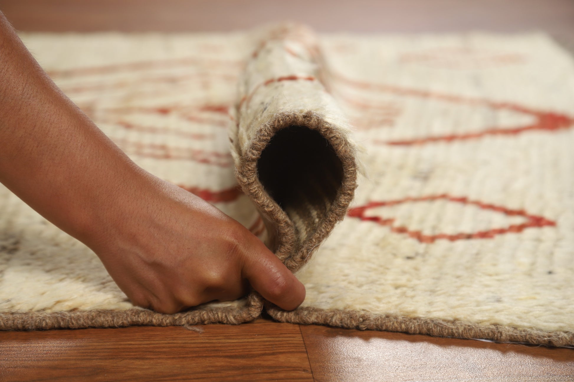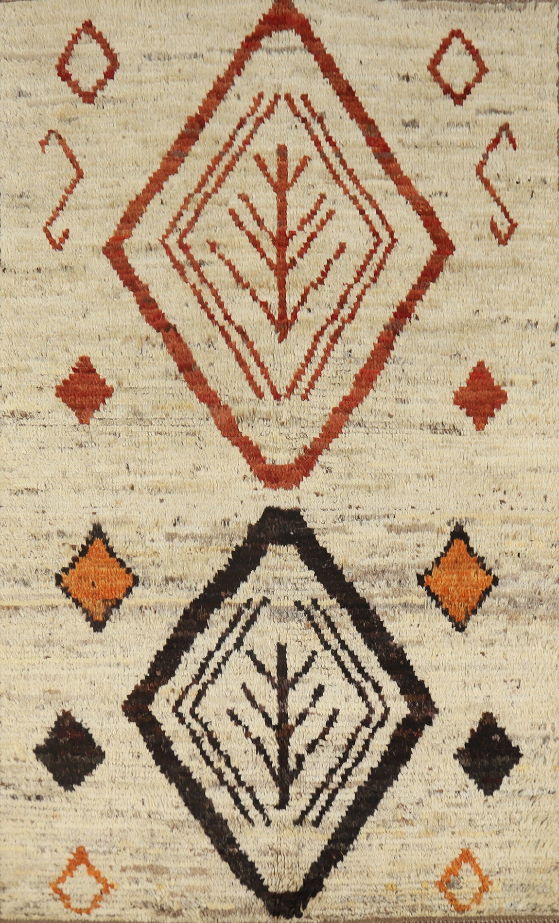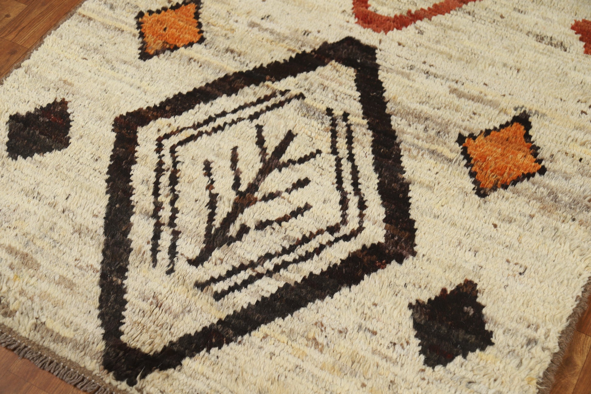 A Beautiful Genuine Pakistan Moroccan rug is Hand Knotted by skillful weavers in Pakistan with 100% Wool Material. This rug is in New, First Quality condition. dimensions are 6' 2'' X 3' 9'' in foot and 188 X 114 in centimeter. the primary color is Beige & Ivories.