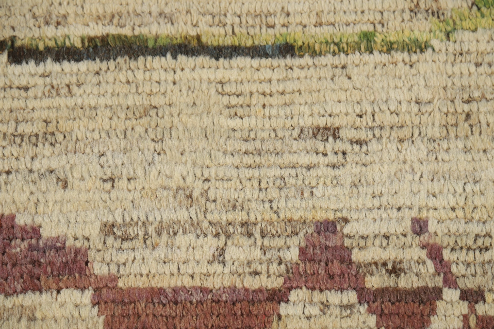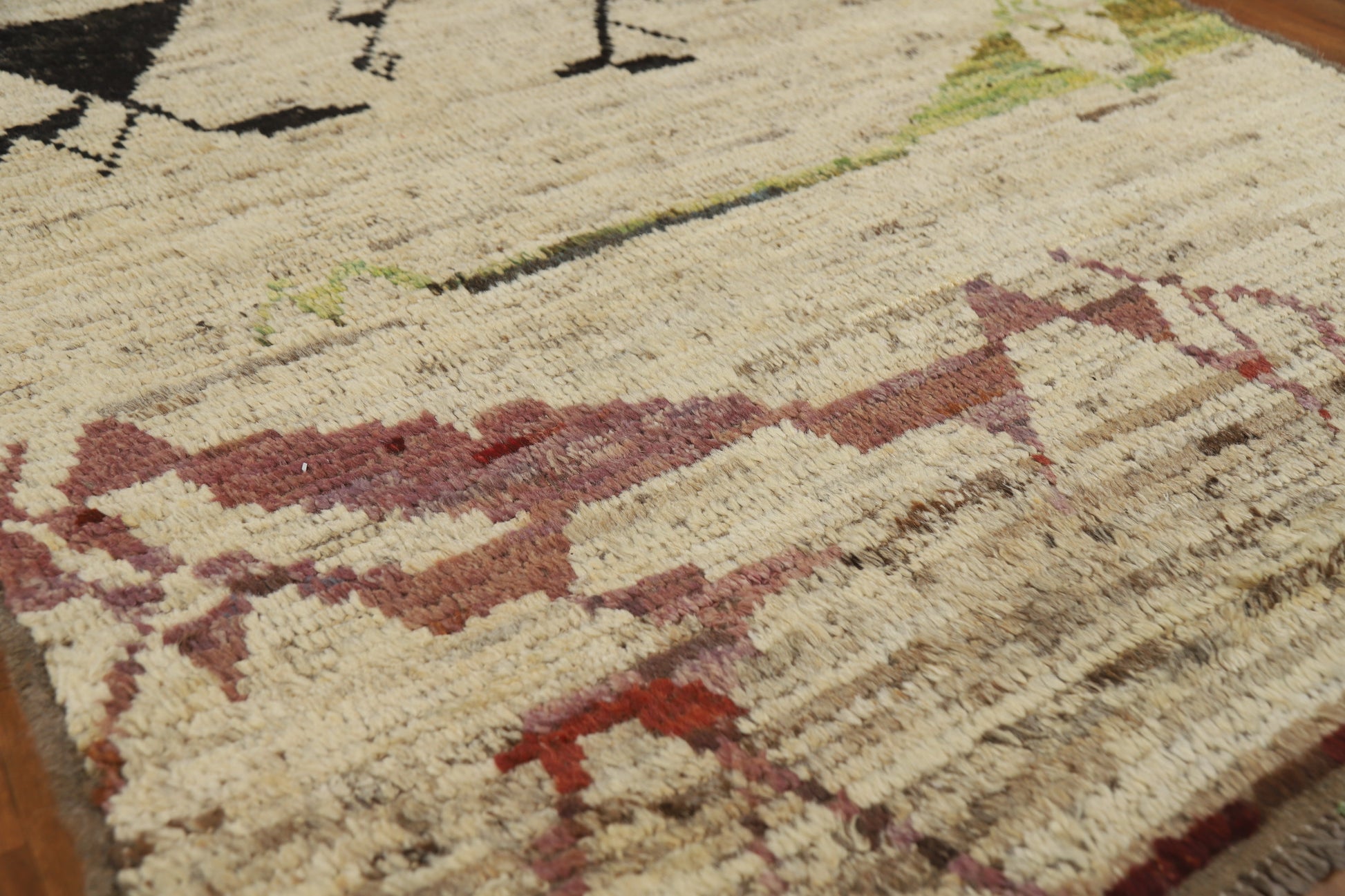 A Beautiful Genuine Pakistan Moroccan rug is Hand Knotted by skillful weavers in Pakistan with 100% Wool Material. This rug is in New, First Quality condition. dimensions are 5' 11'' X 4' 2'' in foot and 180 X 127 in centimeter. the primary color is Beige & Ivories.