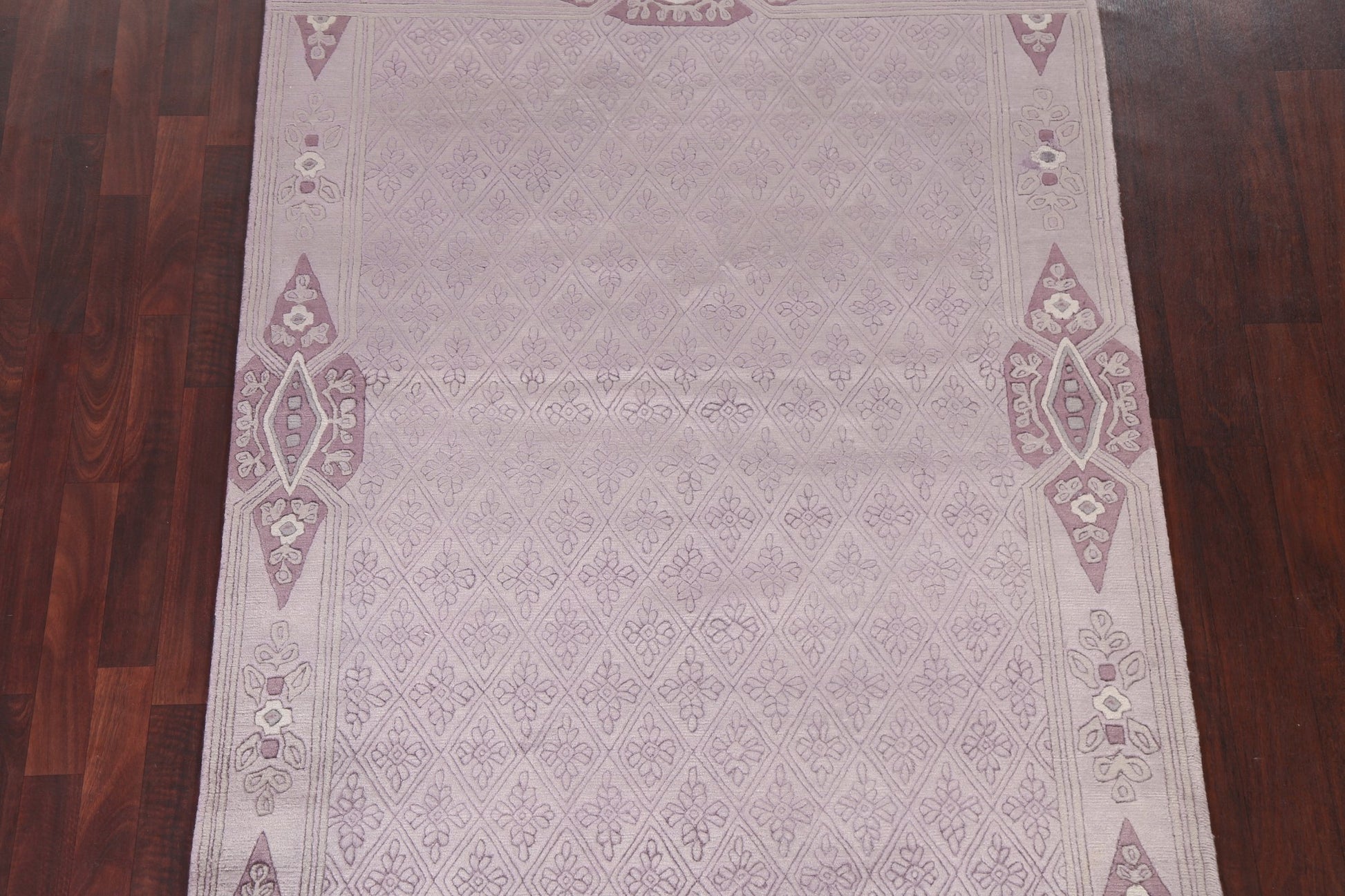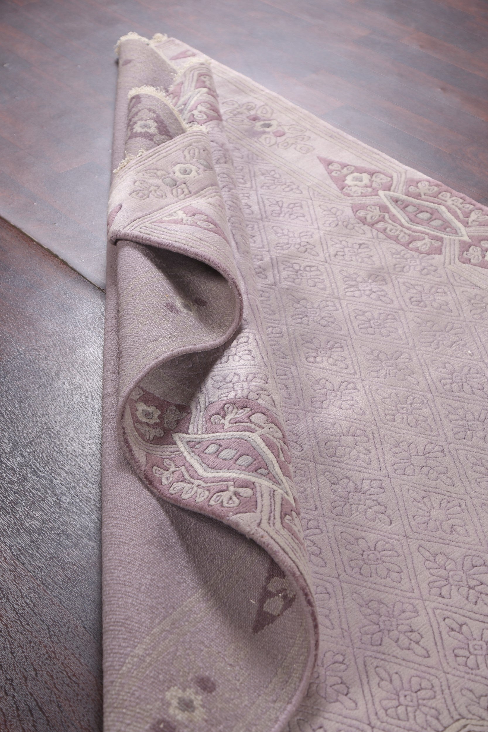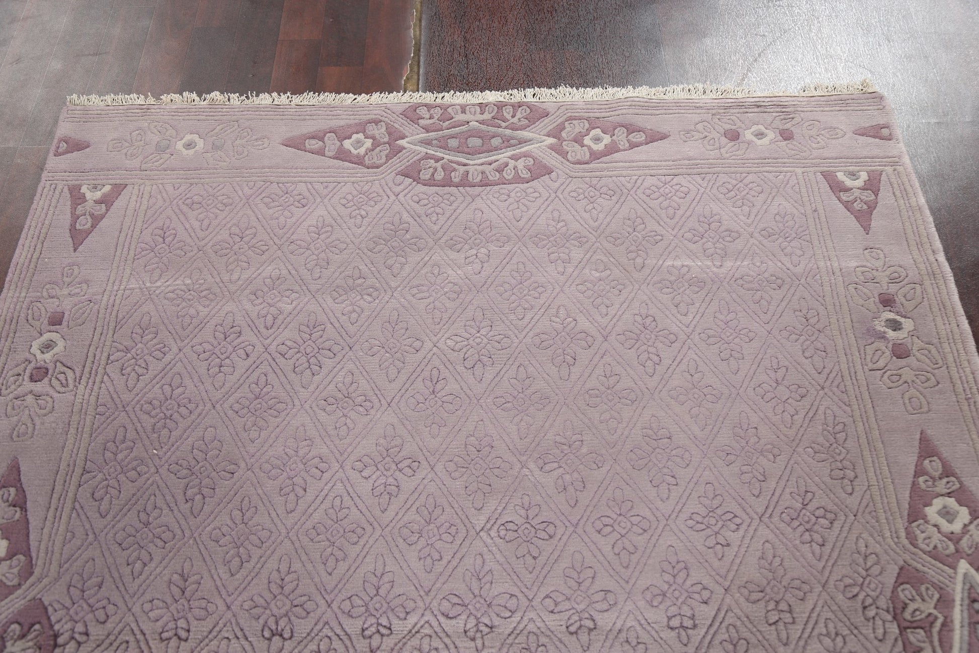 A Beautiful Genuine India Nepalese rug is Hand Knotted by skillful weavers in India with 100% Wool Material. This rug is in New, First Quality condition. dimensions are 6' 6'' X 4' 10'' in foot and 198 X 147 in centimeter. the primary color is Purples.