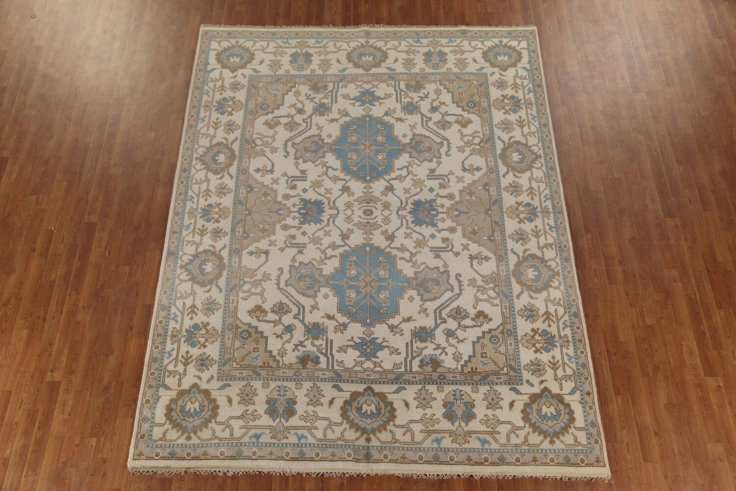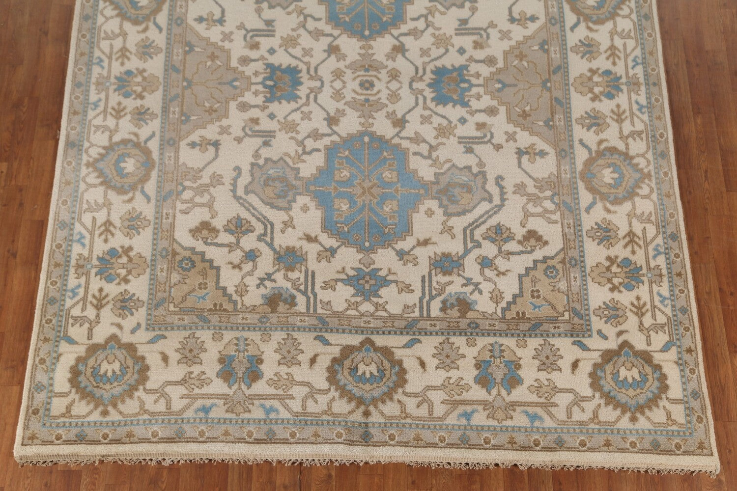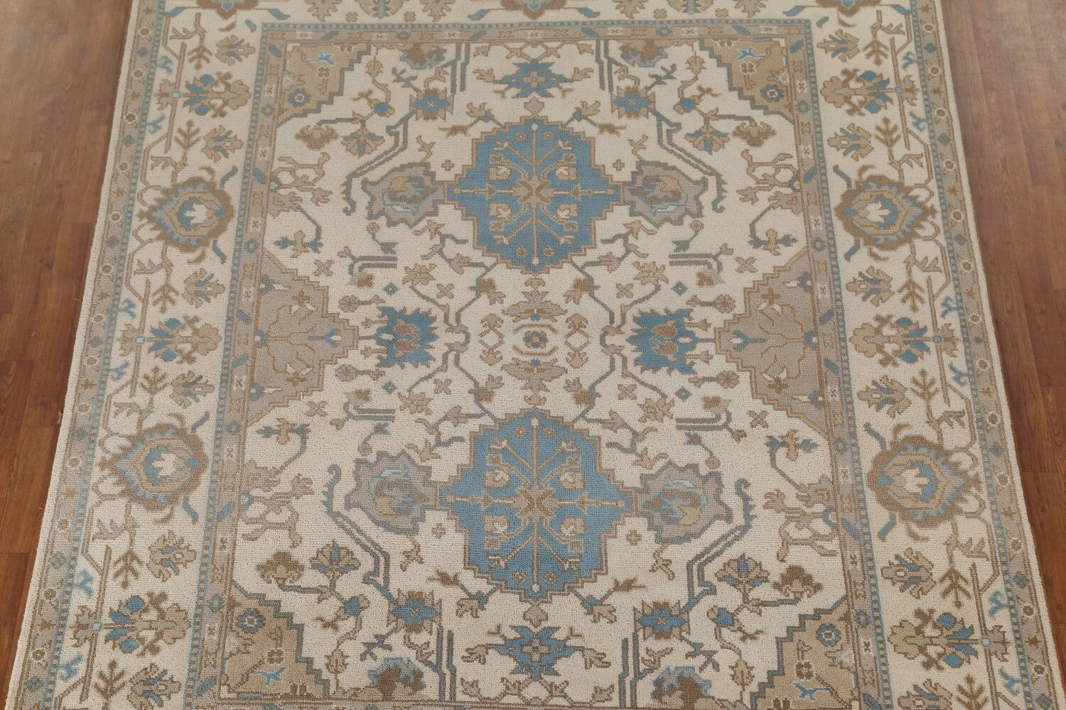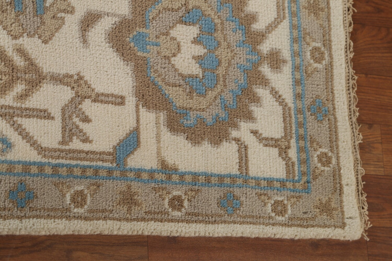 A Beautiful Genuine India Oushak rug is Hand Knotted by skillful weavers in India with 100% Wool Material. This rug is in condition. dimensions are 10' 2'' X 8' 0'' in foot and 310 X 244 in centimeter. the primary color is Beige & Ivories.