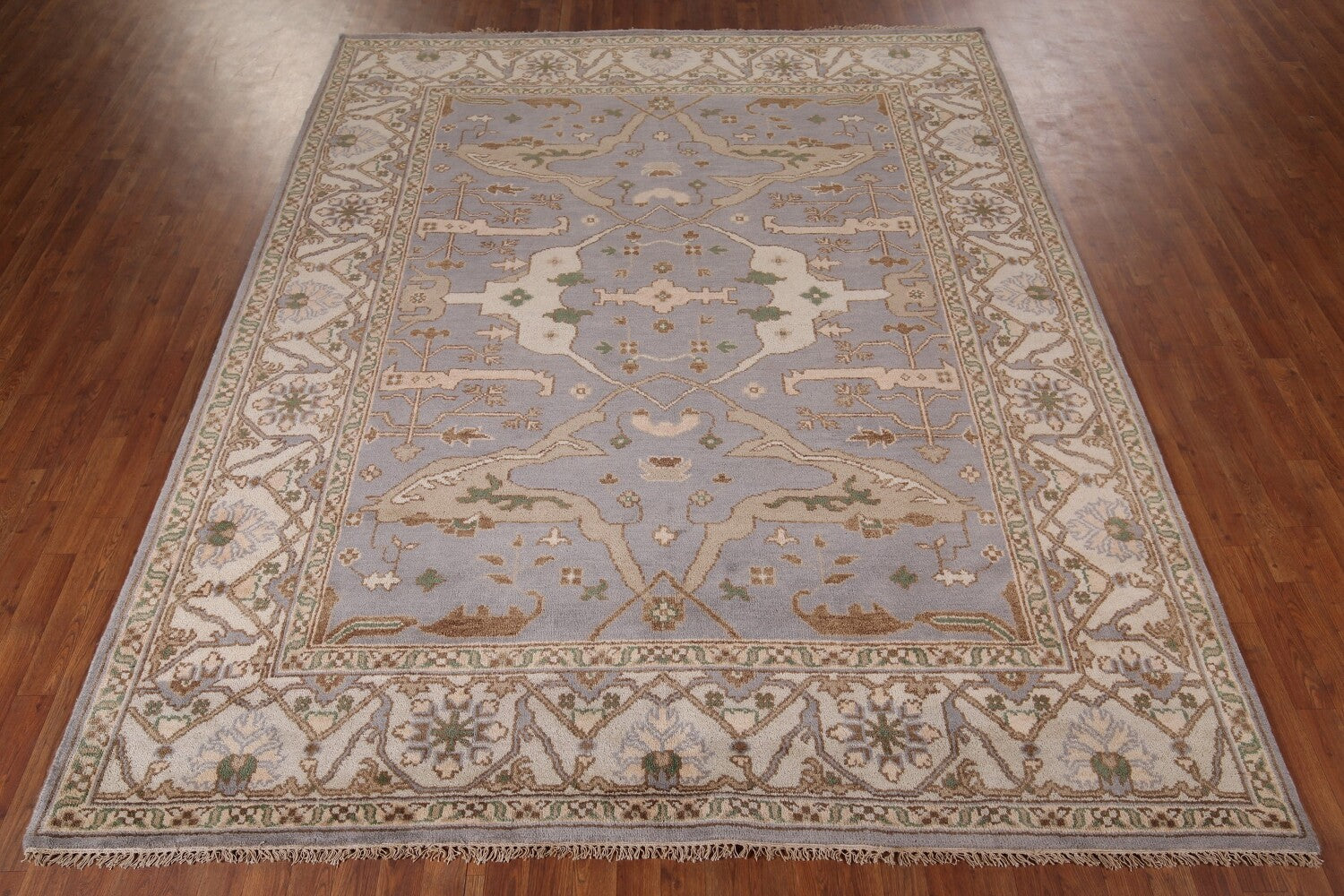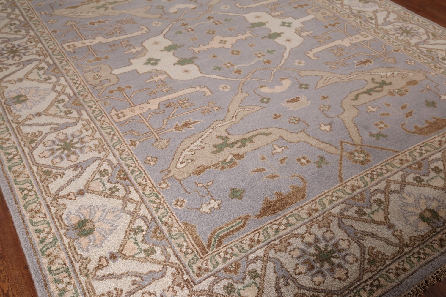 A Beautiful Genuine India Oushak rug is Hand Knotted by skillful weavers in India with 100% Wool Material. This rug is in New, First Quality condition. dimensions are 9' 10'' X 8' 0'' in foot and 300 X 244 in centimeter. the primary color is Greys & Charcoal.