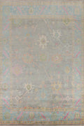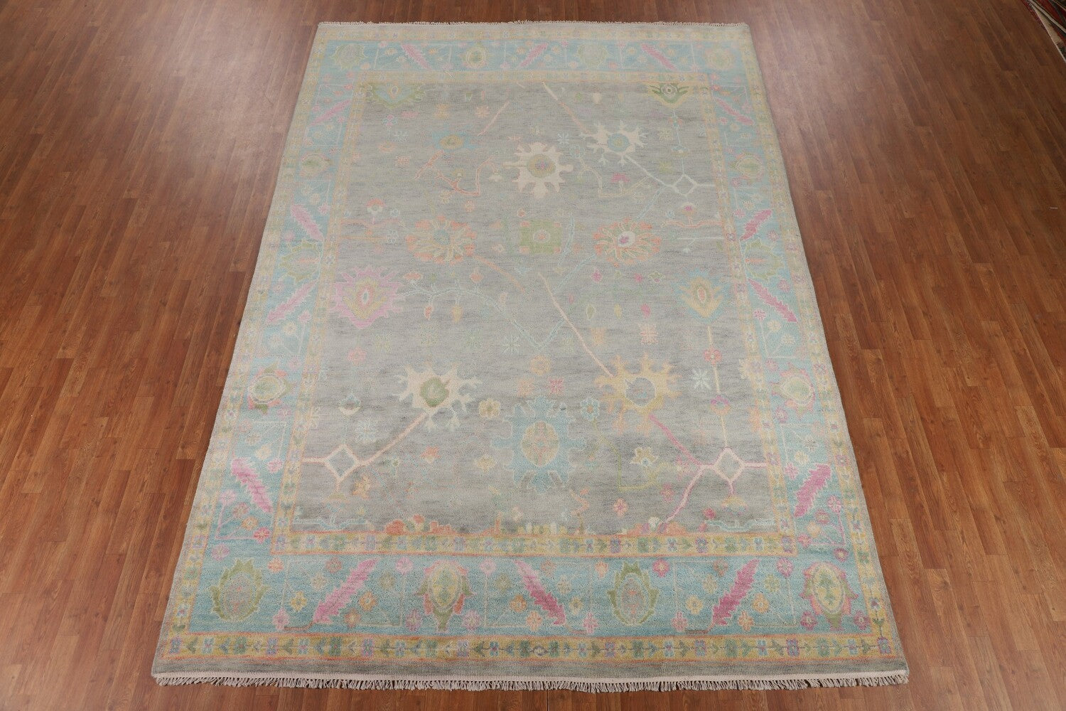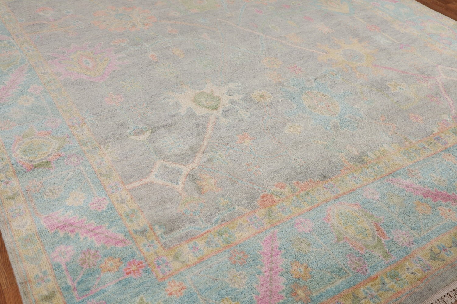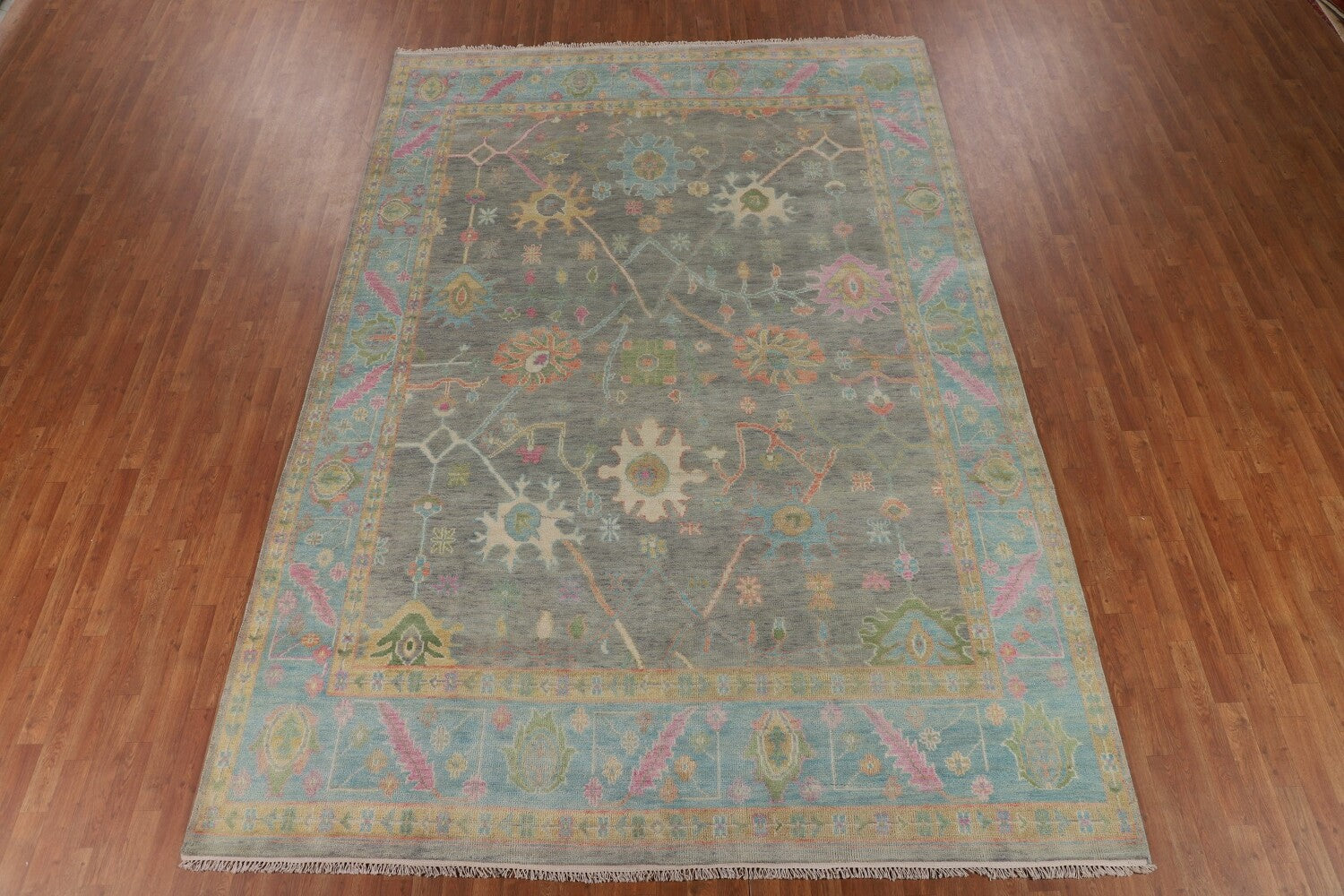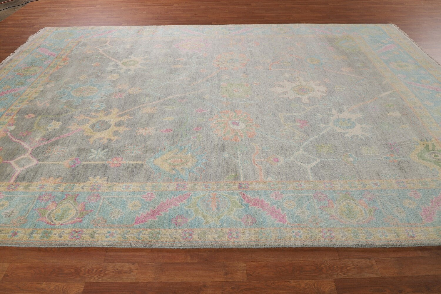 A Beautiful Genuine India Oushak rug is Hand Knotted by skillful weavers in India with 100% Wool Material. This rug is in New, First Quality condition. dimensions are 12' 6'' X 8' 8'' in foot and 381 X 264 in centimeter. the primary color is Greys & Charcoal.