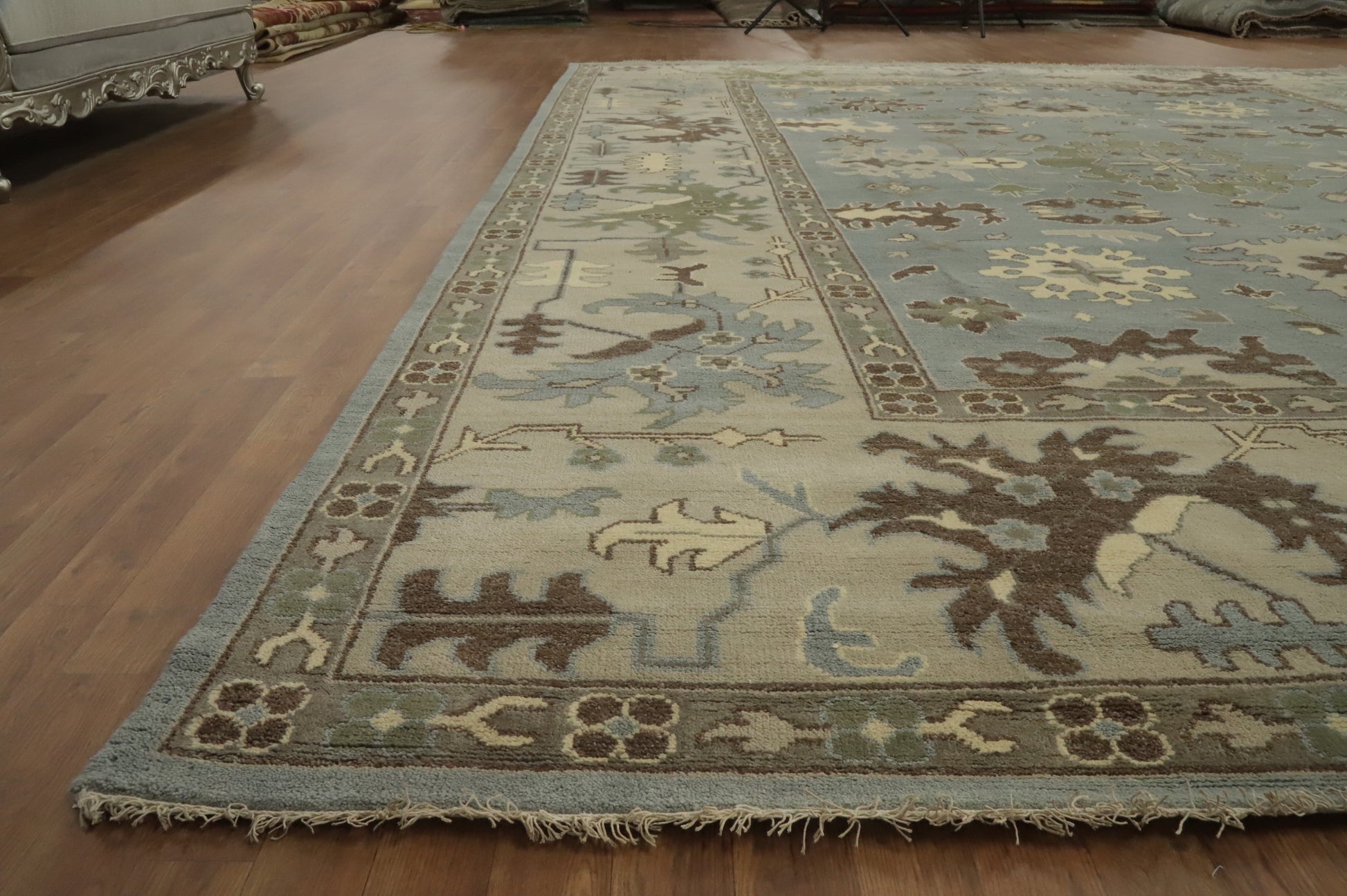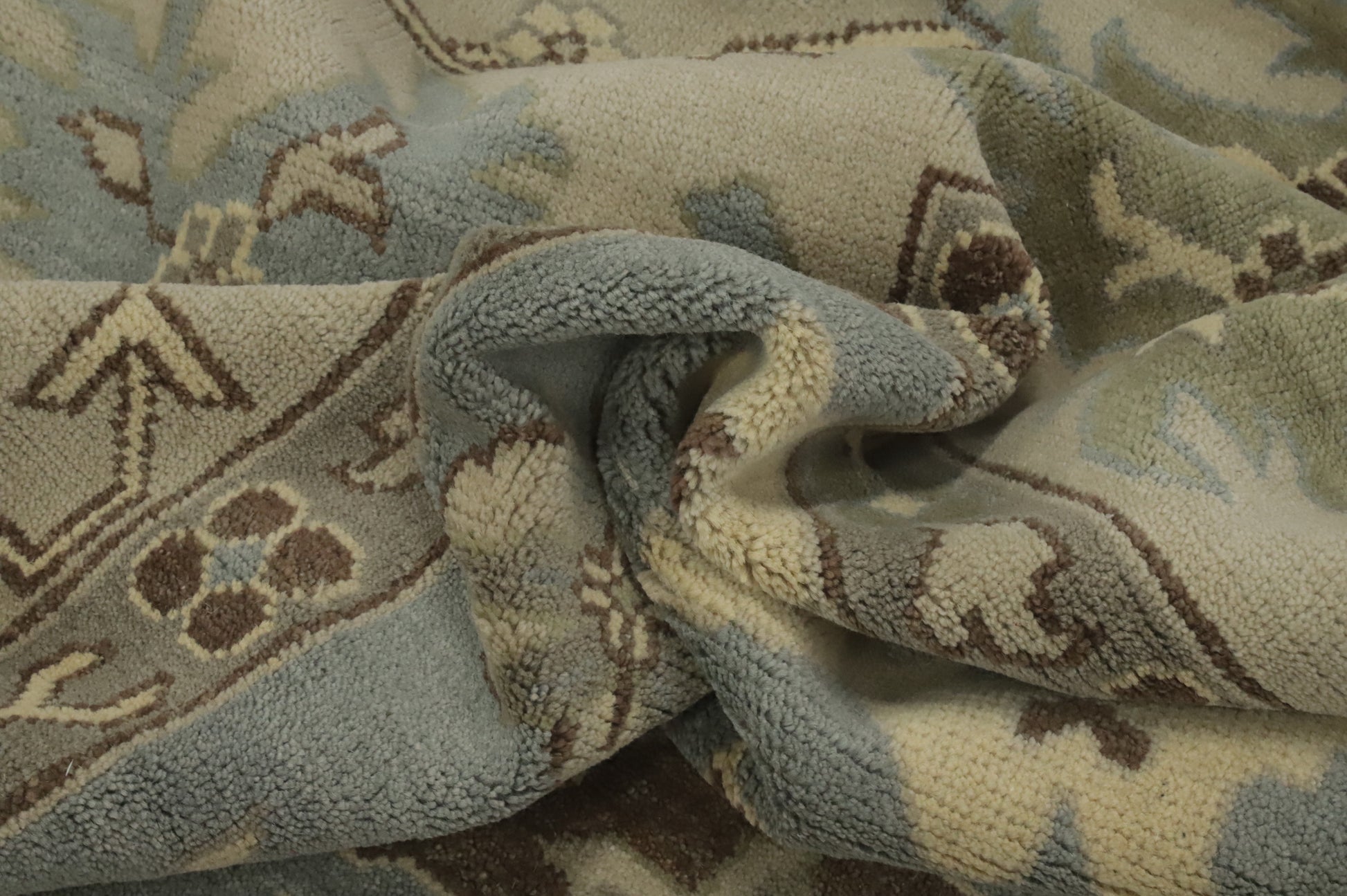 A Beautiful Genuine India Oushak rug is Hand Knotted by skillful weavers in India with 100% Wool Material. This rug is in New, First Quality condition. dimensions are 14' 10'' X 12' 0'' in foot and 452 X 366 in centimeter. the primary color is Navy Blue & Blues.