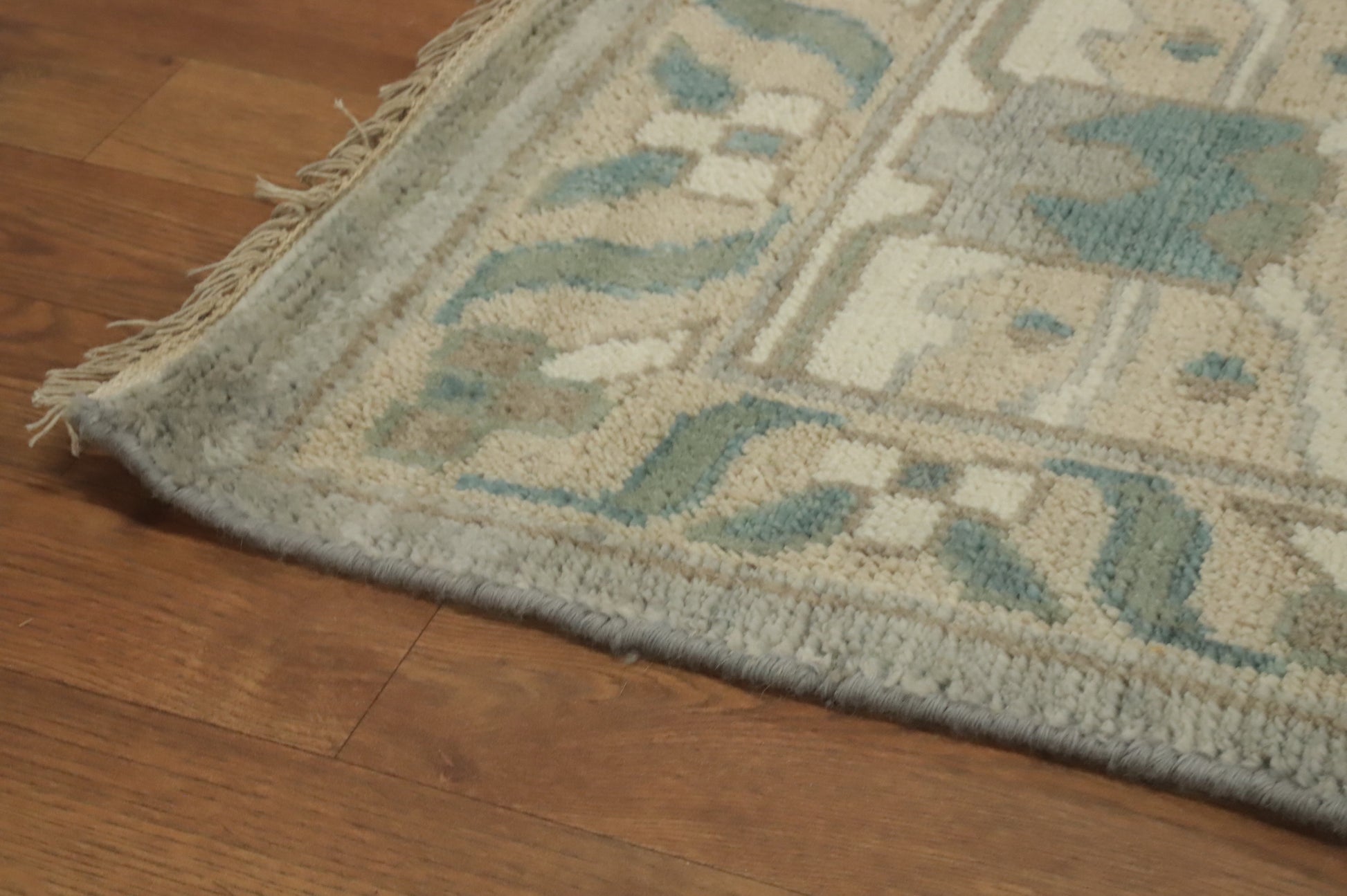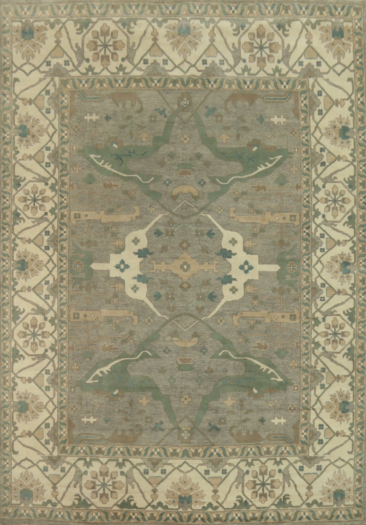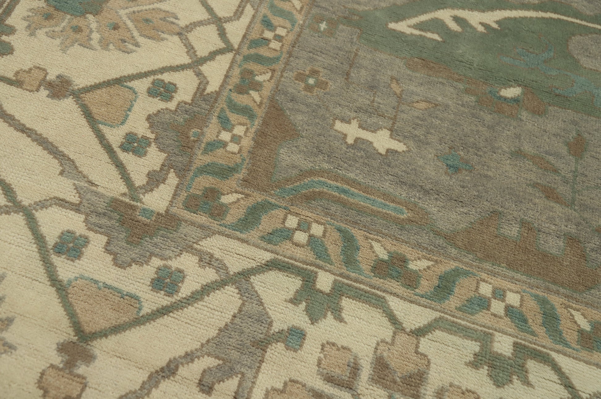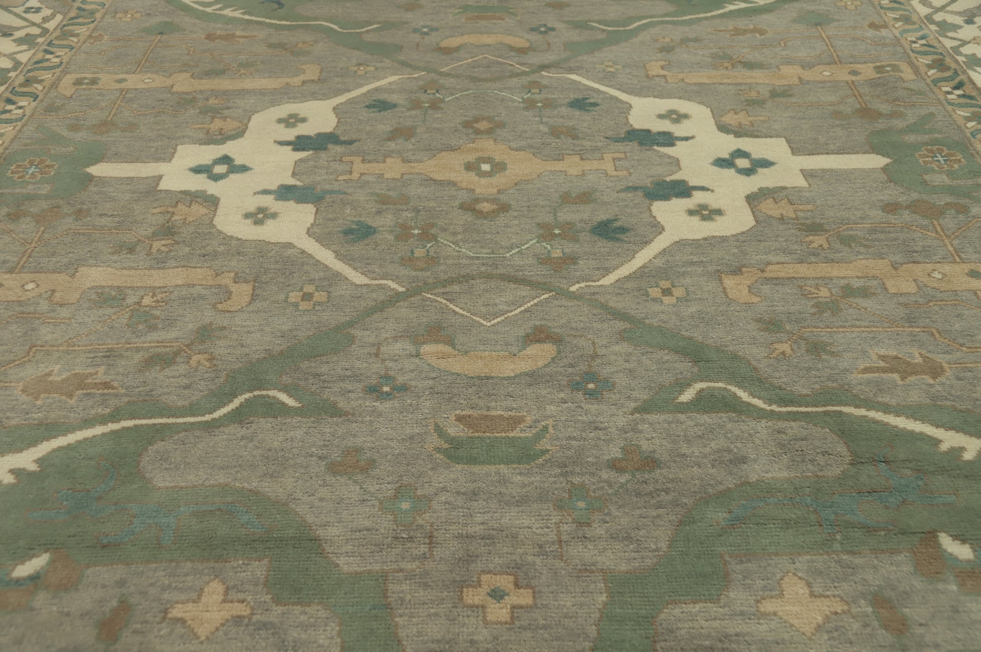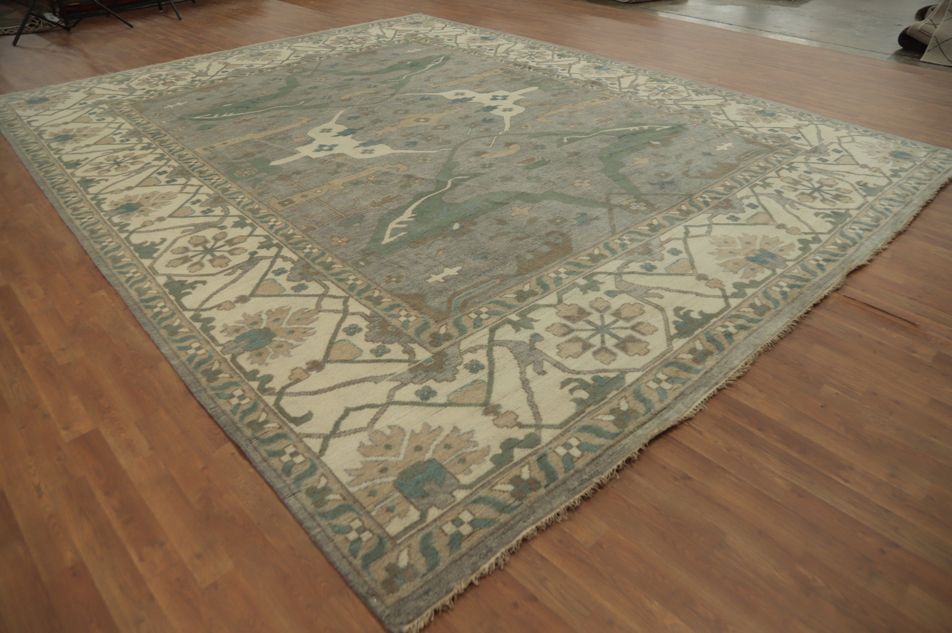 A Beautiful Genuine India Oushak rug is Hand Knotted by skillful weavers in India with 100% Wool Material. This rug is in New, First Quality condition. dimensions are 15' 4'' X 12' 2'' in foot and 467 X 371 in centimeter. the primary color is Greys & Charcoal.