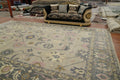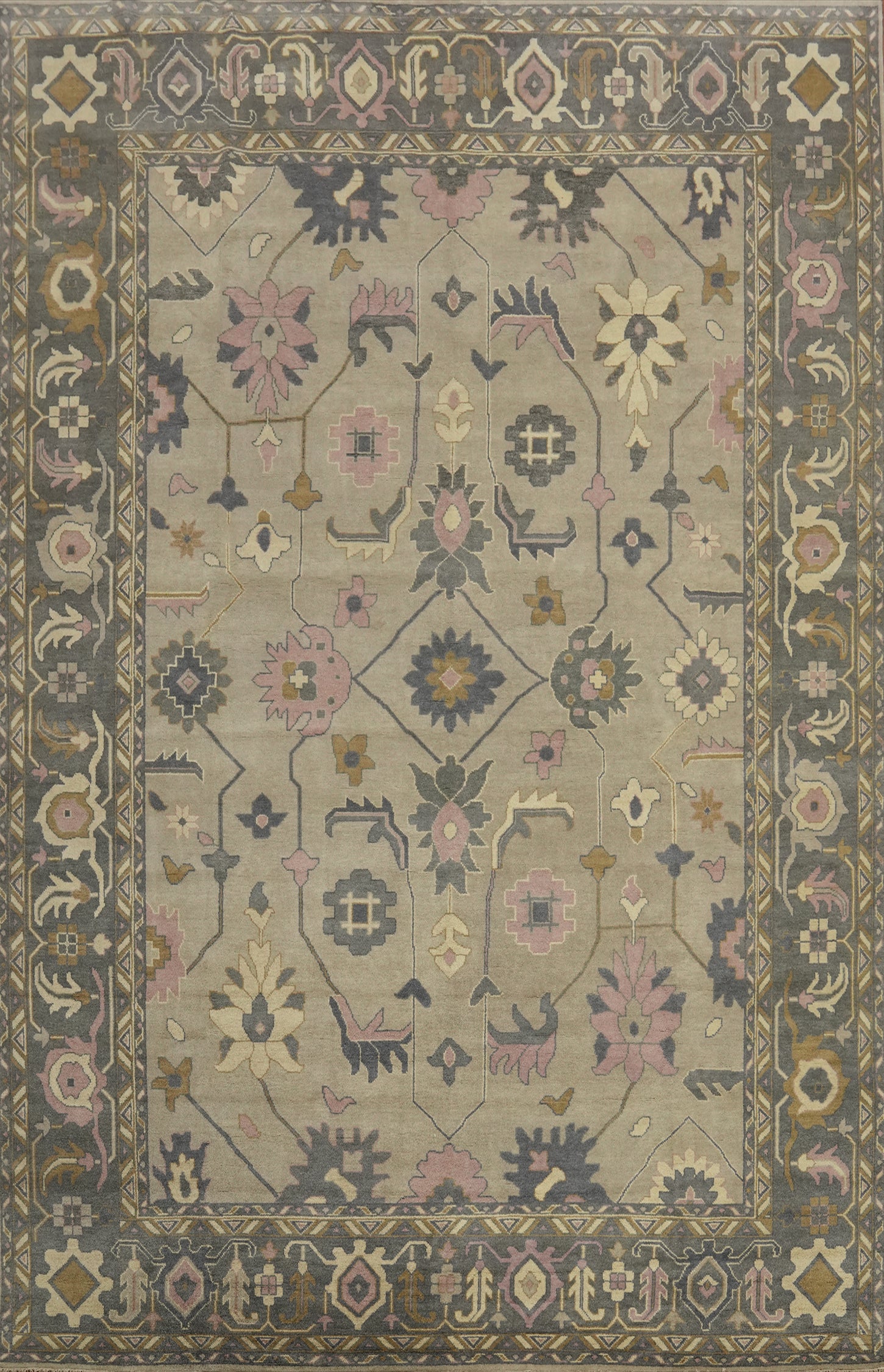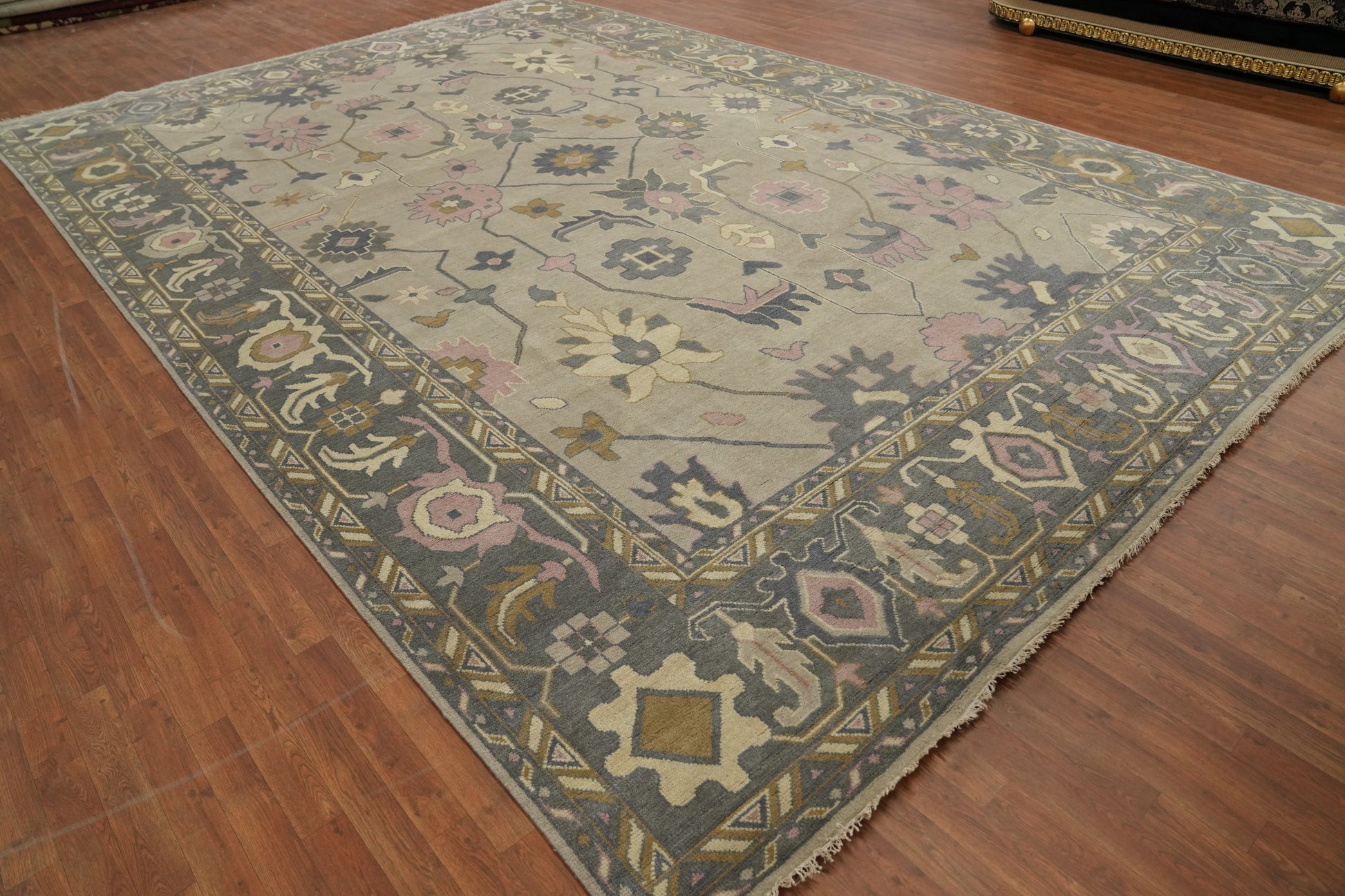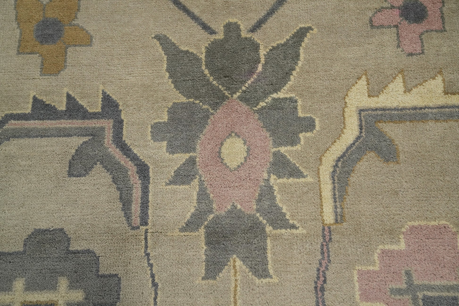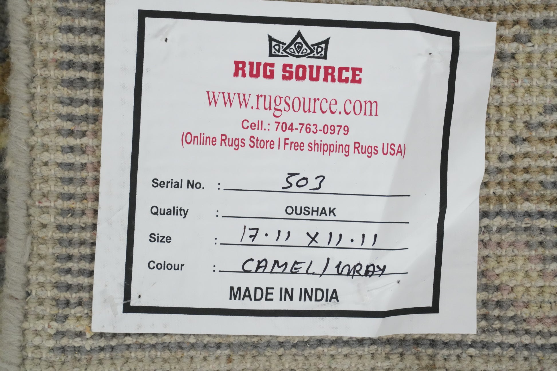 A Beautiful Genuine India Oushak rug is Hand Knotted by skillful weavers in India with 100% Wool Material. This rug is in New, First Quality condition. dimensions are 17' 11'' X 11' 11'' in foot and 546 X 363 in centimeter. the primary color is Beige & Ivories.