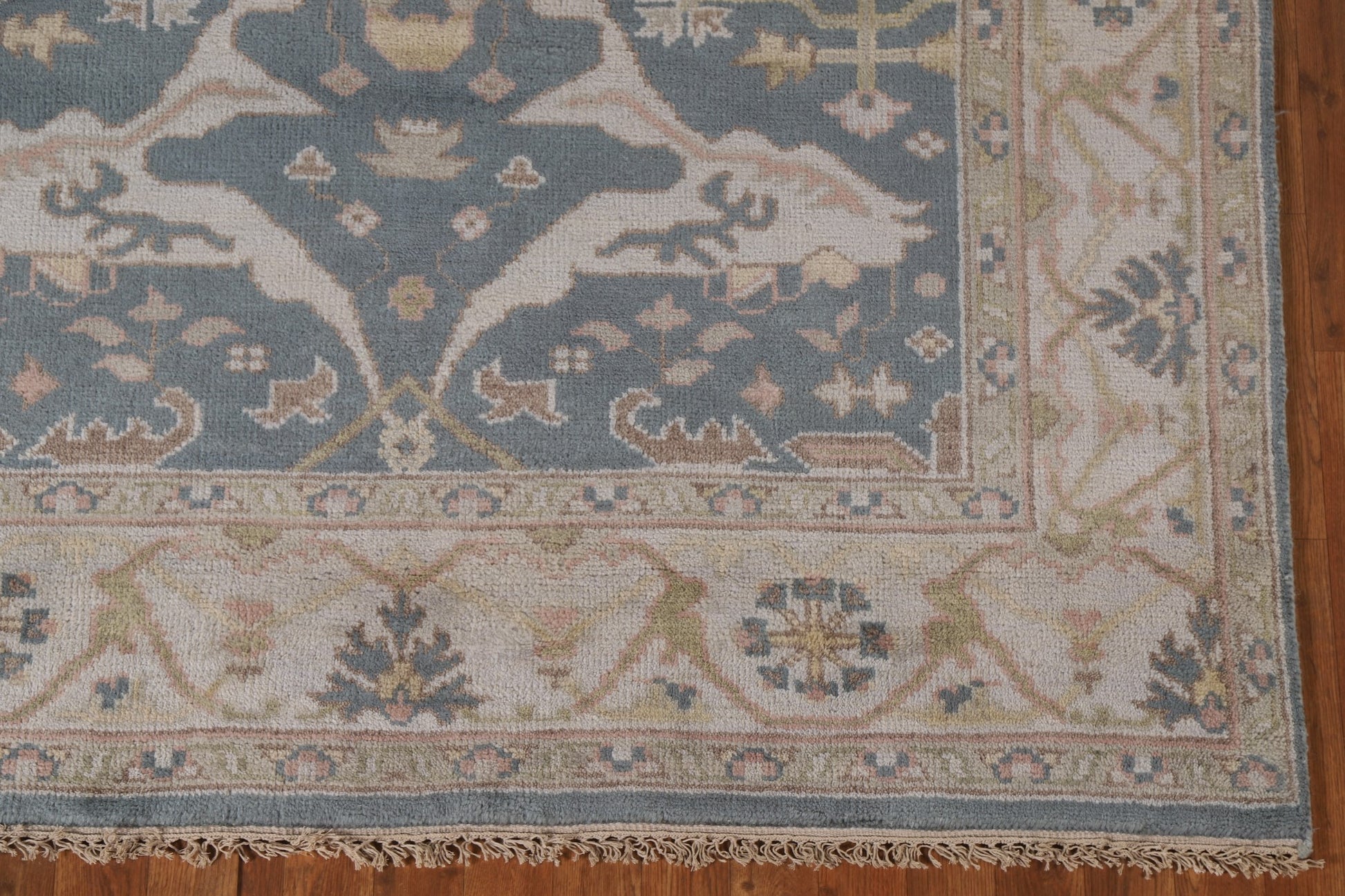 A Beautiful Genuine India Oushak rug is Hand Knotted by skillful weavers in India with 100% Wool Material. This rug is in New, First Quality condition. dimensions are 8' 10'' X 5' 9'' in foot and 269 X 175 in centimeter. the primary color is Navy Blue & Blues.