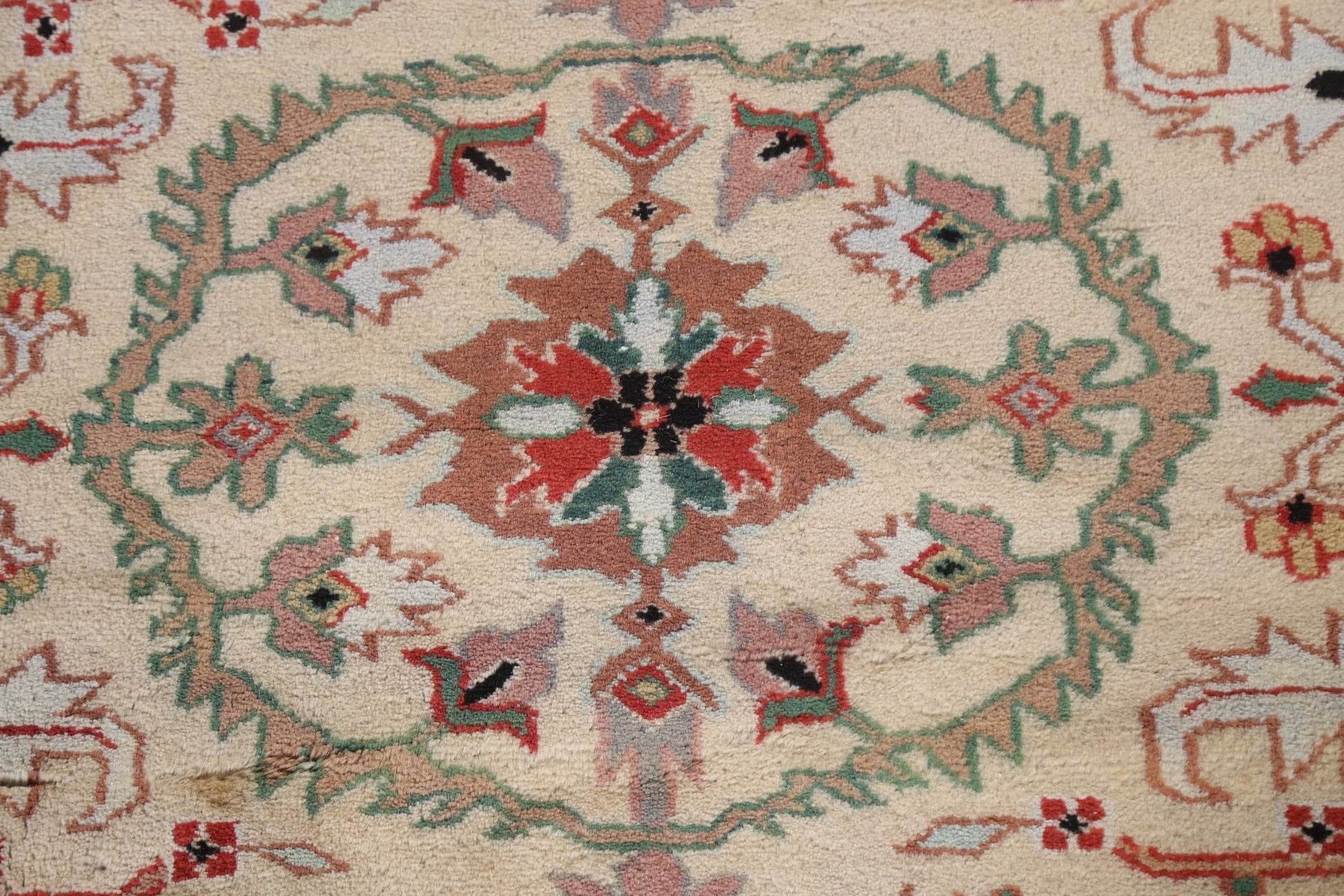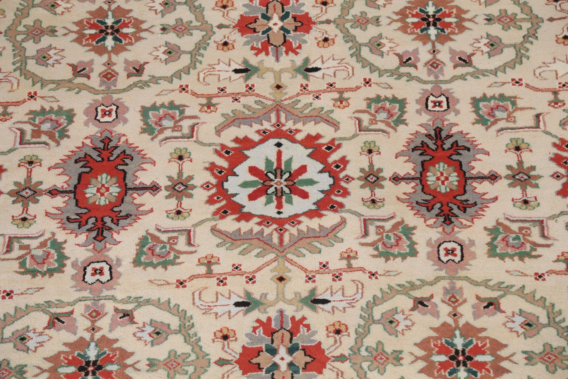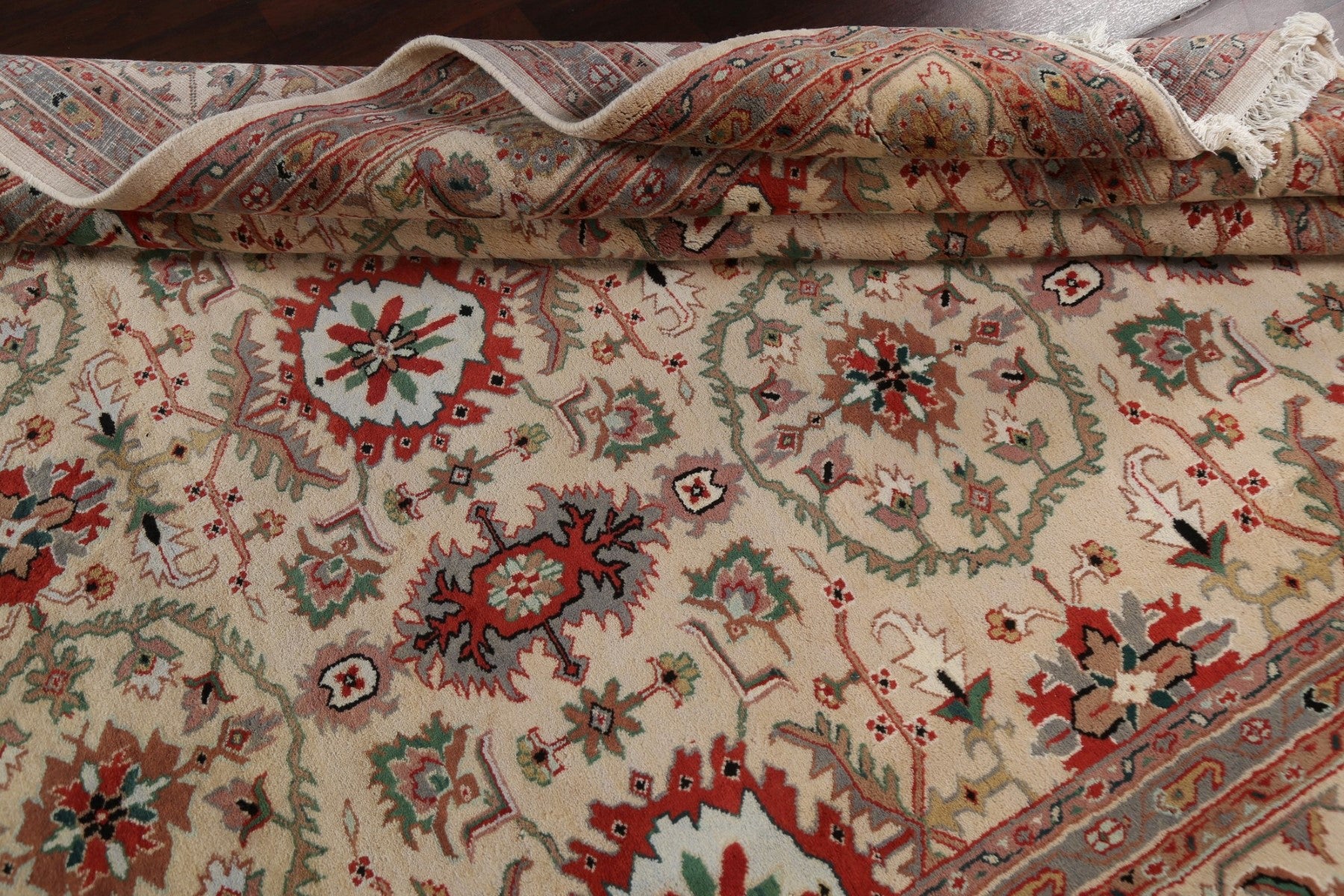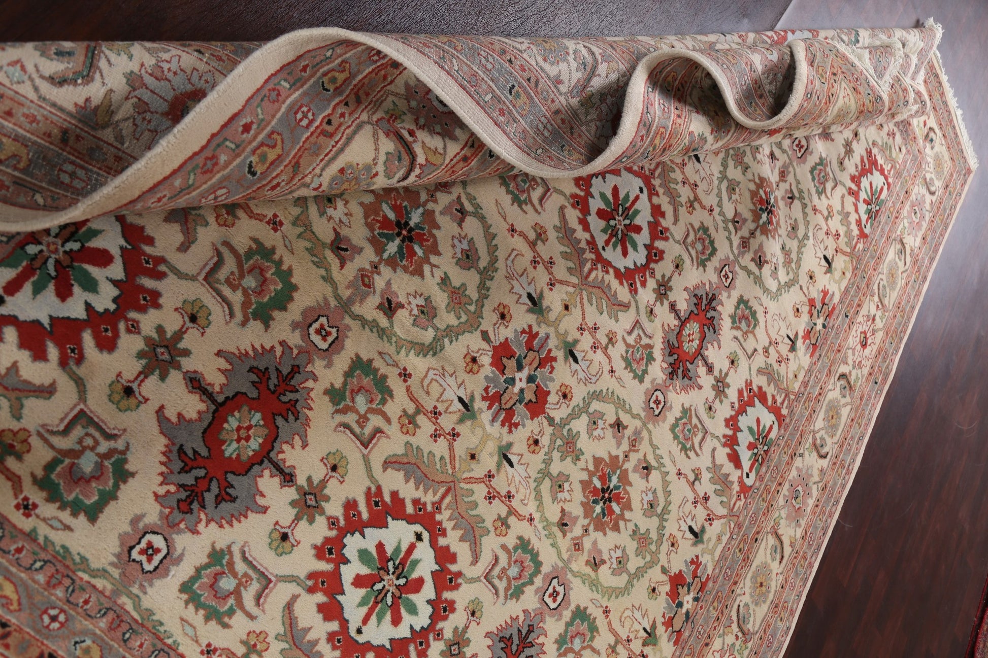 A Beautiful Genuine India Oushak rug is Hand Knotted by skillful weavers in India with 100% Wool Material. This rug is in New, First Quality condition. dimensions are 11' 3'' X 8' 6'' in foot and 343 X 259 in centimeter. the primary color is Beige & Ivories.