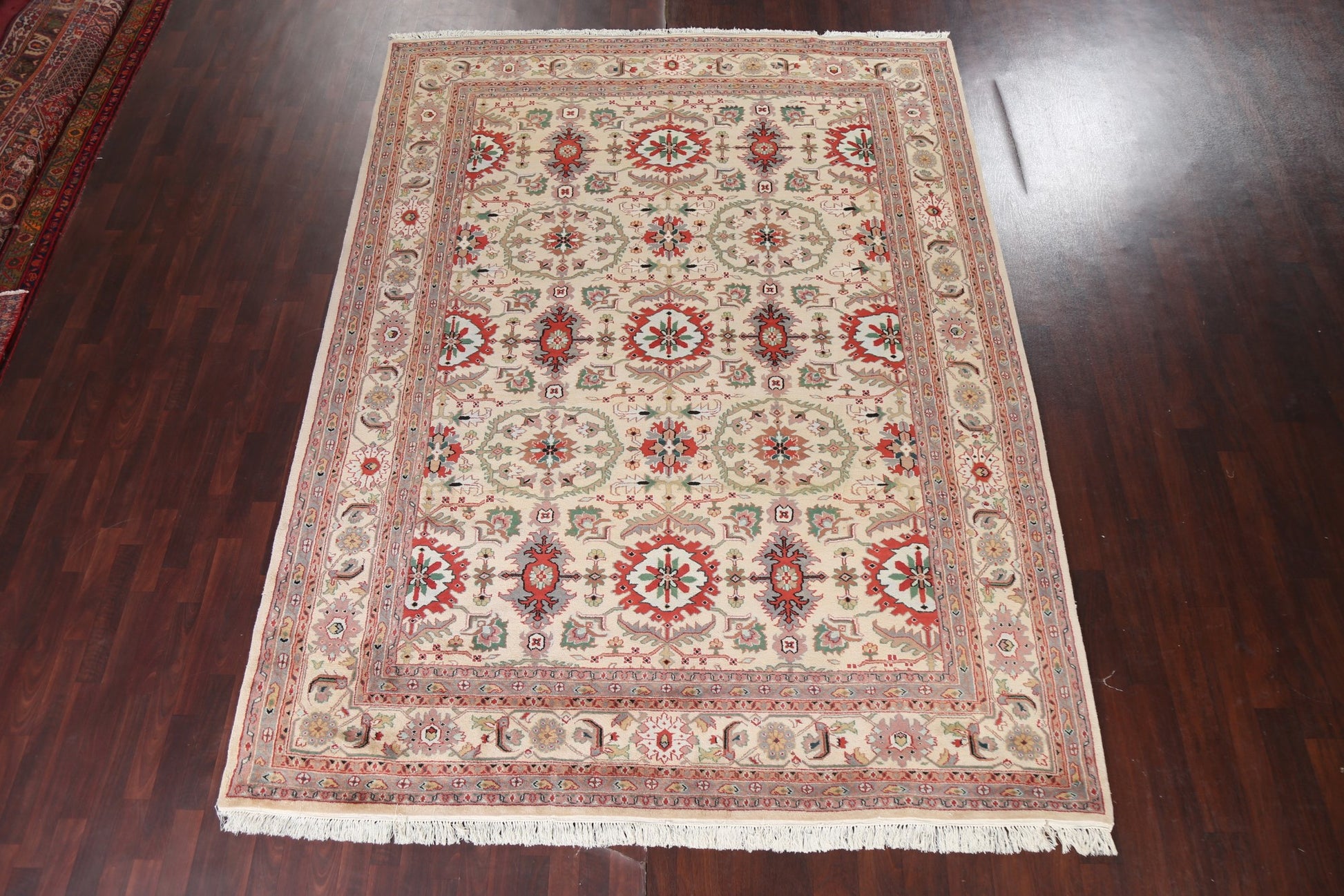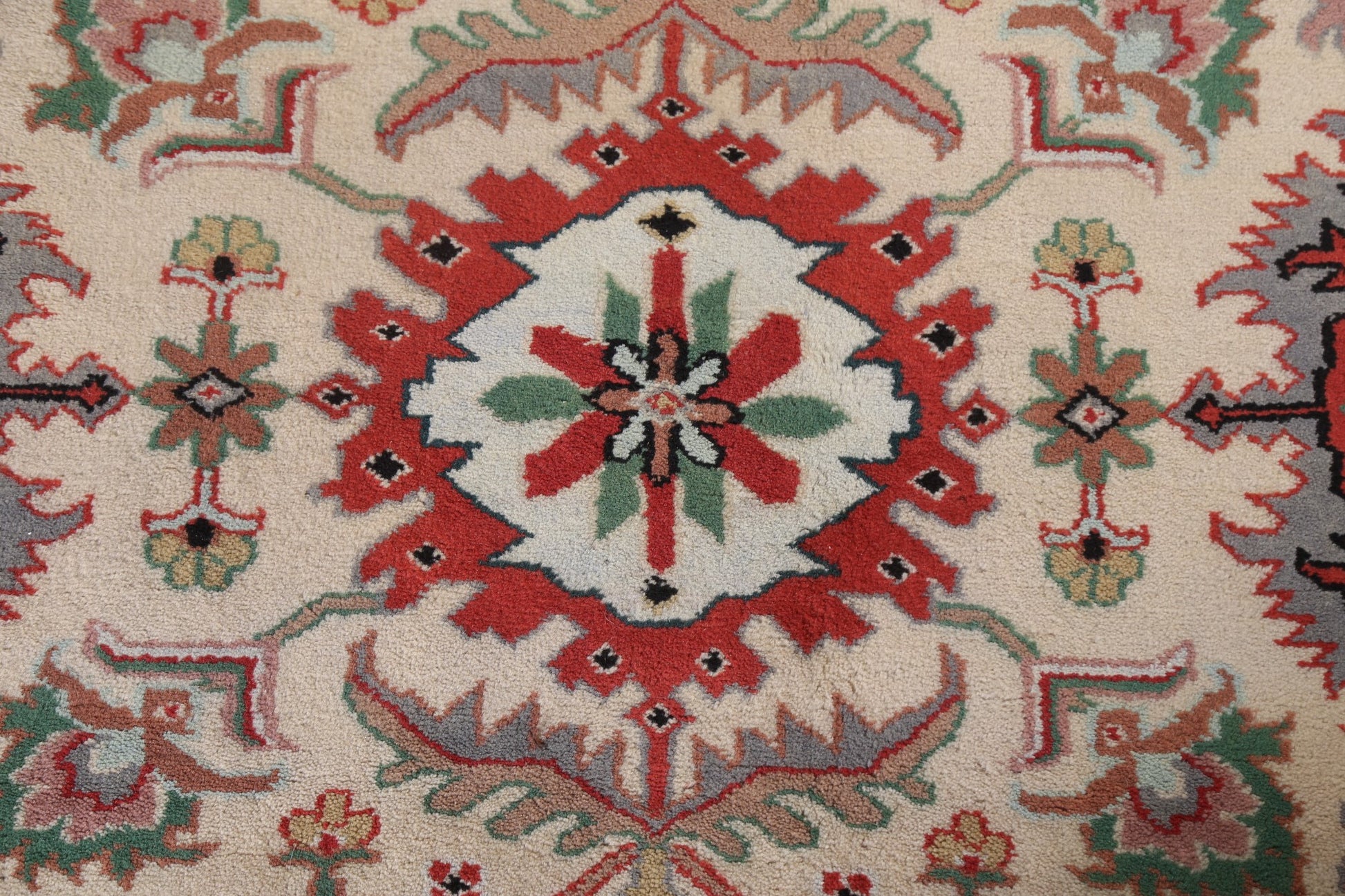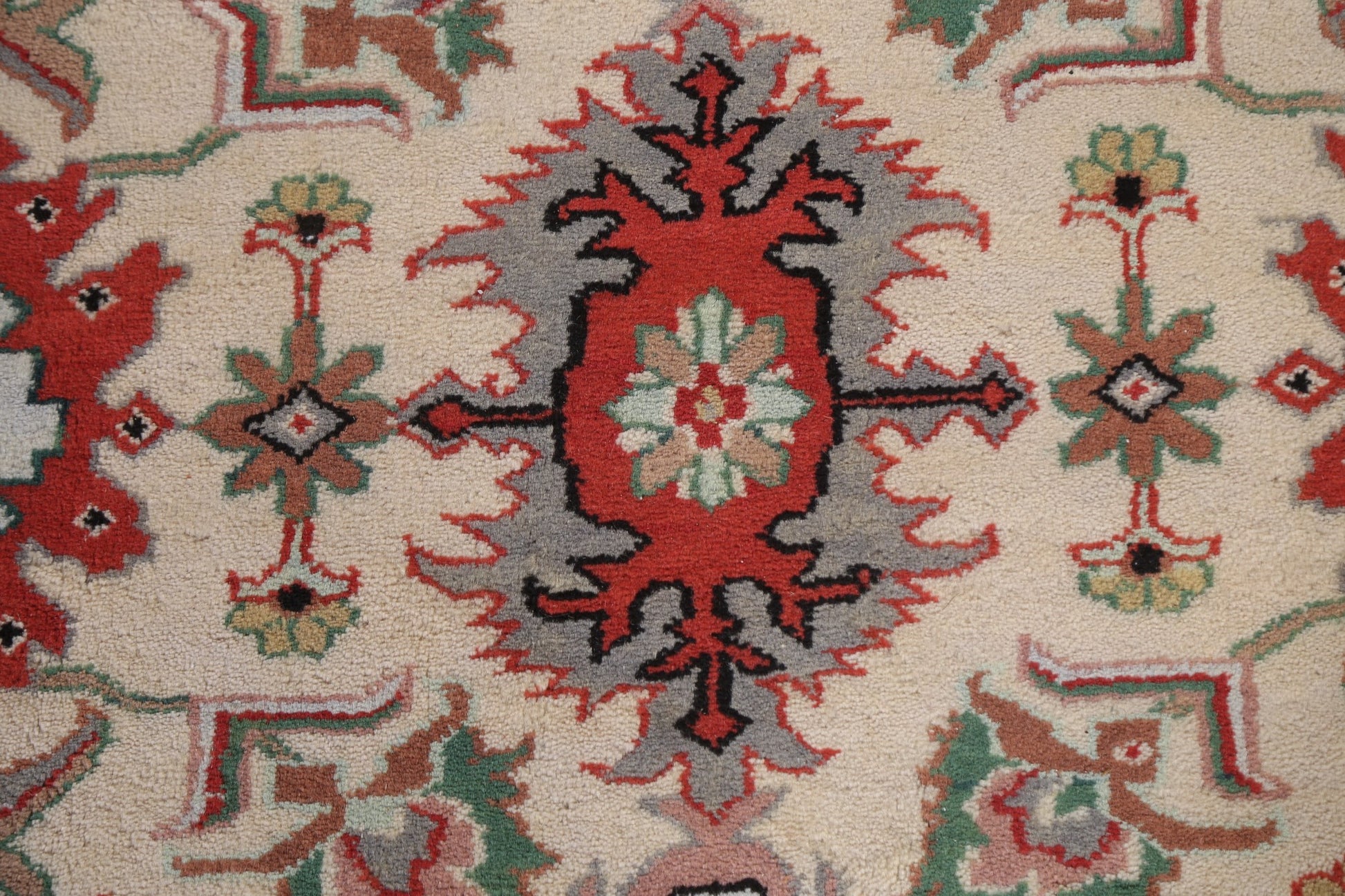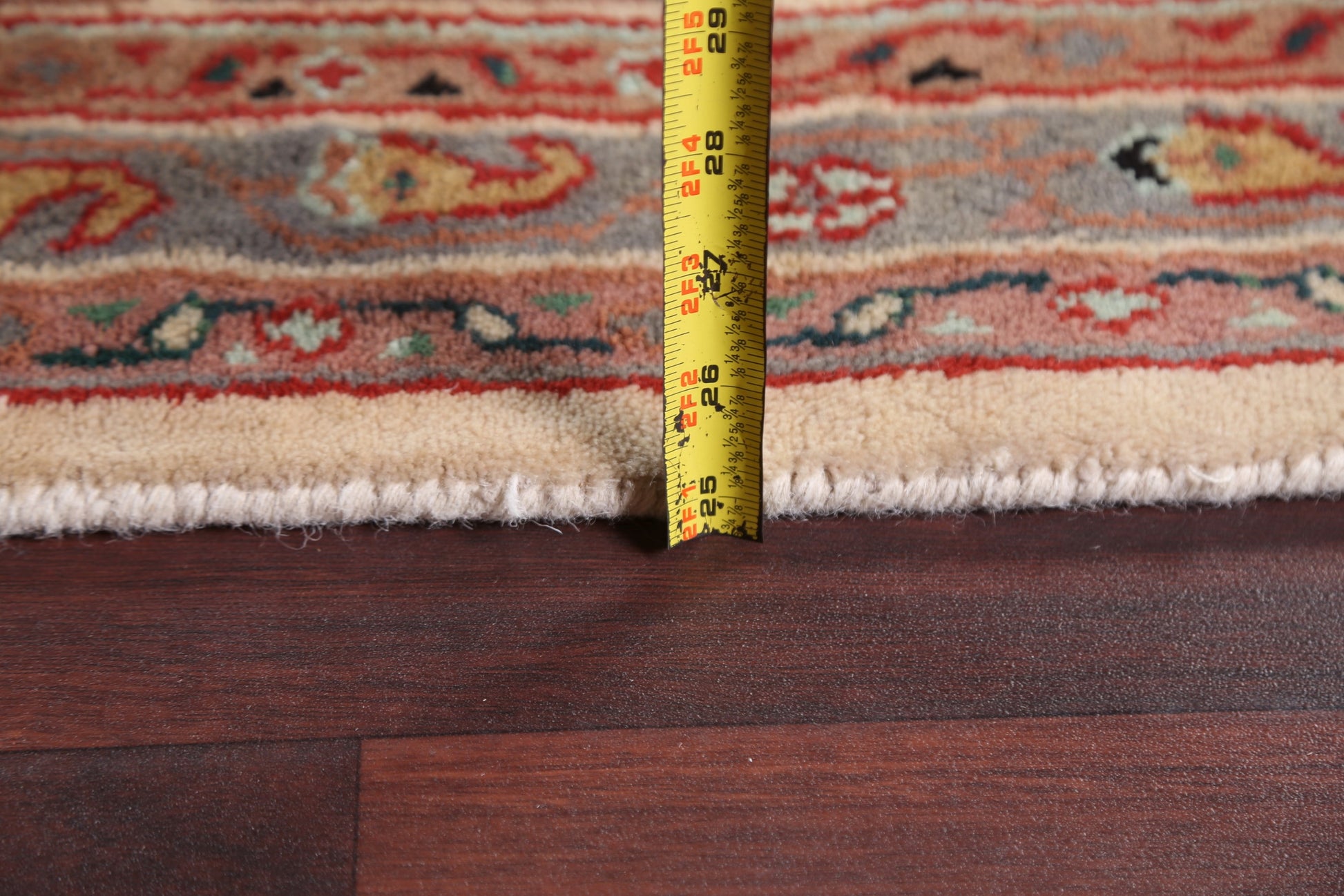 A Beautiful Genuine India Oushak rug is Hand Knotted by skillful weavers in India with 100% Wool Material. This rug is in New, First Quality condition. dimensions are 11' 3'' X 8' 6'' in foot and 343 X 259 in centimeter. the primary color is Beige & Ivories.
