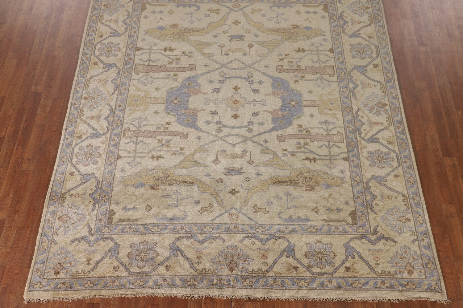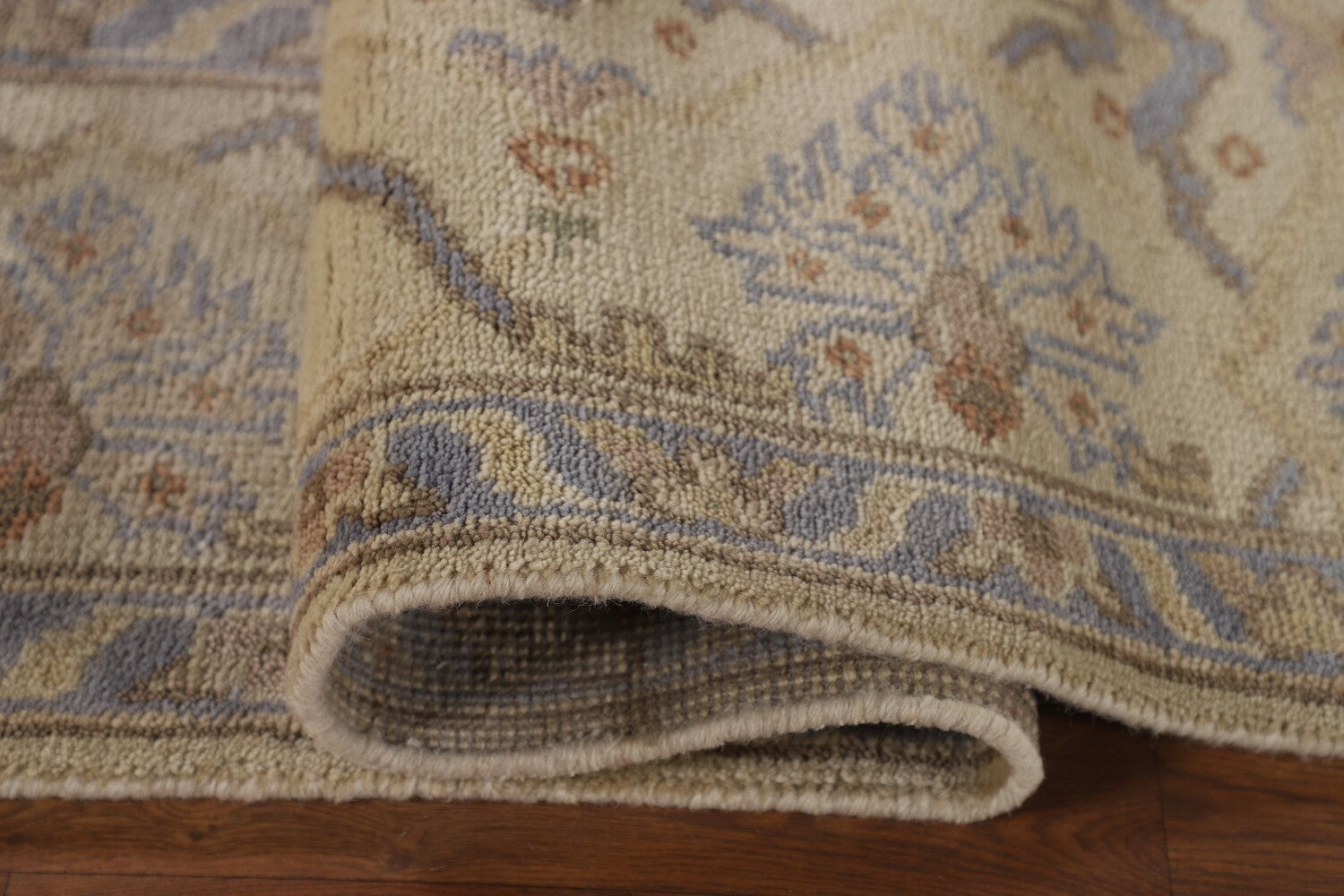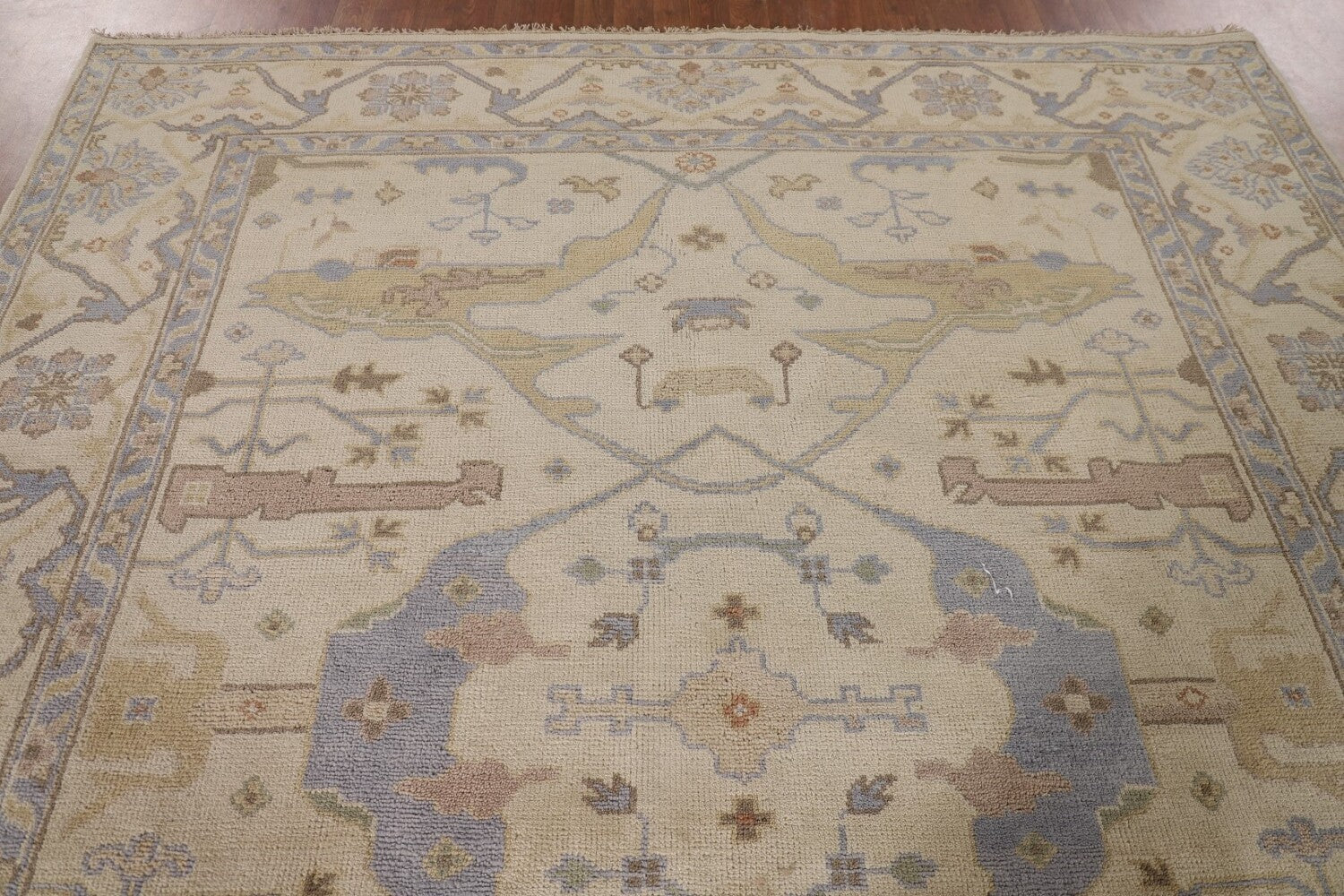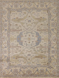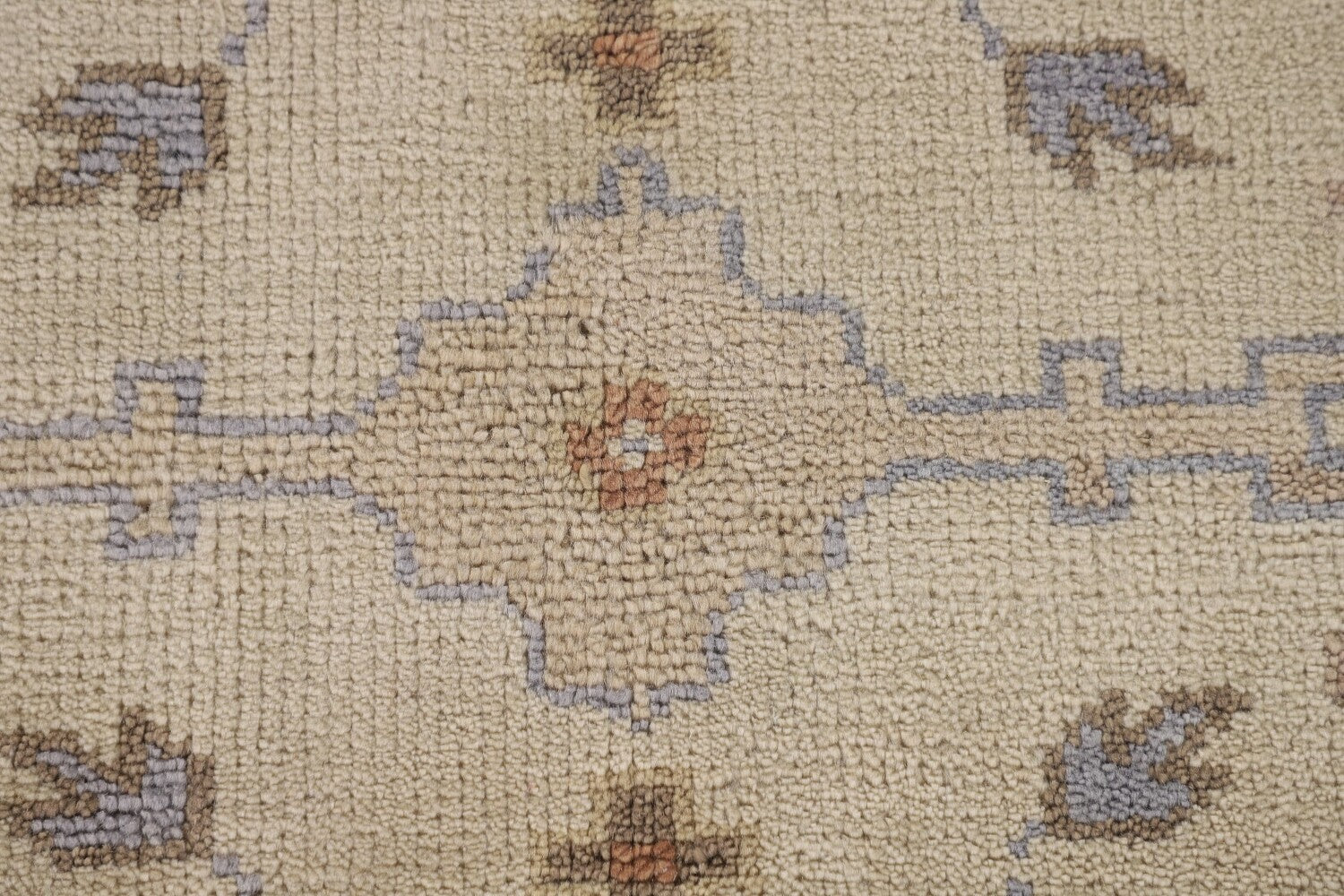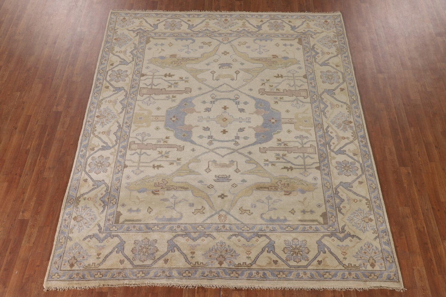 A Beautiful Genuine India Oushak rug is Hand Knotted by skillful weavers in India with 100% Wool Material. This rug is in New, First Quality condition. dimensions are 9' 0'' X 7' 11'' in foot and 274 X 241 in centimeter. the primary color is Beige & Ivories.
