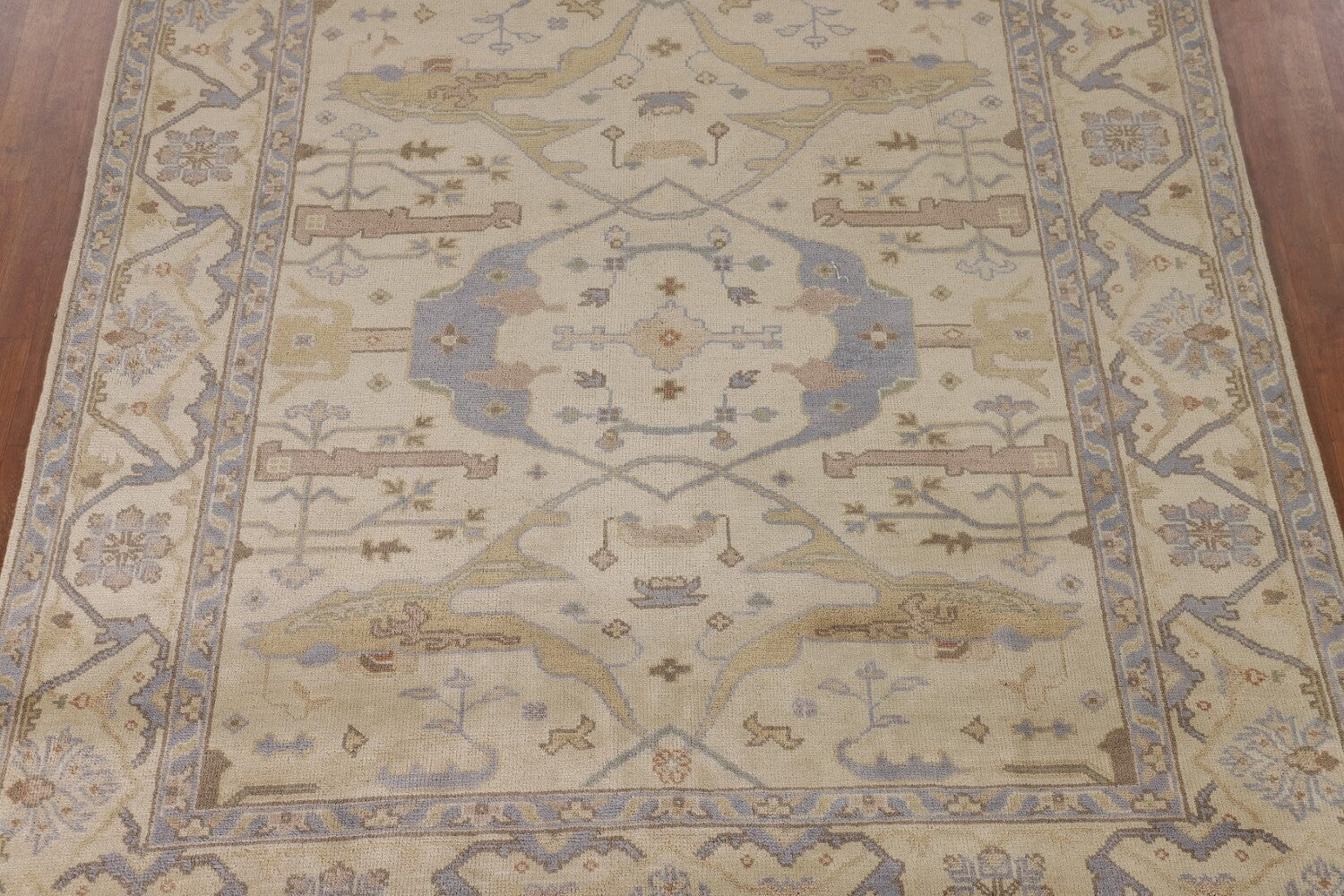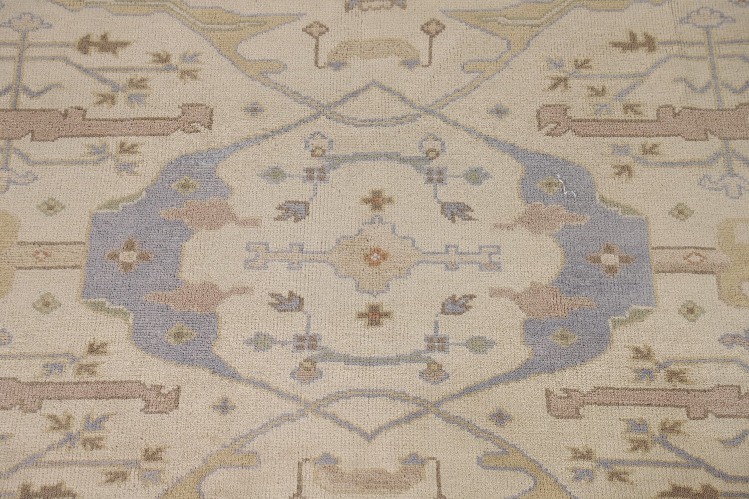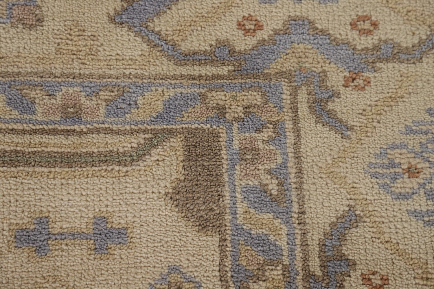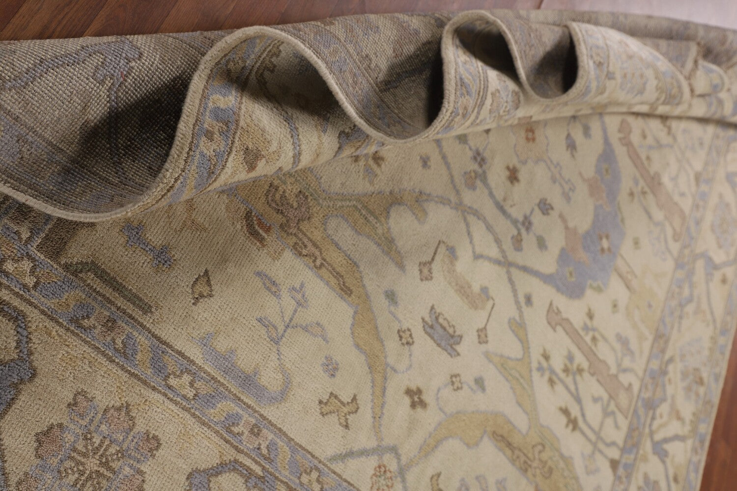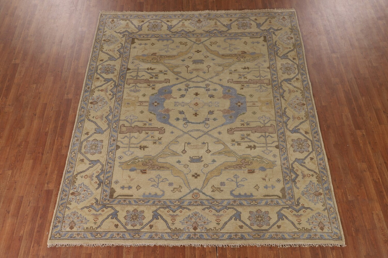 A Beautiful Genuine India Oushak rug is Hand Knotted by skillful weavers in India with 100% Wool Material. This rug is in New, First Quality condition. dimensions are 9' 0'' X 7' 11'' in foot and 274 X 241 in centimeter. the primary color is Beige & Ivories.
