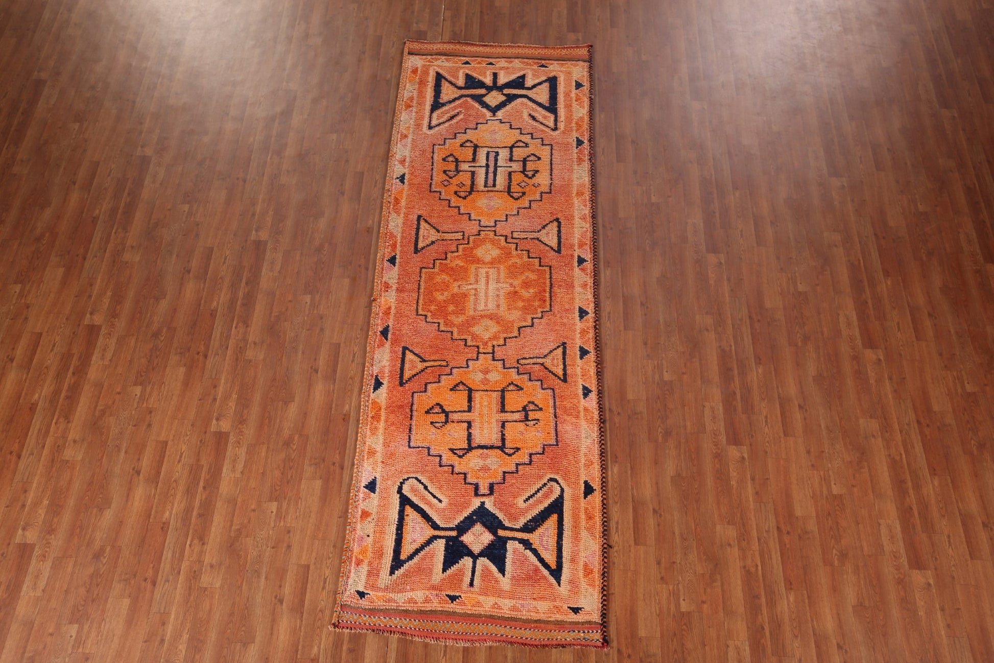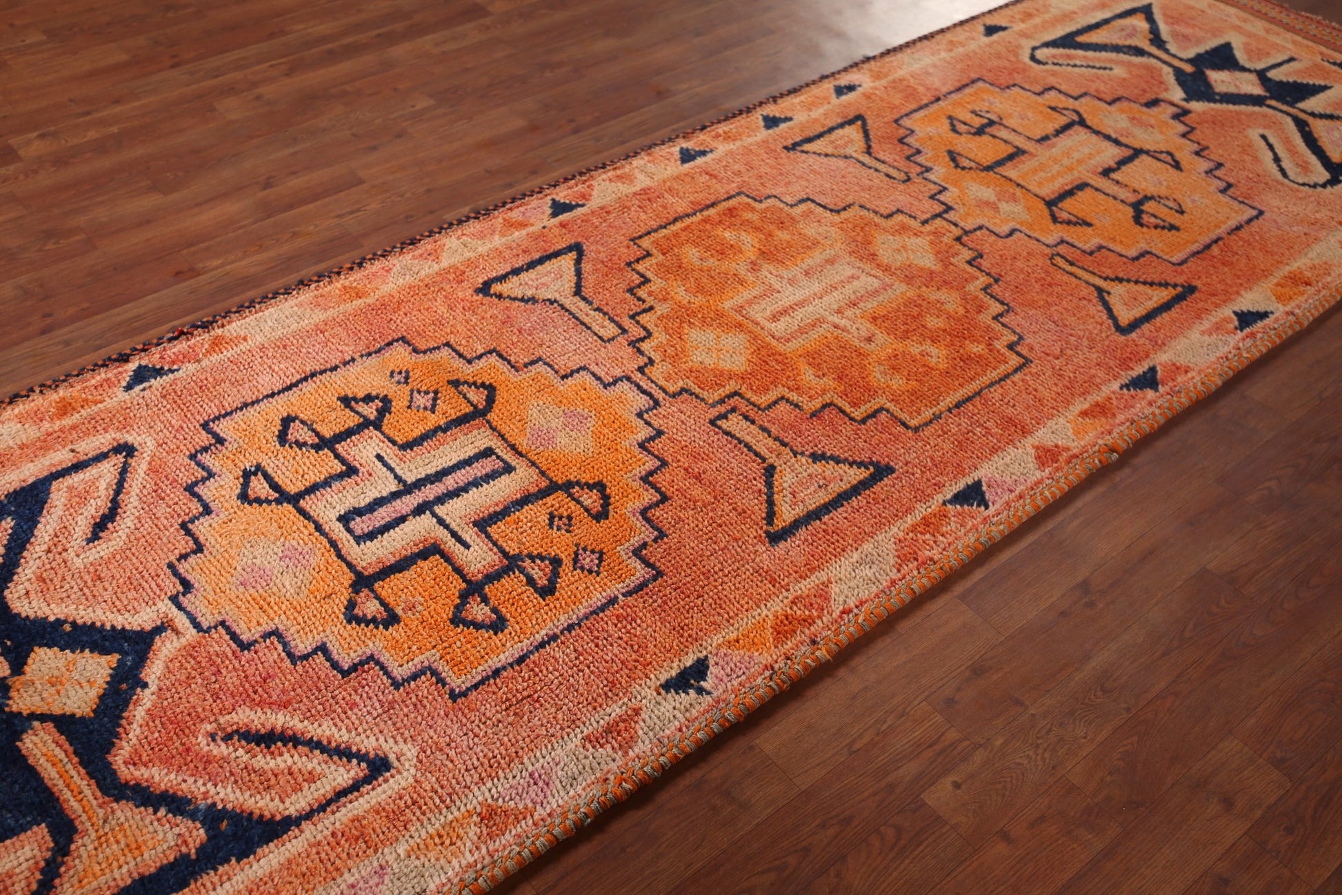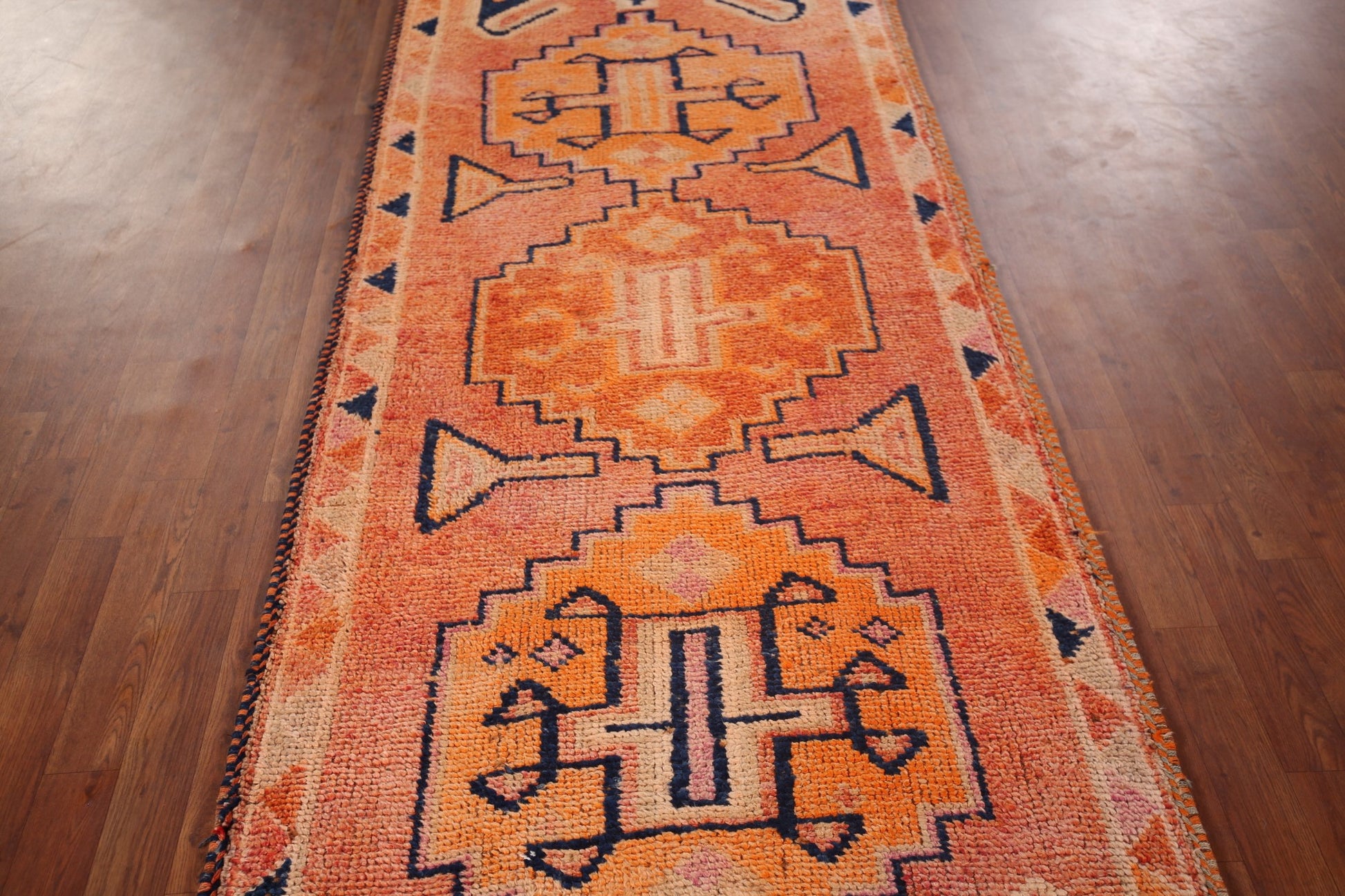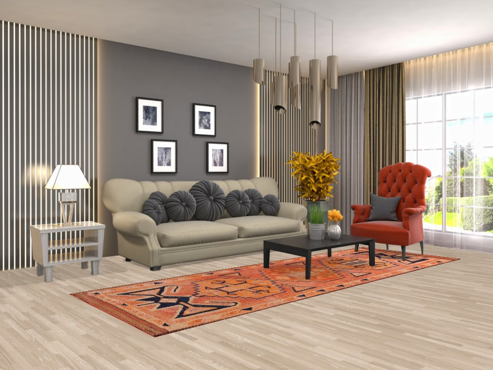A Beautiful Genuine Turkey Oushak rug is Hand Knotted by skillful weavers in Turkey with 100% Wool Material. This rug is in Very Good condition. dimensions are 10' 7'' X 3' 6'' in foot and 323 X 107 in centimeter. the primary color is Oranges & Rust.