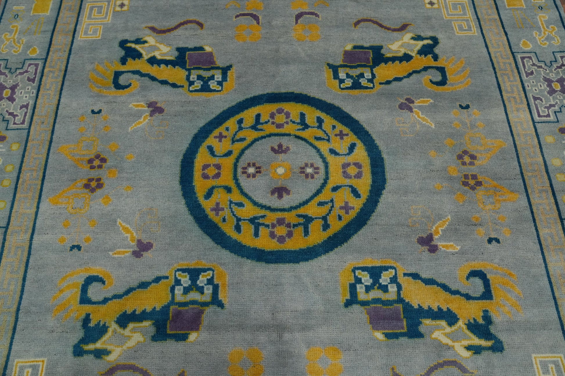 A Beautiful Genuine India Oushak rug is Hand Knotted by skillful weavers in India with 100% Wool Material. This rug is in New, First Quality condition. dimensions are 10' 2'' X 8' 3'' in foot and 310 X 251 in centimeter. the primary color is Greys & Charcoal.