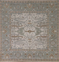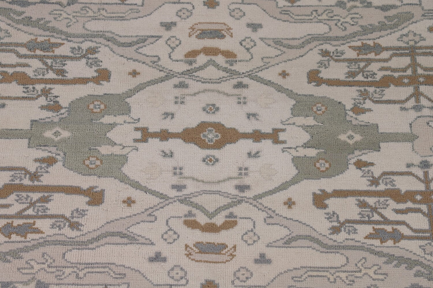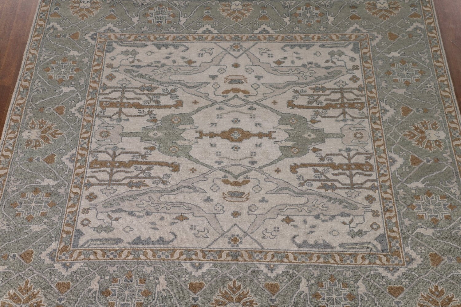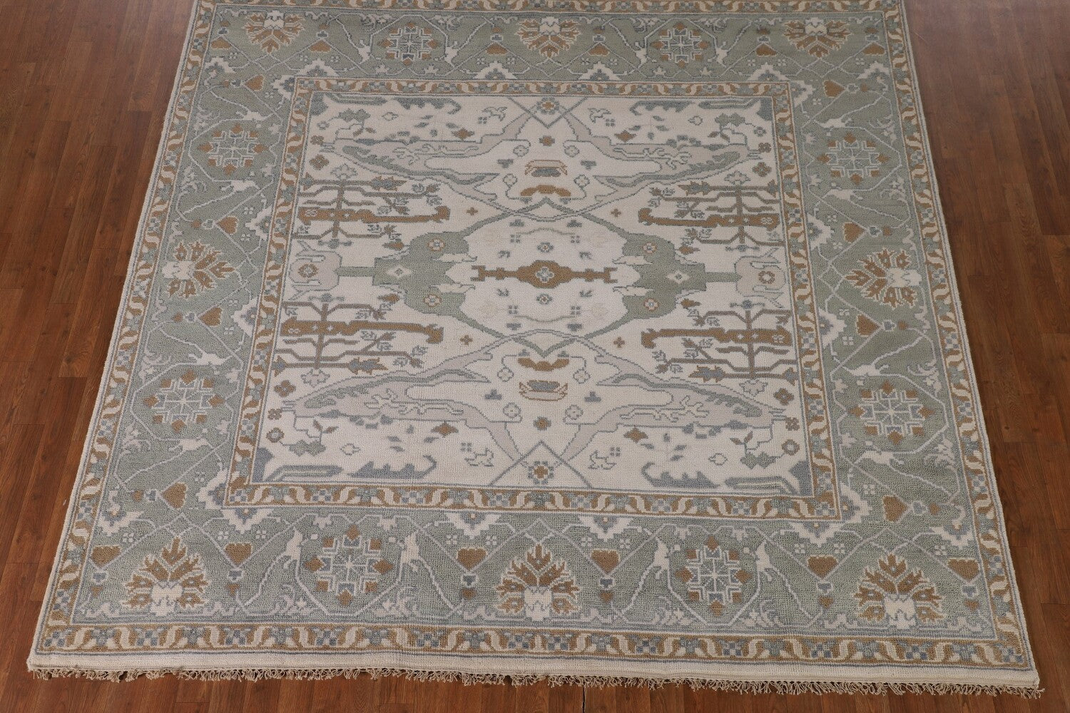 A Beautiful Genuine India Oushak rug is Hand Knotted by skillful weavers in India with 100% Wool Material. This rug is in New, First Quality condition. dimensions are 7' 9'' X 8' 2'' in foot and 236 X 249 in centimeter. the primary color is Beige & Ivories.