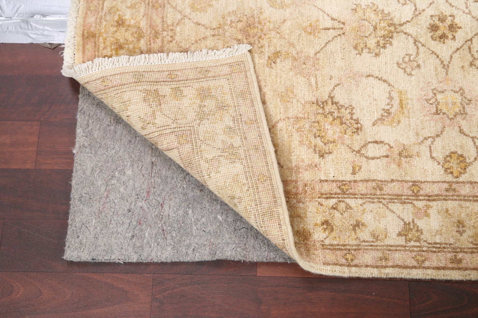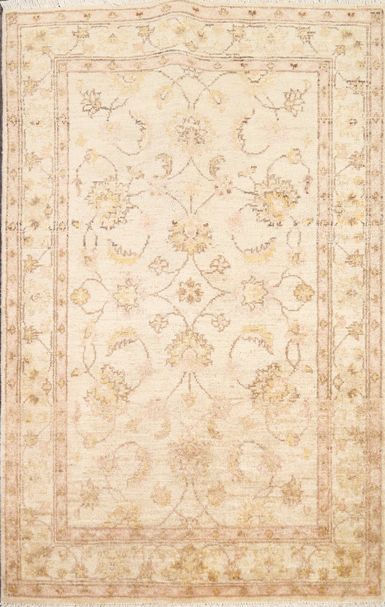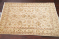 A Beautiful Genuine Turkey Oushak rug is Hand Knotted by skillful weavers in Turkey with 100% Wool Material. This rug is in New, First Quality condition. dimensions are 3' 11'' X 2' 7'' in foot and 119 X 79 in centimeter. the primary color is Beige & Ivories.