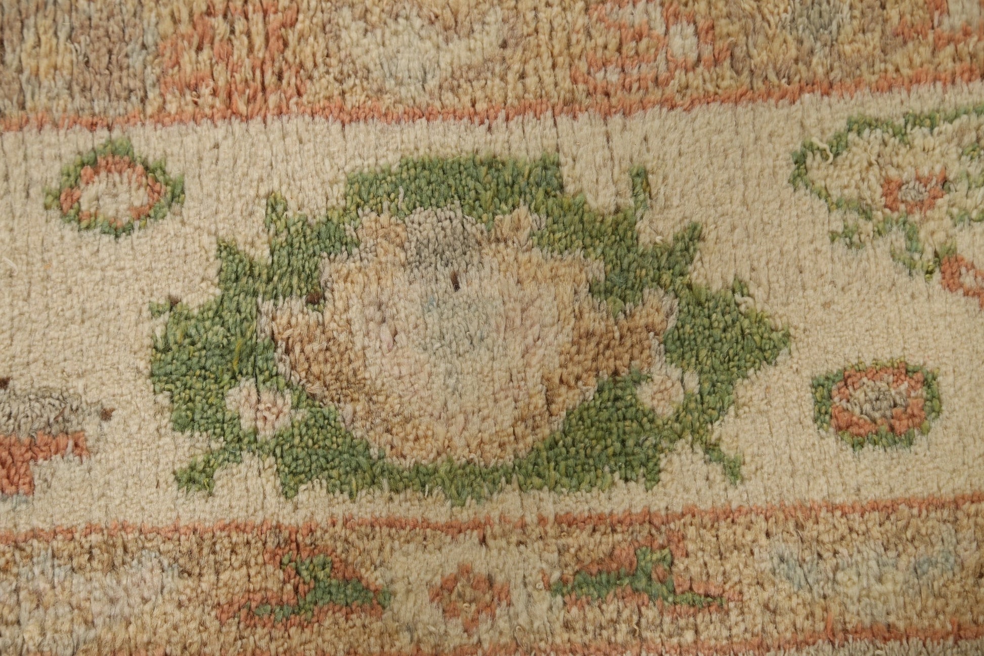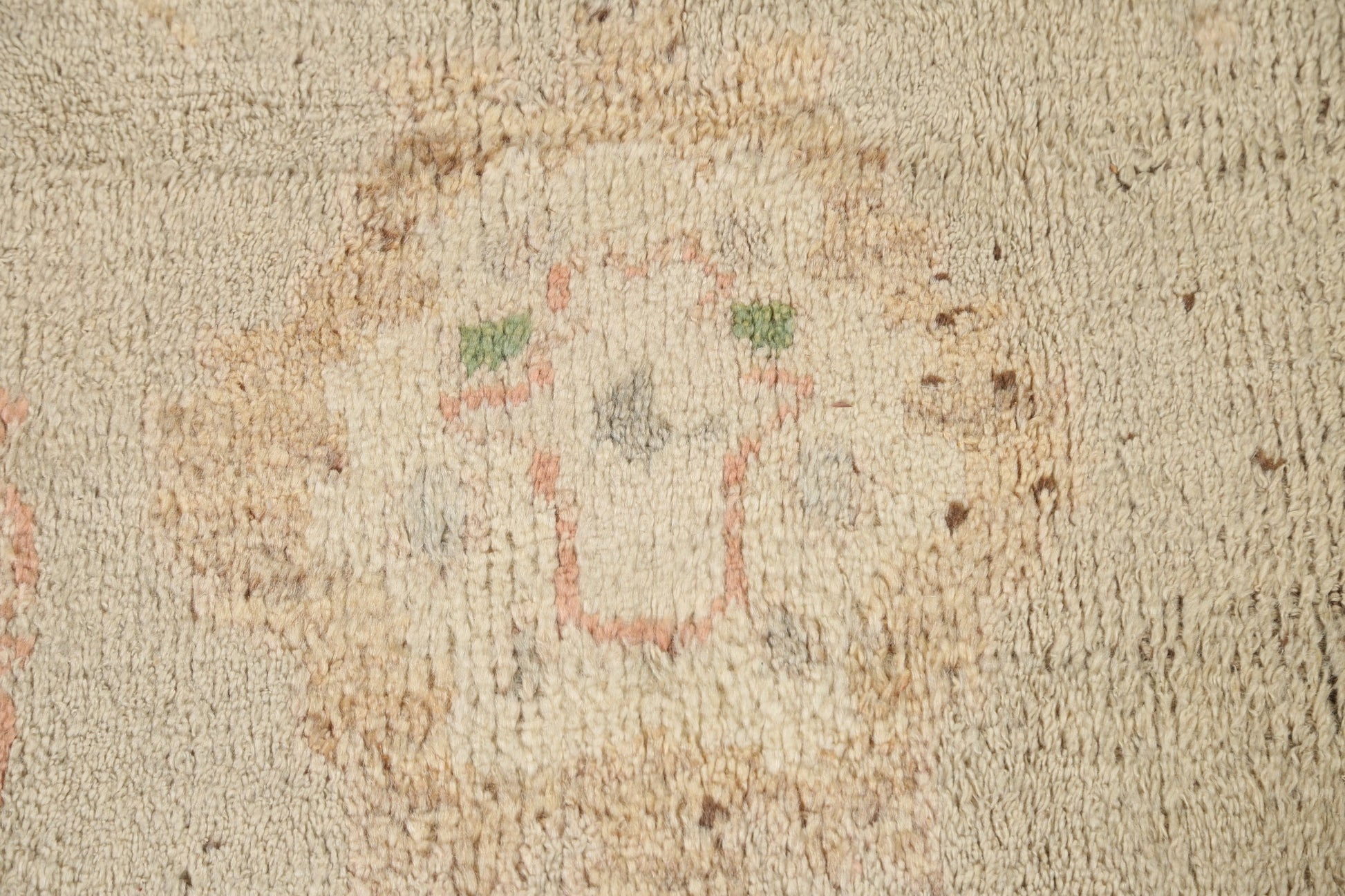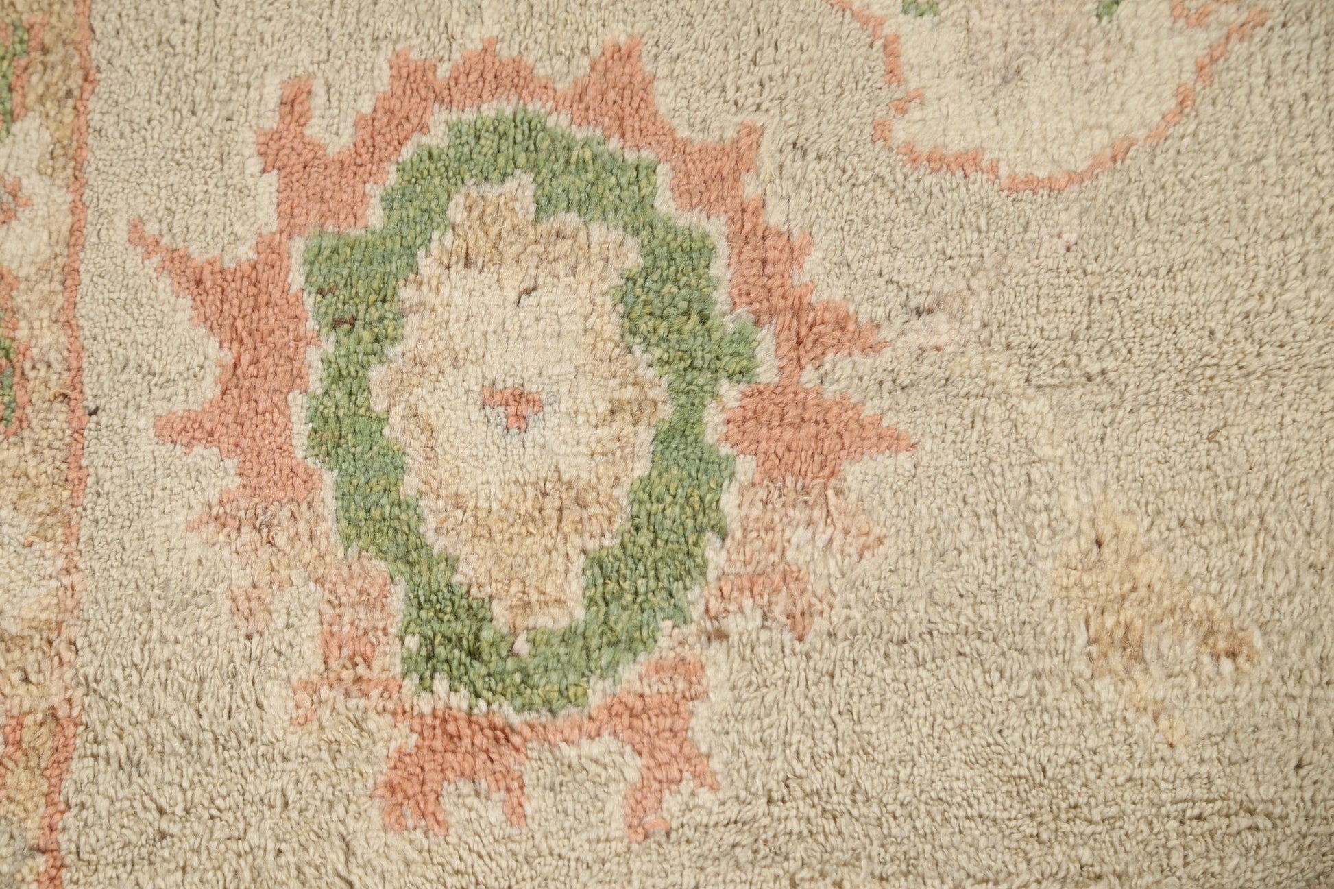 A Beautiful Genuine Turkey Oushak rug is Hand Knotted by skillful weavers in Turkey with 100% Wool Material. This rug is in condition. dimensions are 9' 0'' X 6' 5'' in foot and 274 X 196 in centimeter. the primary color is Beige & Ivories.