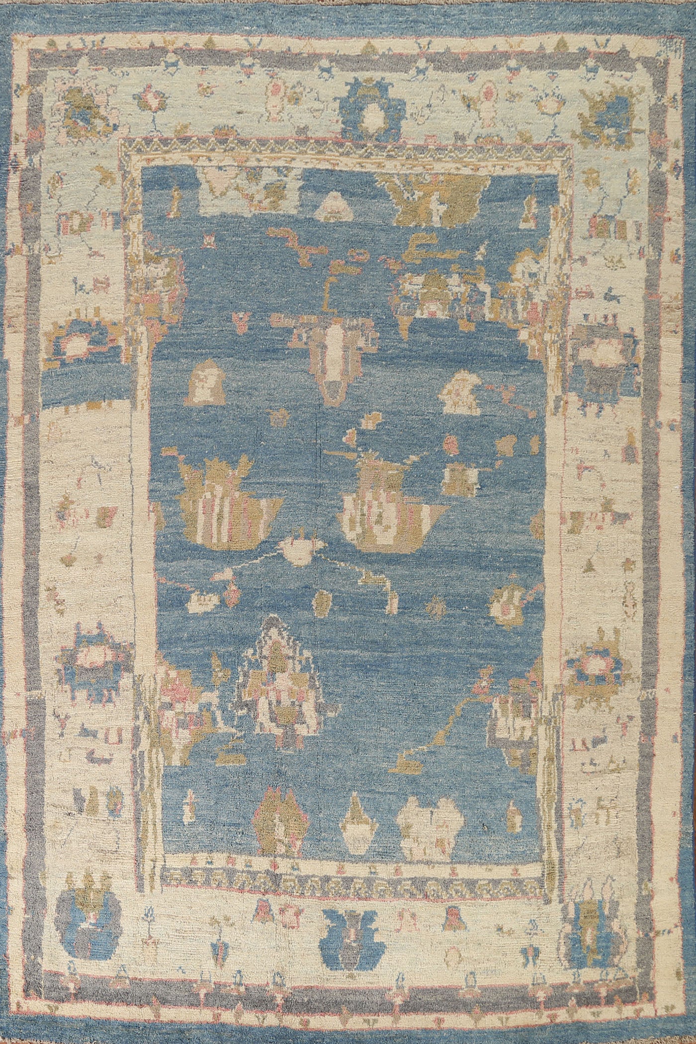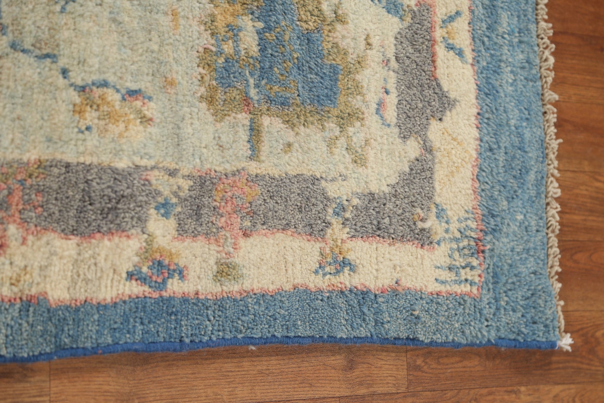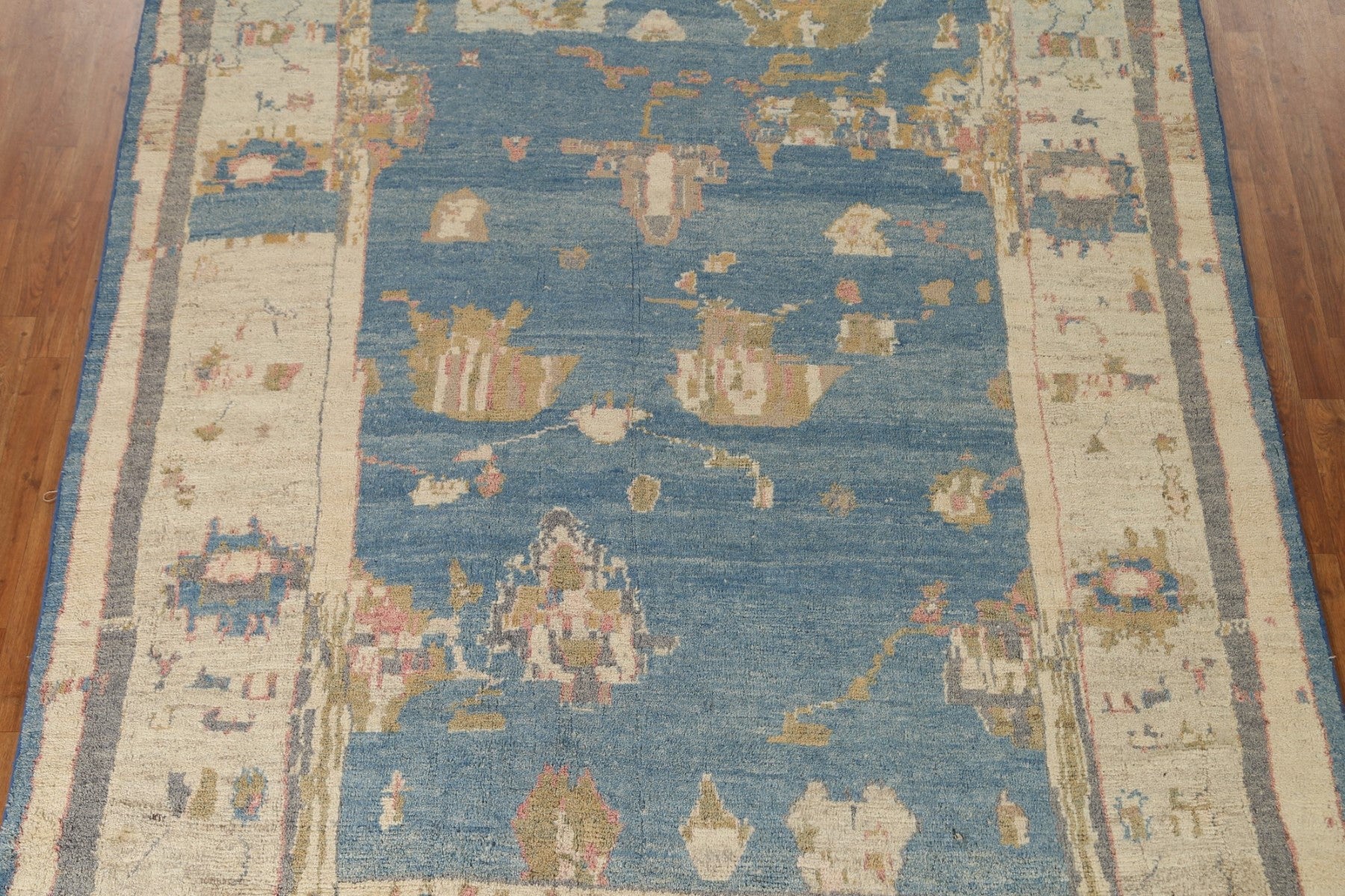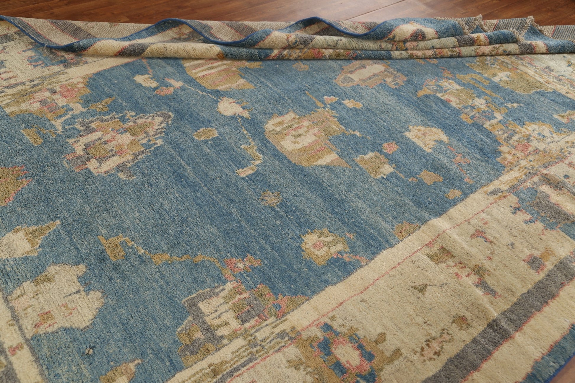 A Beautiful Genuine Turkey Oushak rug is Hand Knotted by skillful weavers in Turkey with 100% Wool Material. This rug is in condition. dimensions are 11' 0'' X 7' 10'' in foot and 335 X 239 in centimeter. the primary color is Navy Blue & Blues.