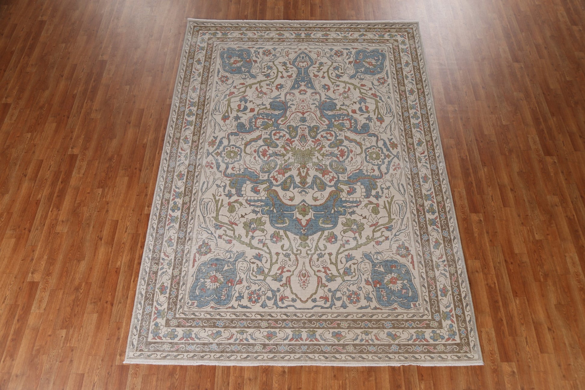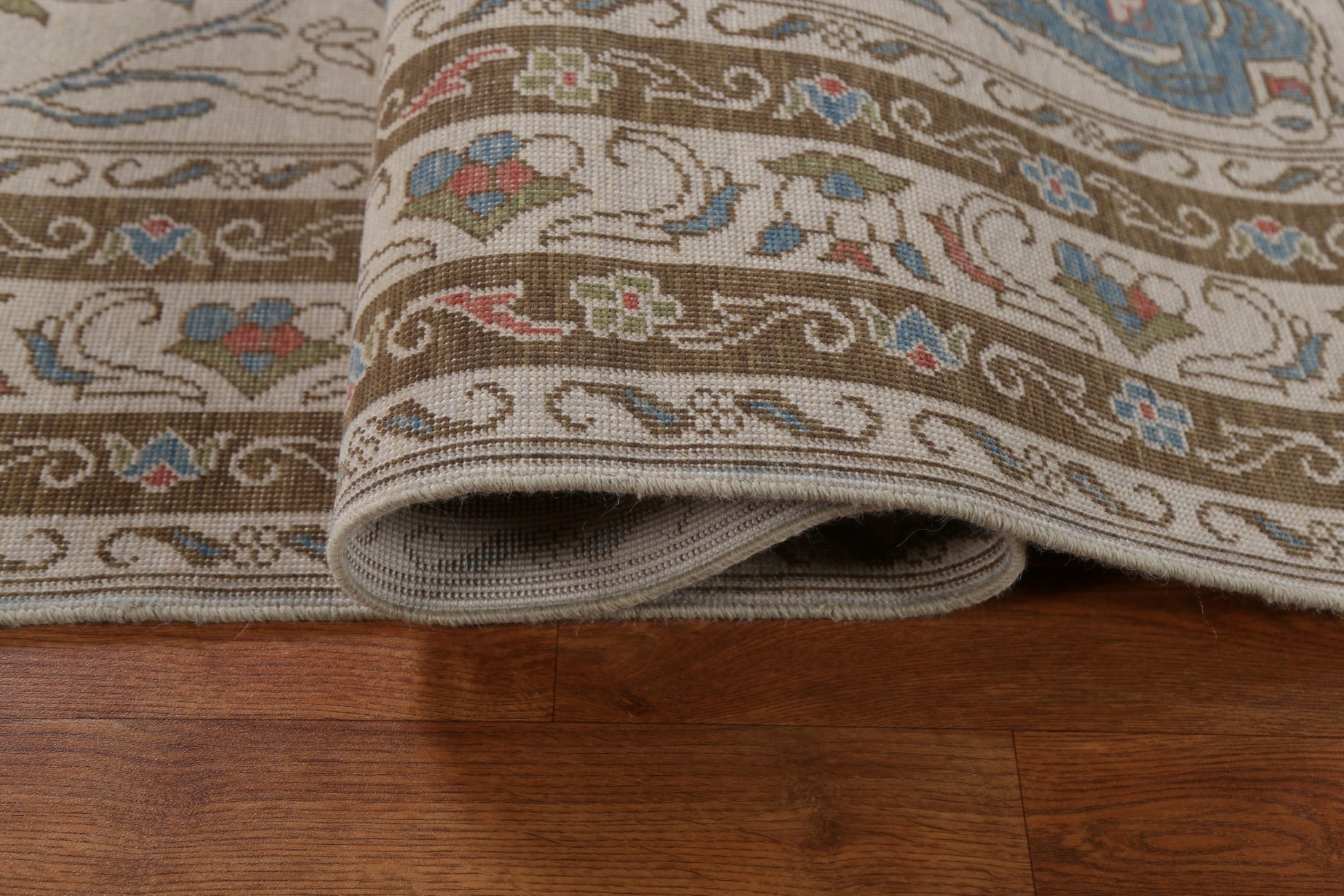 A Beautiful Genuine Turkey Oushak rug is Hand Knotted by skillful weavers in Turkey with 100% Wool Material. This rug is in New, First Quality condition. dimensions are 9' 9'' X 7' 0'' in foot and 297 X 213 in centimeter. the primary color is Beige & Ivories.