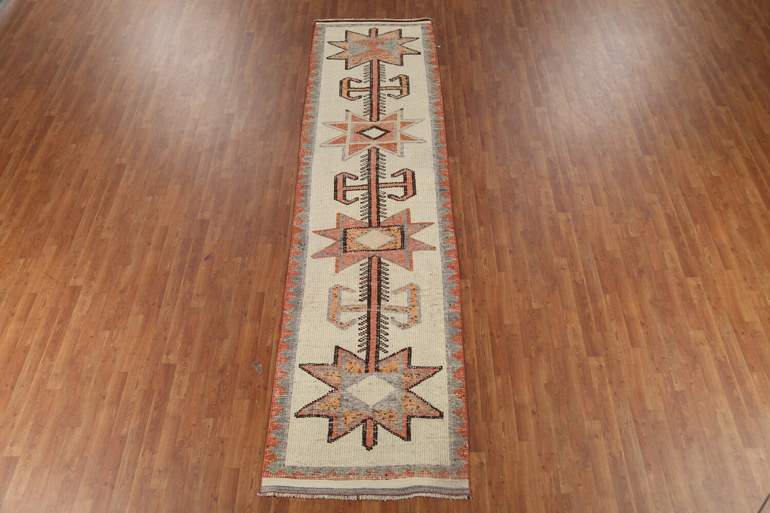 A Beautiful Genuine Turkey Oushak rug is Hand Knotted by skillful weavers in Turkey with 100% Wool Material. This rug is in Excellent condition. dimensions are 12' 8'' X 3' 4'' in foot and 386 X 102 in centimeter. the primary color is Beige & Ivories.