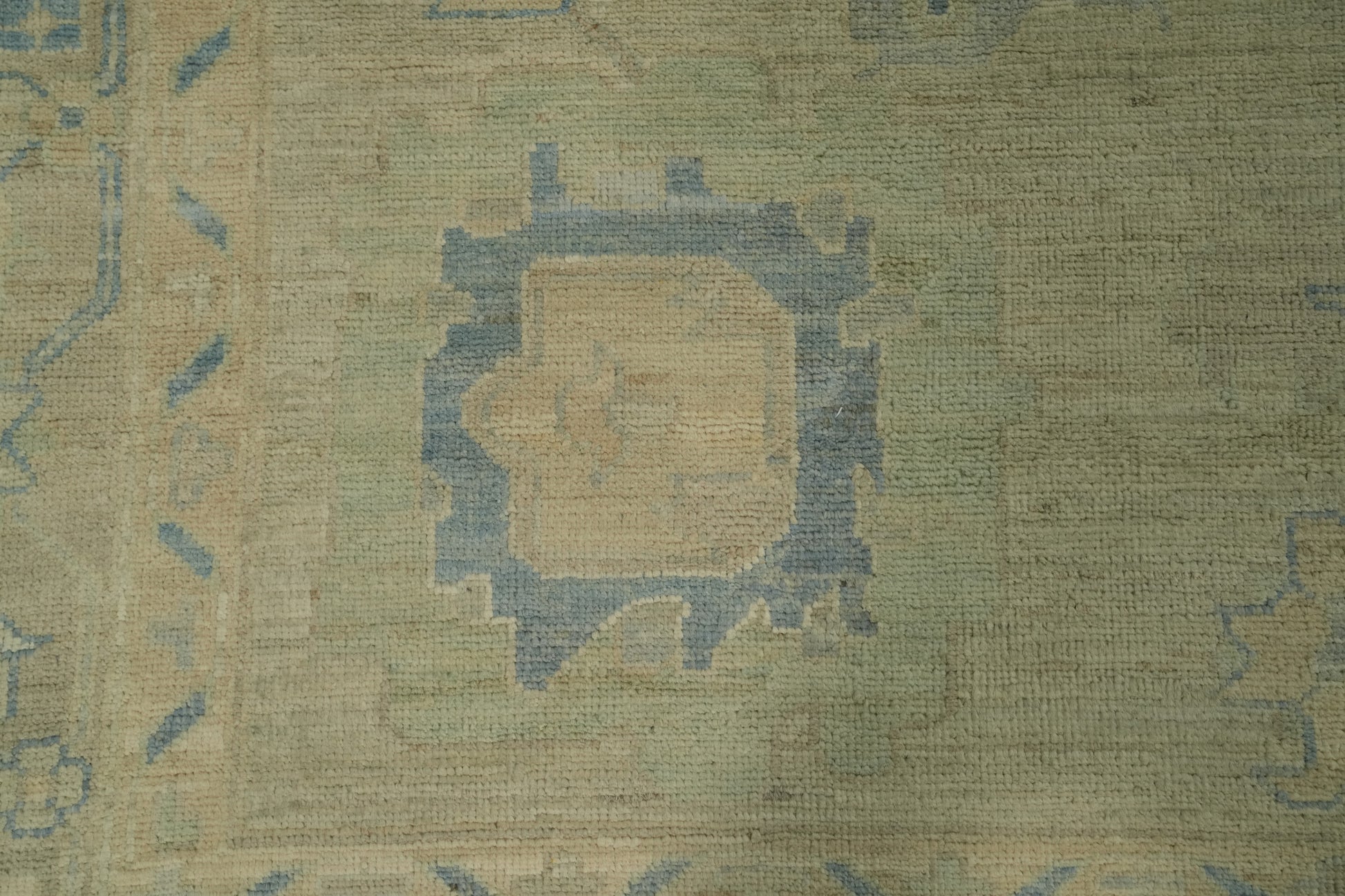 A Beautiful Genuine Turkey Oushak rug is Hand Knotted by skillful weavers in Turkey with 100% Wool Material. This rug is in New, First Quality condition. dimensions are 11' 7'' X 9' 1'' in foot and 353 X 277 in centimeter. the primary color is Green.