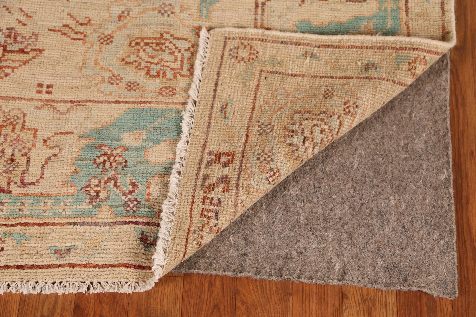 A Beautiful Genuine Turkey Oushak rug is Hand Knotted by skillful weavers in Turkey with 100% Wool Material. This rug is in New, First Quality condition. dimensions are 6' 8'' X 5' 6'' in foot and  203 X 168 in centimeter. the primary color is Beige & Ivories.