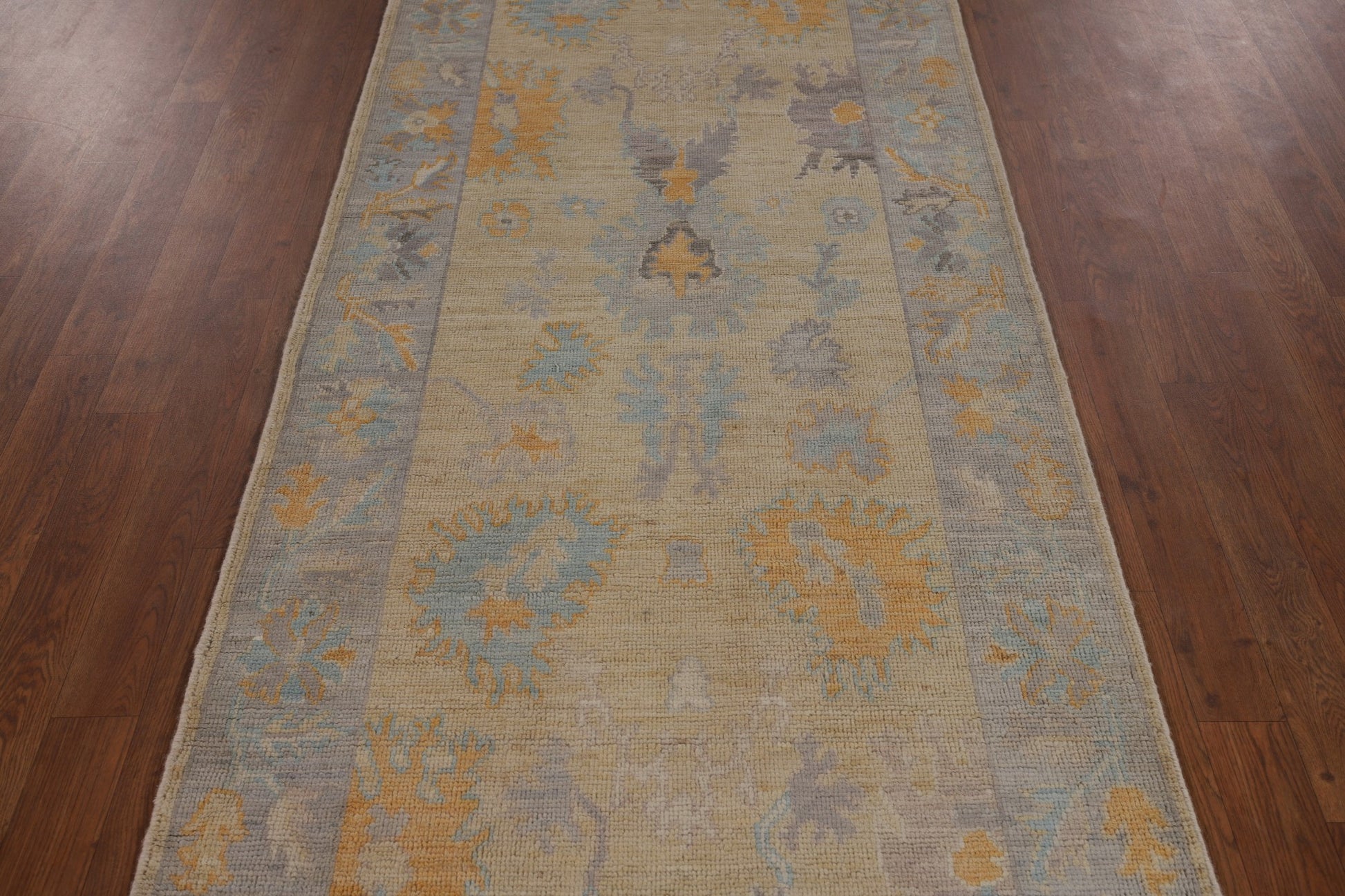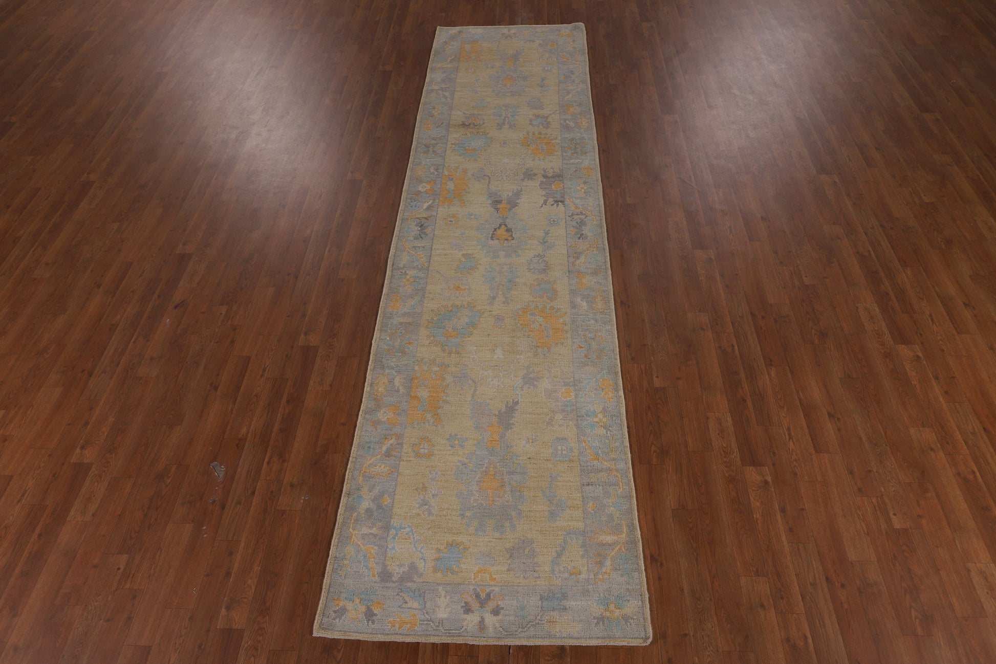 Handmade Wool Oushak Vegetable Dye Runner Rug 3x12