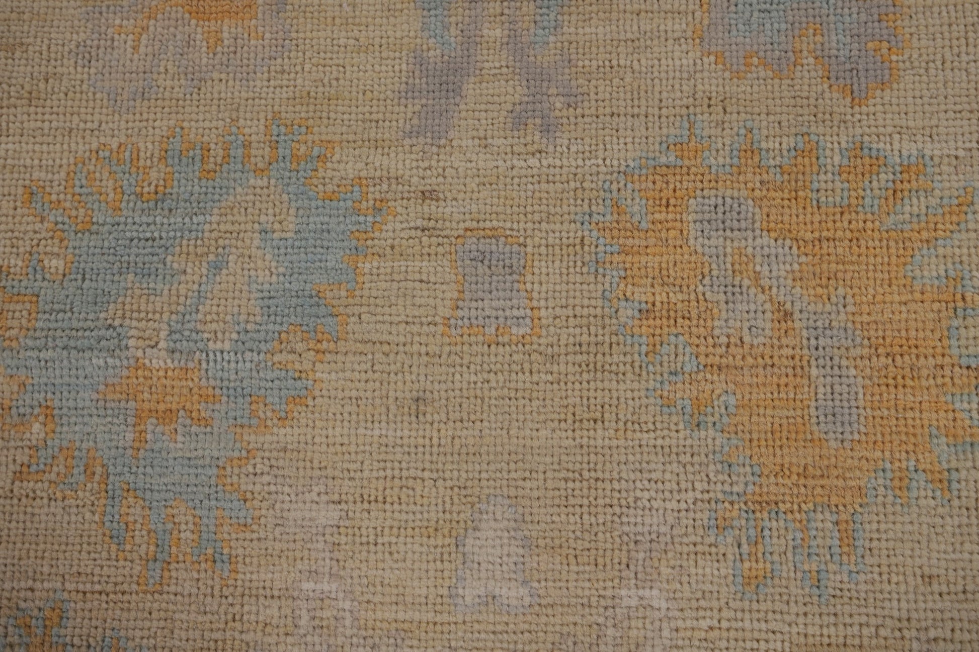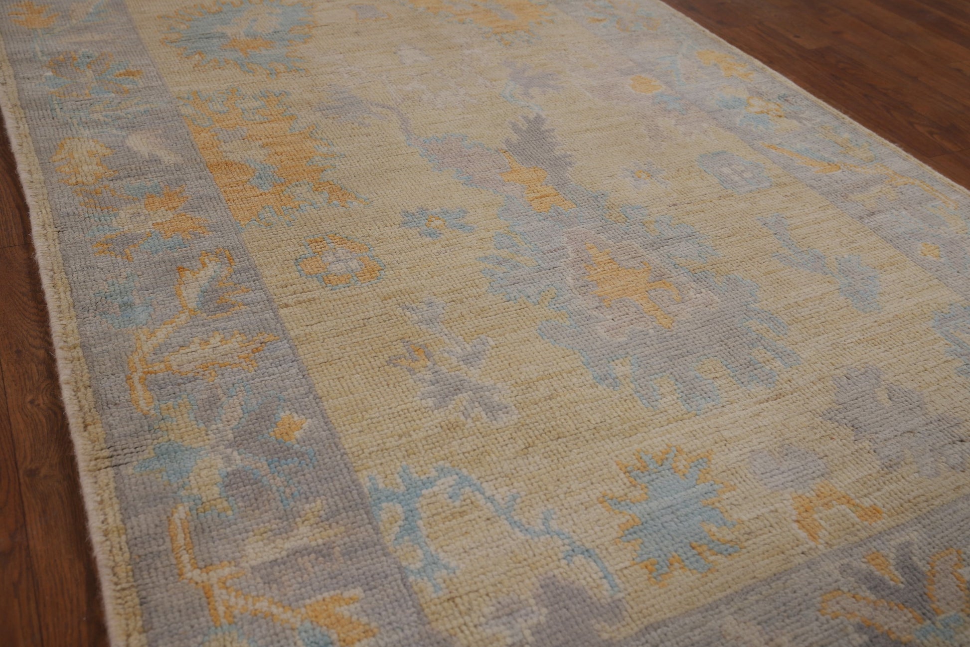 A Beautiful Genuine Turkey Oushak rug is Hand Knotted by skillful weavers in Turkey with 100% Wool Material. This rug is in New, First Quality condition. dimensions are 11' 6'' X 3' 1'' in foot and 351 X 94 in centimeter. the primary color is Yellow & Gold.