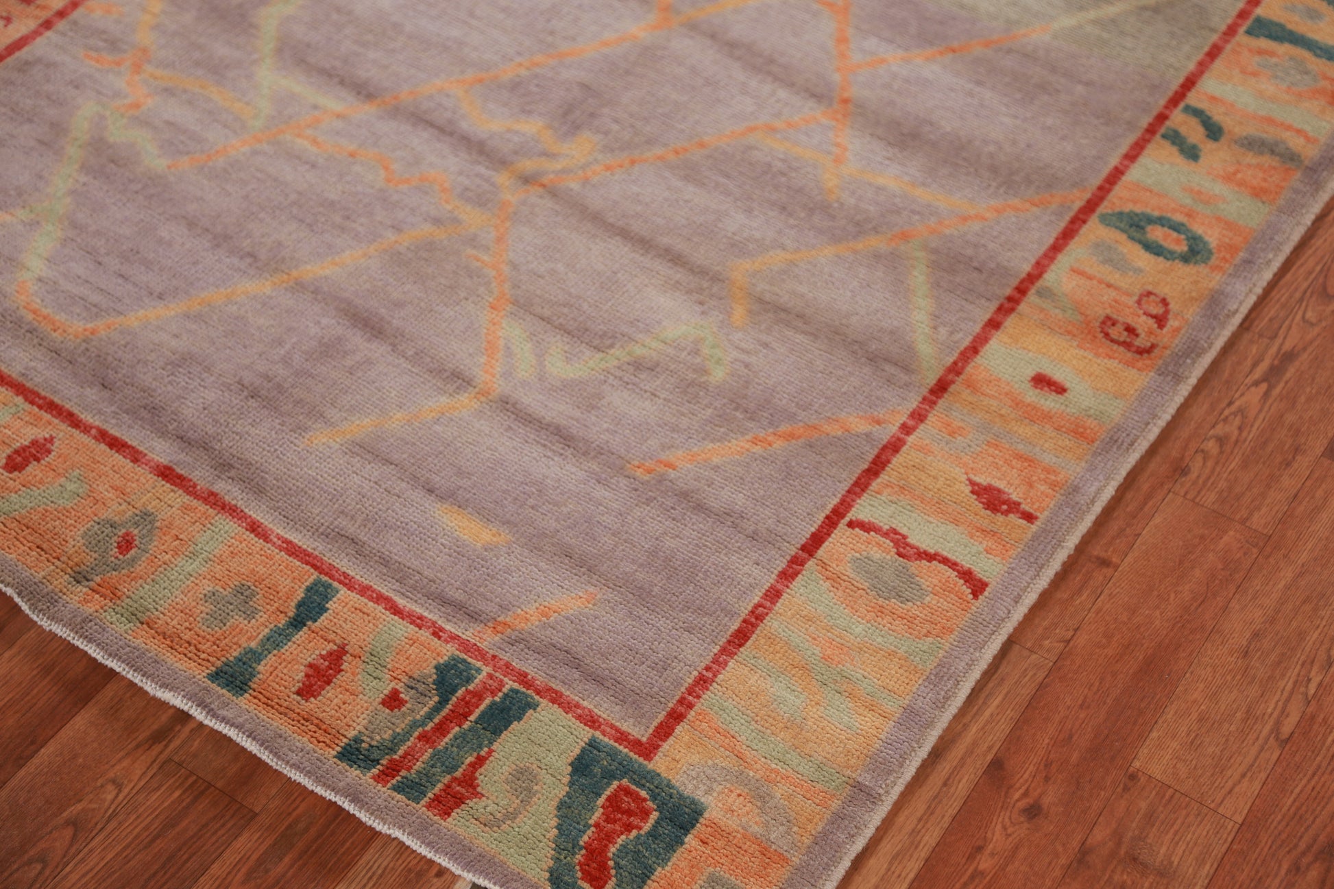 A Beautiful Genuine Turkey Oushak rug is Hand Knotted by skillful weavers in Turkey with 100% Wool Material. This rug is in New, First Quality condition. dimensions are 6' 11'' X 4' 4'' in foot and 211 X 132 in centimeter. the primary color is Purples.