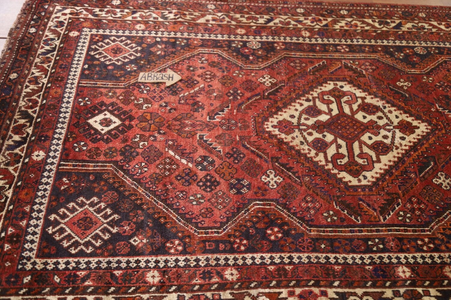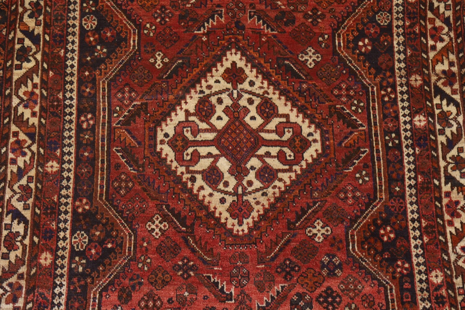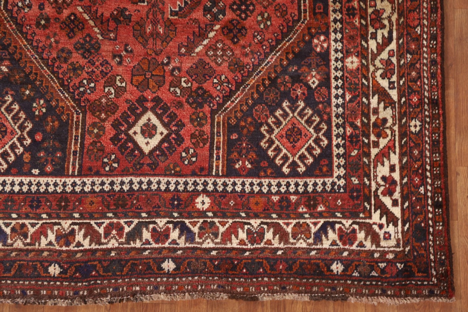 A Beautiful Genuine Persia ( Persia ) Qashqai rug is Hand Knotted by skillful weavers in Persia ( Persia ) with 100% Wool Material. This rug is in Very Good (Abrash) condition. dimensions are 8' 6'' X 5' 3'' in foot and 259 X 160 in centimeter. the primary color is Red.