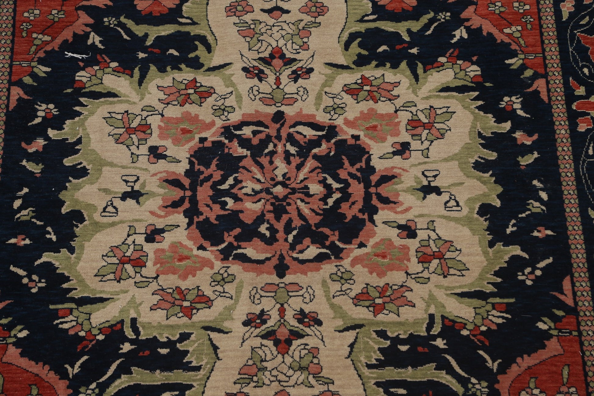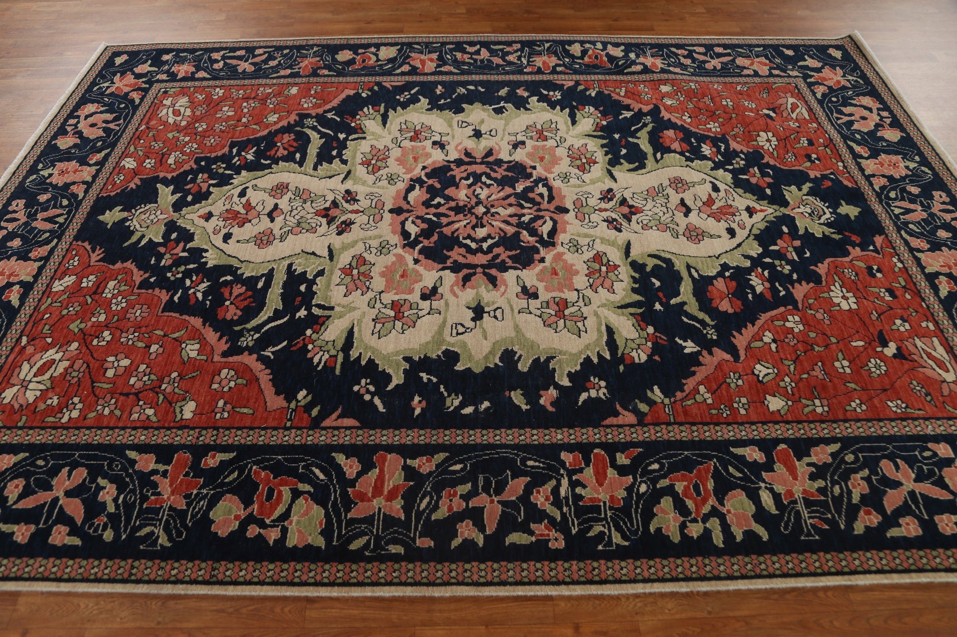 A Beautiful Genuine Turkey Sarouk (Farahan) rug is Hand Knotted by skillful weavers in Turkey with 100% Wool Material. This rug is in New, First Quality condition. dimensions are 9' 9'' X 7' 0'' in foot and 297 X 213 in centimeter. the primary color is Navy Blue & Blues.