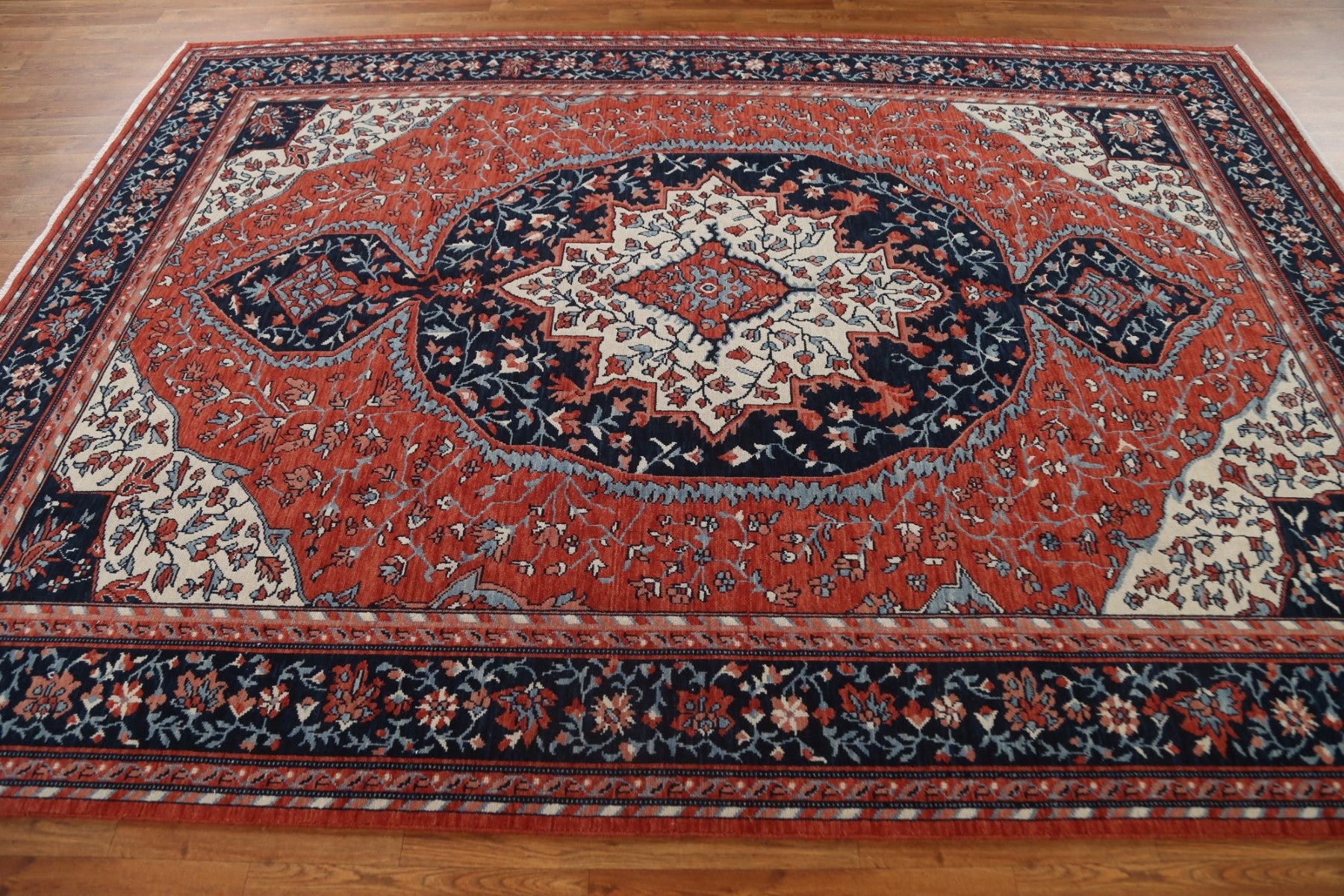 A Beautiful Genuine Turkey Sarouk (Farahan) rug is Hand Knotted by skillful weavers in Turkey with 100% Wool Material. This rug is in New, First Quality condition. dimensions are 9' 9'' X 7' 0'' in foot and 297 X 213 in centimeter. the primary color is Red.