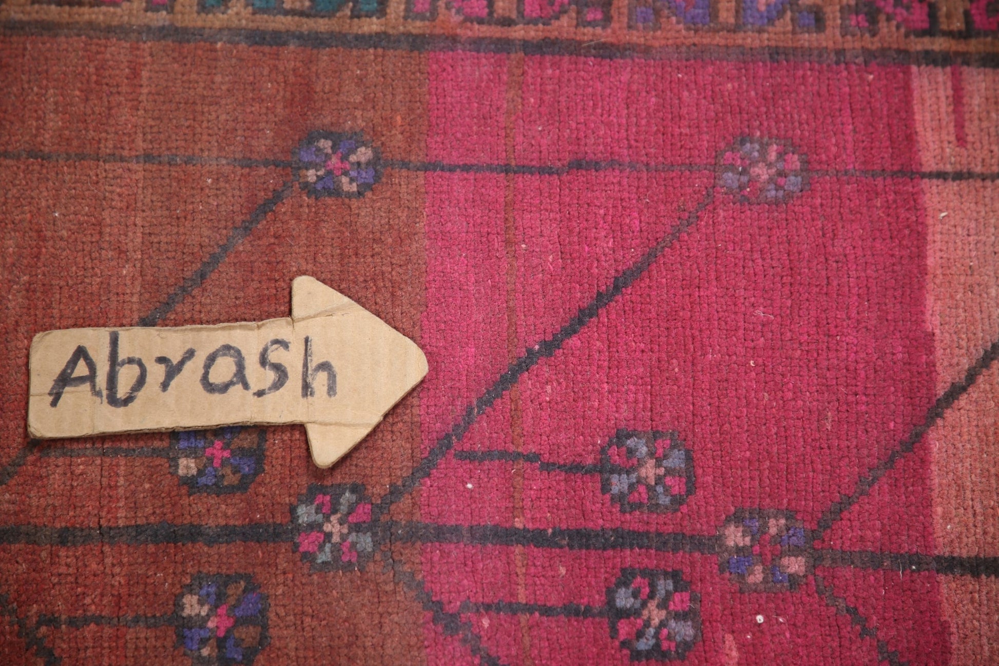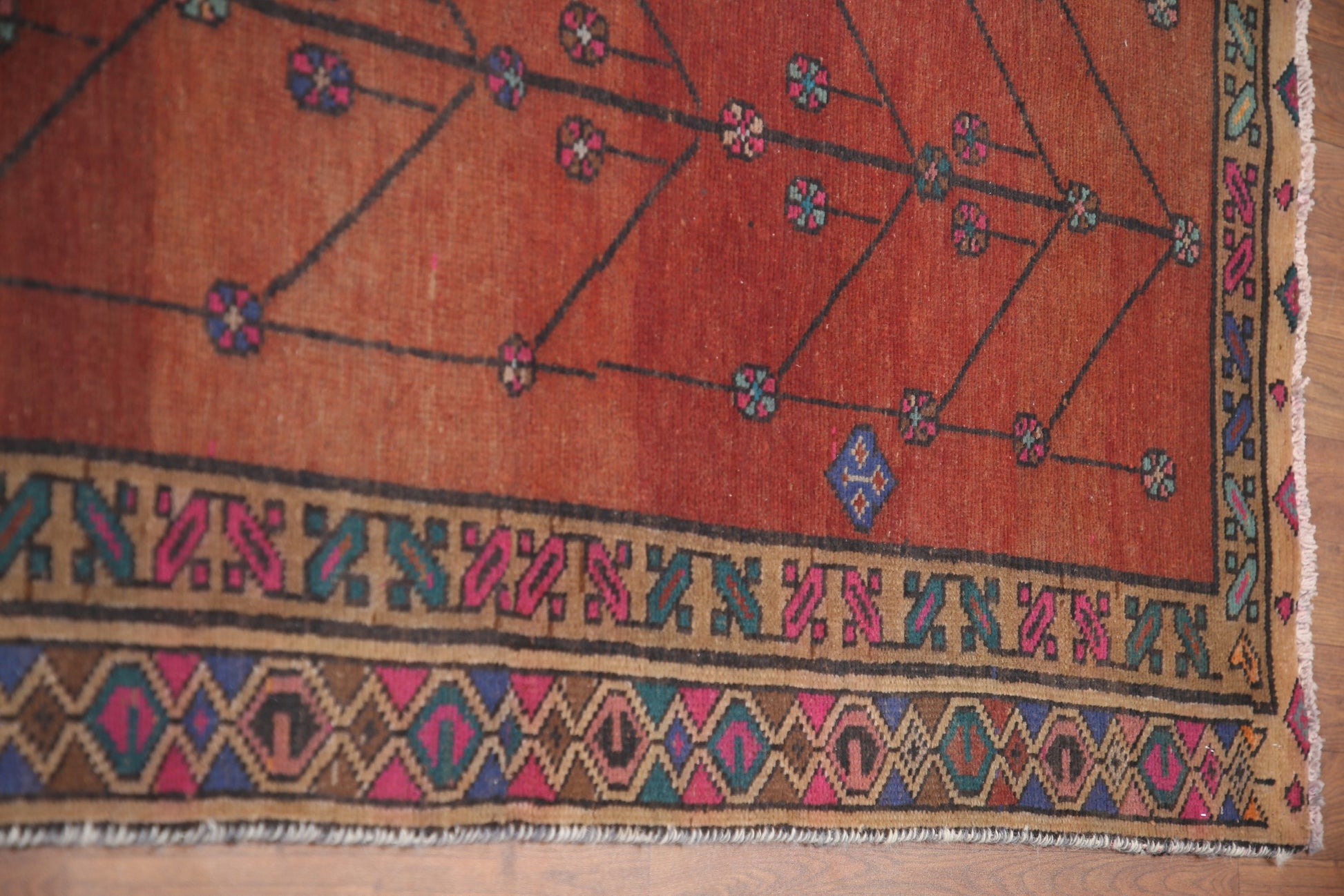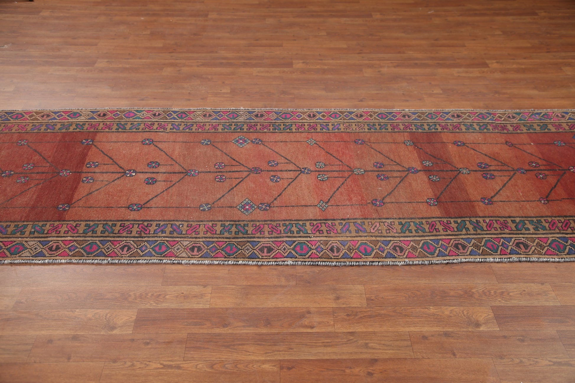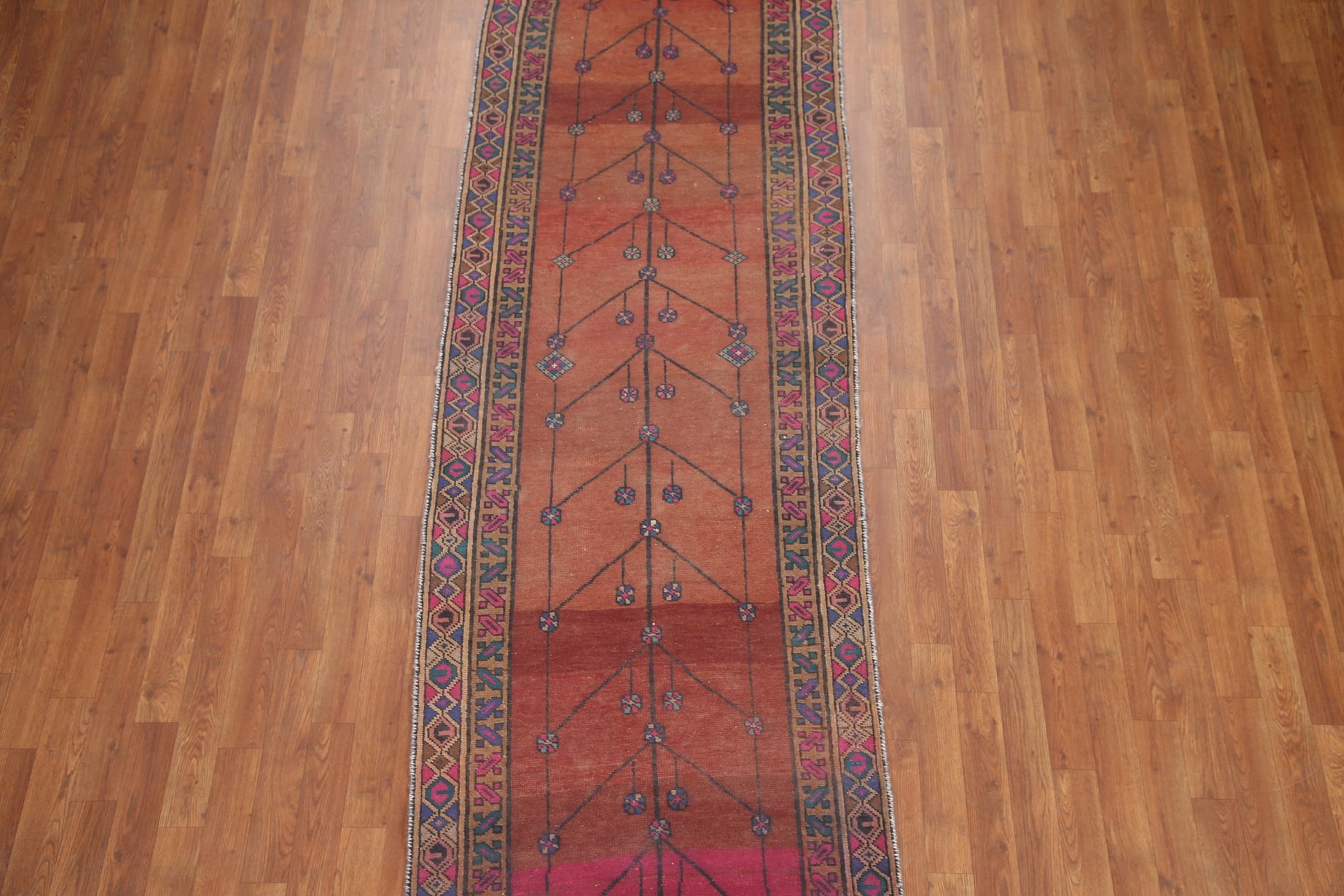 A Beautiful Genuine Persia ( Persia ) Sirjan rug is Hand Knotted by skillful weavers in Persia ( Persia ) with 100% Wool Material. This rug is in Very Good (Evenly Low Pile-Abrash) condition. dimensions are 11' 3'' X 3' 0'' in foot and 343 X 91 in centimeter. the primary color is Oranges & Rust.
