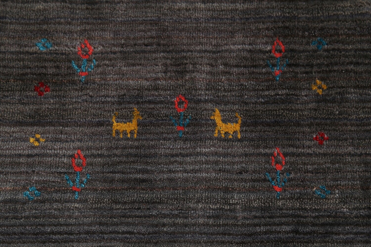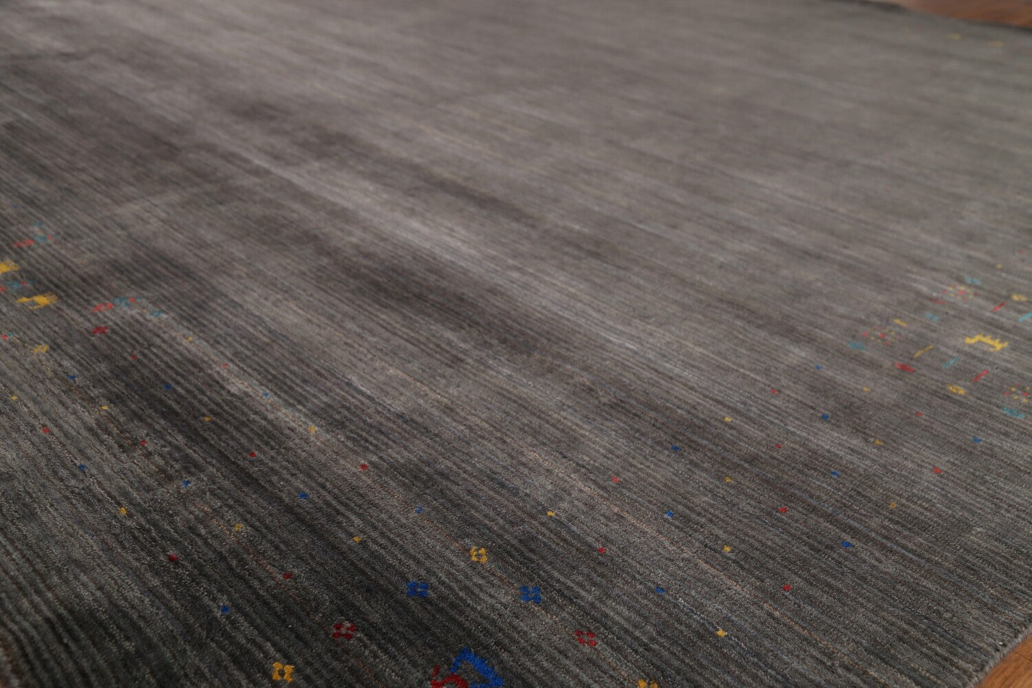 A Beautiful Genuine India Gabbeh rug is Hand Knotted by skillful weavers in India with 100% Wool Material. This rug is in New, First Quality condition. dimensions are 9' 7'' X 9' 10'' in foot and 292 X 300 in centimeter. the primary color is Greys & Charcoal.