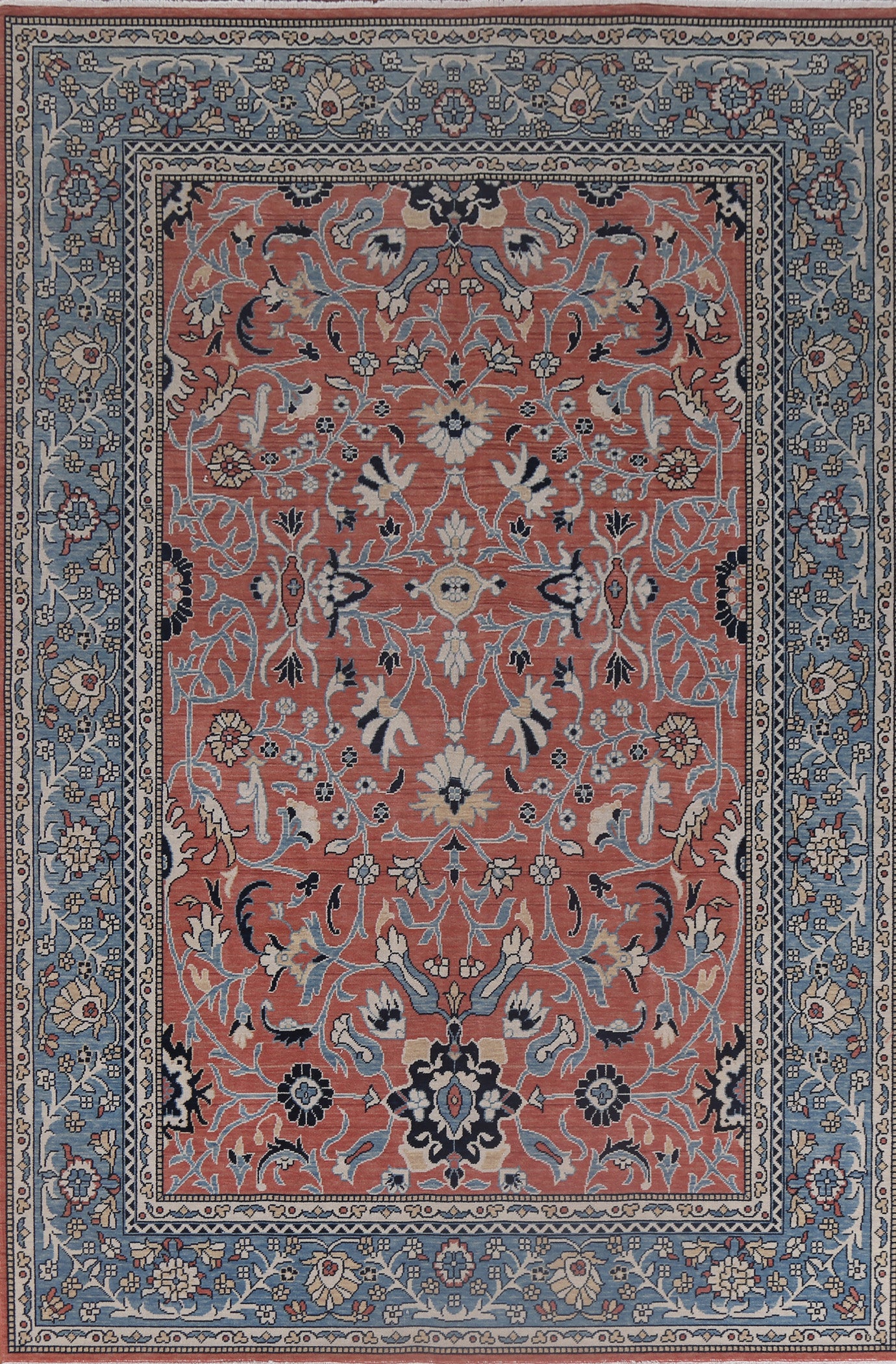 A Beautiful Genuine Turkey Sultanabad (Ziegler) rug is Hand Knotted by skillful weavers in Turkey with 100% Wool Material. This rug is in New, First Quality condition. dimensions are 9' 9'' X 7' 0'' in foot and 297 X 213 in centimeter. the primary color is Red.