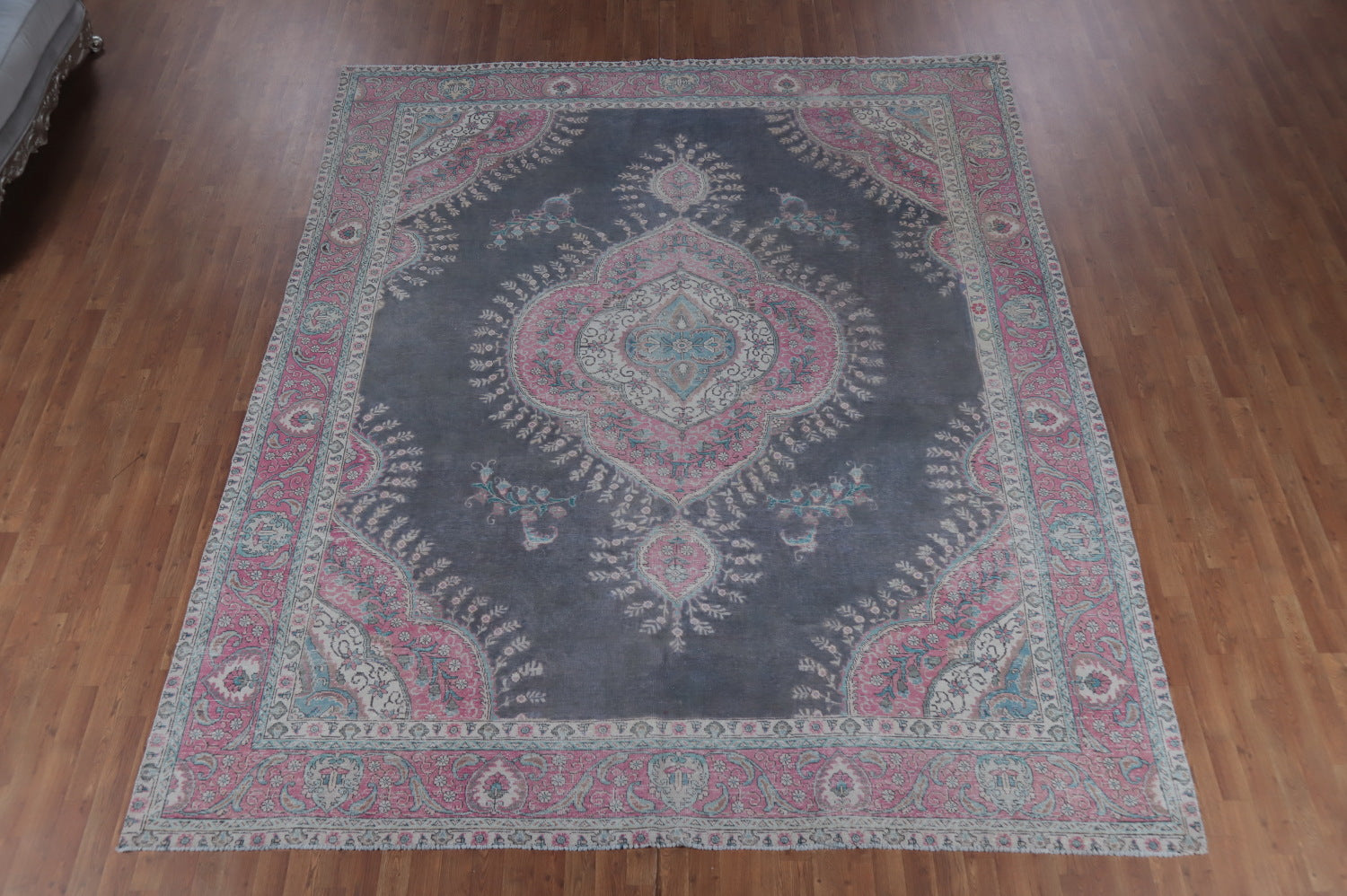 A Beautiful Genuine Persia ( Persia ) Tabriz rug is Hand Knotted by skillful weavers in Persia ( Persia ) with 100% Wool Material. This rug is in Very Good (Evenly Low Pile) condition. dimensions are 11' 8'' X 9' 9'' in foot and 356 X 297 in centimeter. the primary color is Greys & Charcoal.