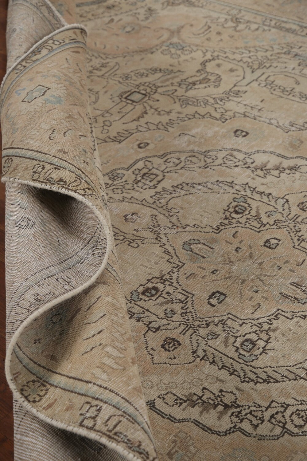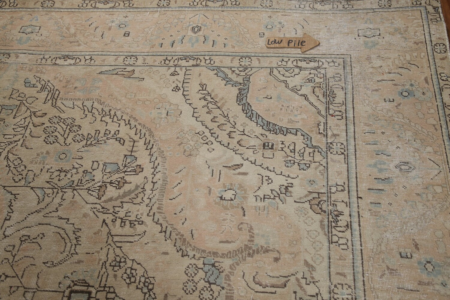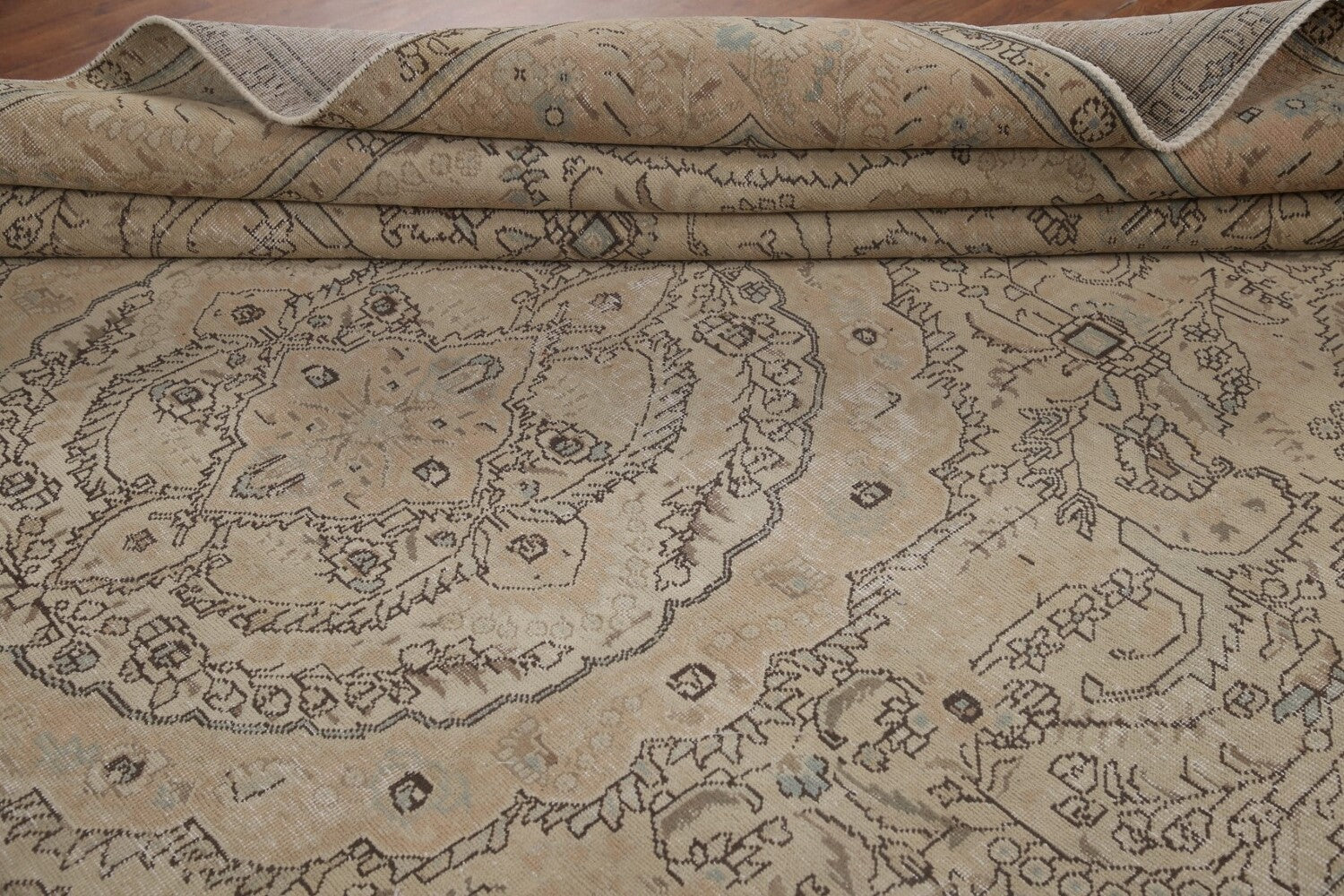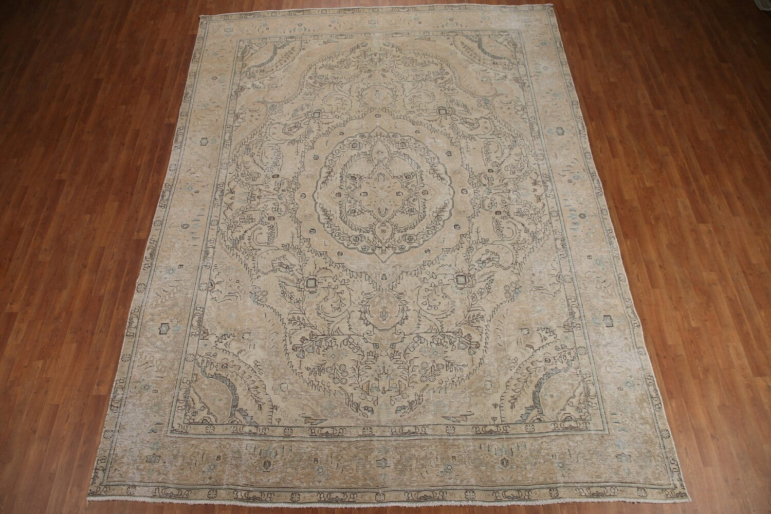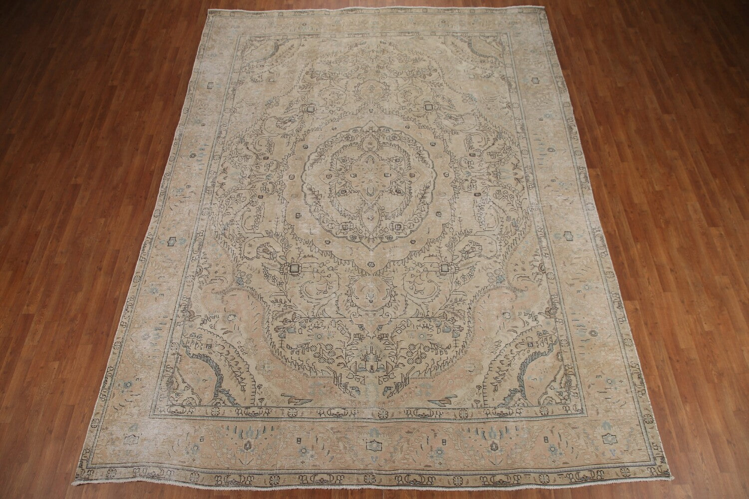 A Beautiful Genuine Persia ( Persia ) Tabriz rug is Hand Knotted by skillful weavers in Persia ( Persia ) with 100% Wool Material. This rug is in Very Good ( Low Pile ) condition. dimensions are 12' 7'' X 9' 7'' in foot and 384 X 292 in centimeter. the primary color is Beige & Ivories.