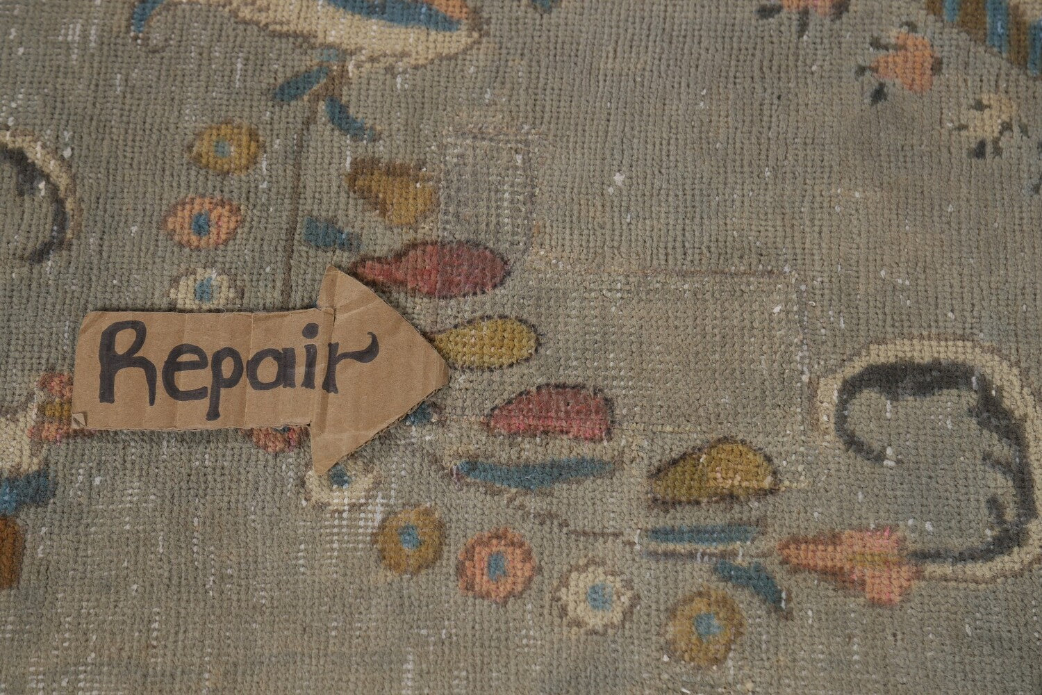 A Beautiful Genuine Persia ( Persia ) Tabriz rug is Hand Knotted by skillful weavers in Persia ( Persia ) with 100% Wool Material. This rug is in Very Good ( Evenly Low Pile-Repair) condition. dimensions are 12' 9'' X 9' 7'' in foot and 389 X 292 in centimeter. the primary color is Greys & Charcoal.
