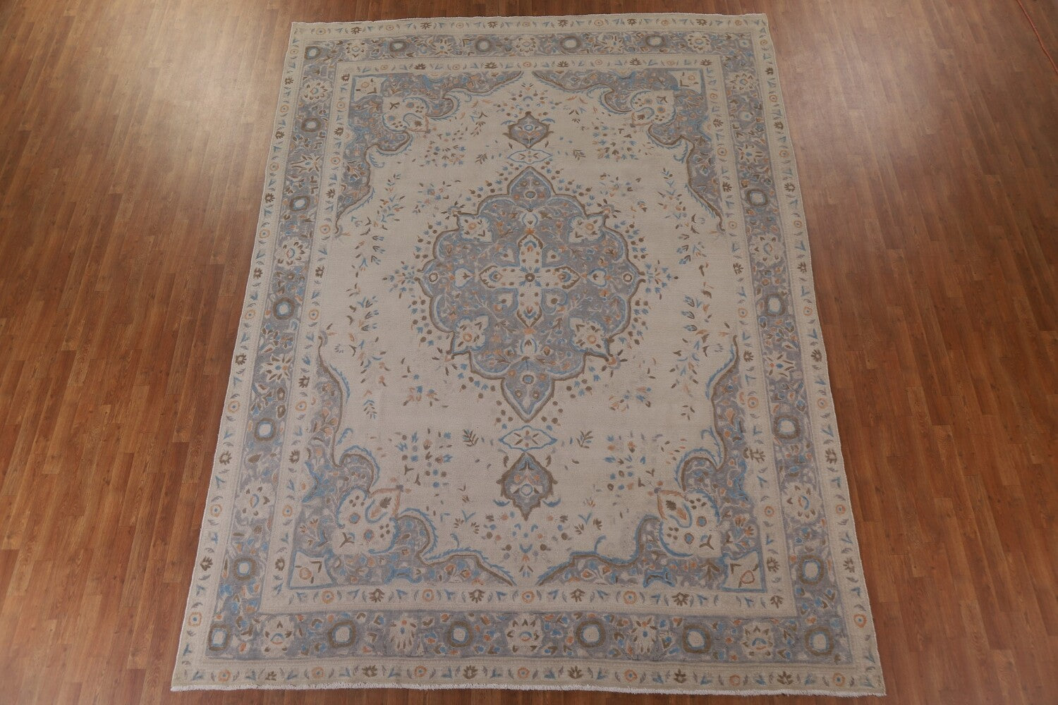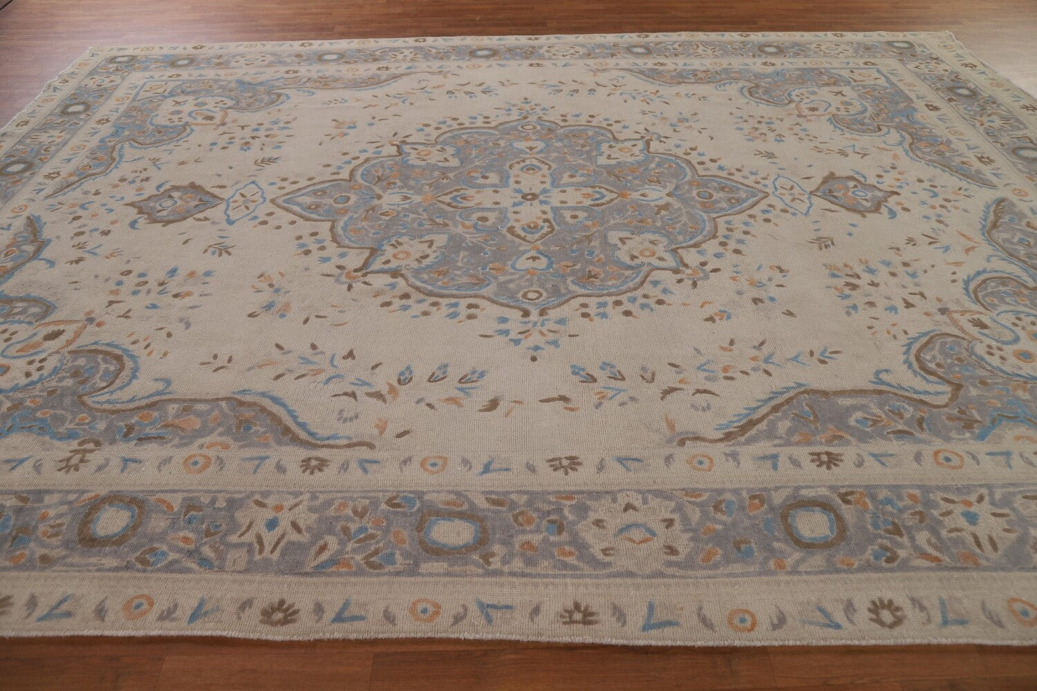 A Beautiful Genuine Persia ( Persia ) Tabriz rug is Hand Knotted by skillful weavers in Persia ( Persia ) with 100% Wool Material. This rug is in Very Good (Evenly Low Pile) condition. dimensions are 12' 11'' X 9' 6'' in foot and 394 X 290 in centimeter. the primary color is Beige & Ivories.