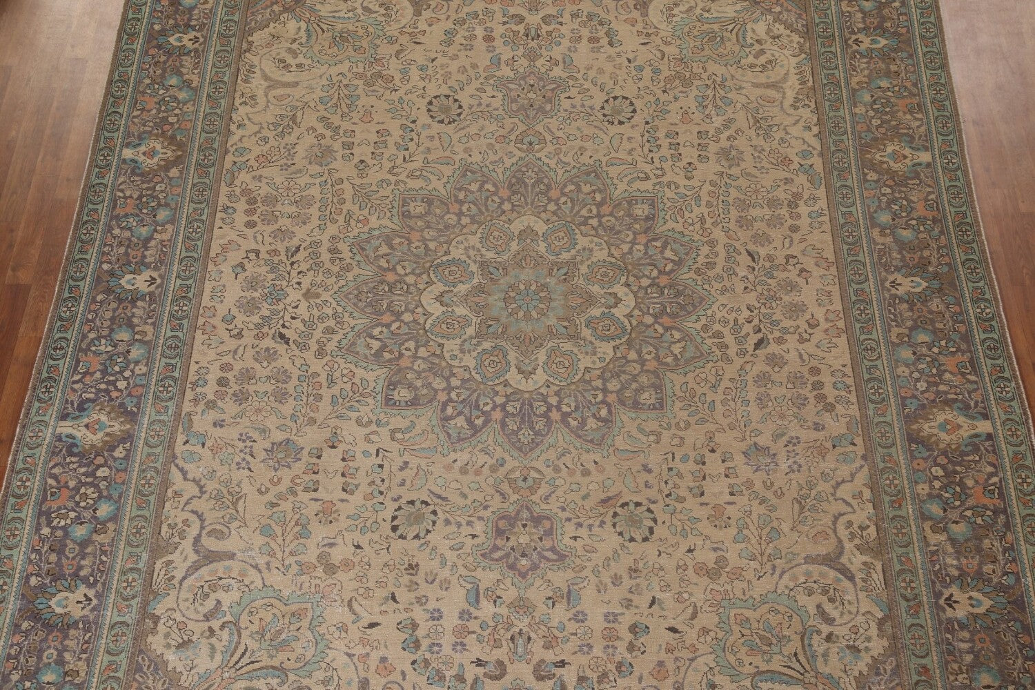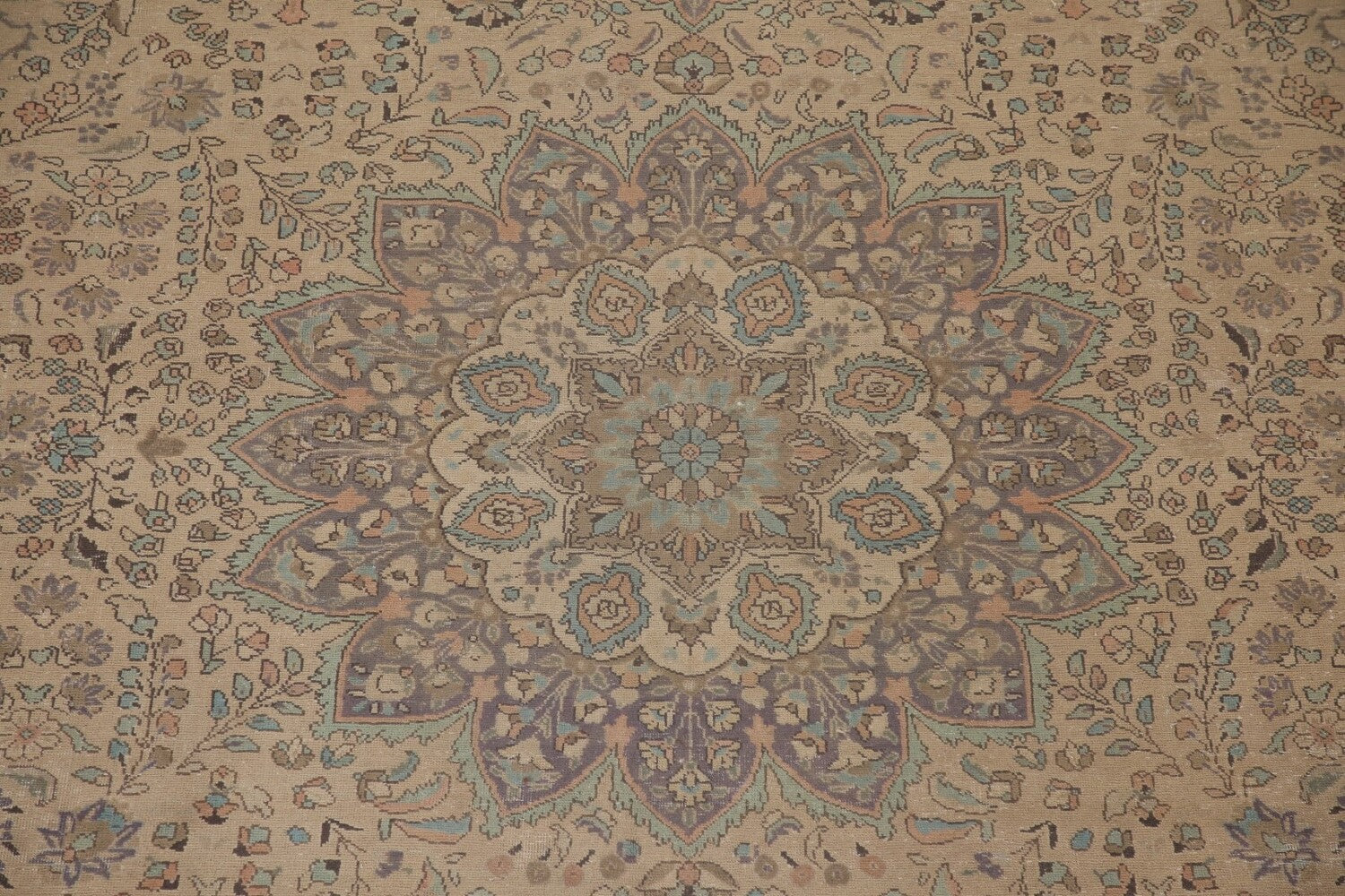 A Beautiful Genuine Persia ( Persia ) Tabriz rug is Hand Knotted by skillful weavers in Persia ( Persia ) with 100% Wool Material. This rug is in Very Good (Evenly Low Pile) condition. dimensions are 12' 8'' X 9' 10'' in foot and 386 X 300 in centimeter. the primary color is Peach.