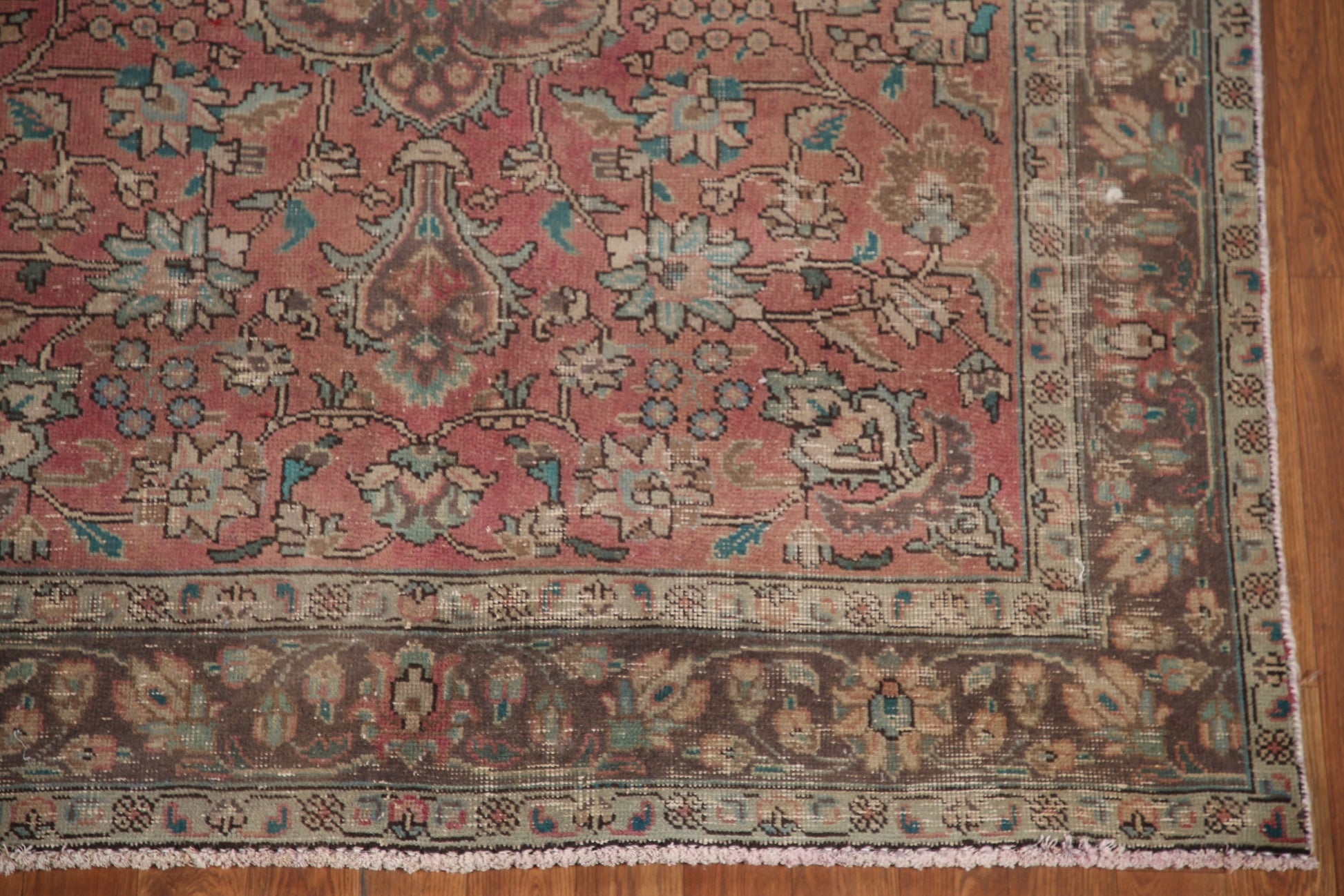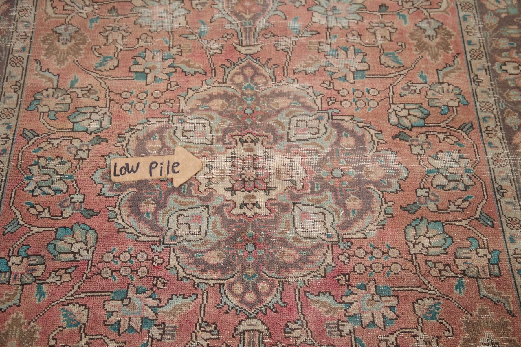 A Beautiful Genuine Persia ( Persia ) Tabriz rug is Hand Knotted by skillful weavers in Persia ( Persia ) with 100% Wool Material. This rug is in Very Good ( Low Pile ) condition. dimensions are 6' 2'' X 4' 6'' in foot and 188 X 137 in centimeter. the primary color is Pink.